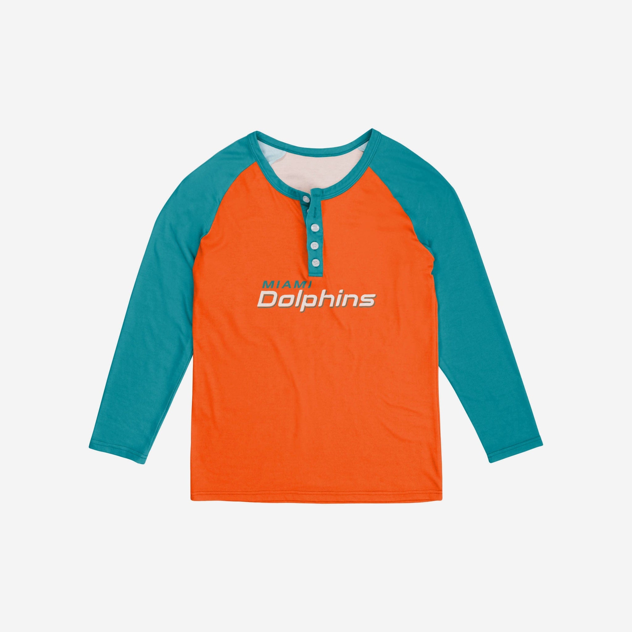 Spread the word(mark)! Dress to impress and let your team spirit speak for itself by rocking this Miami Dolphins Women's Big Wordmark Long Sleeve Henley.