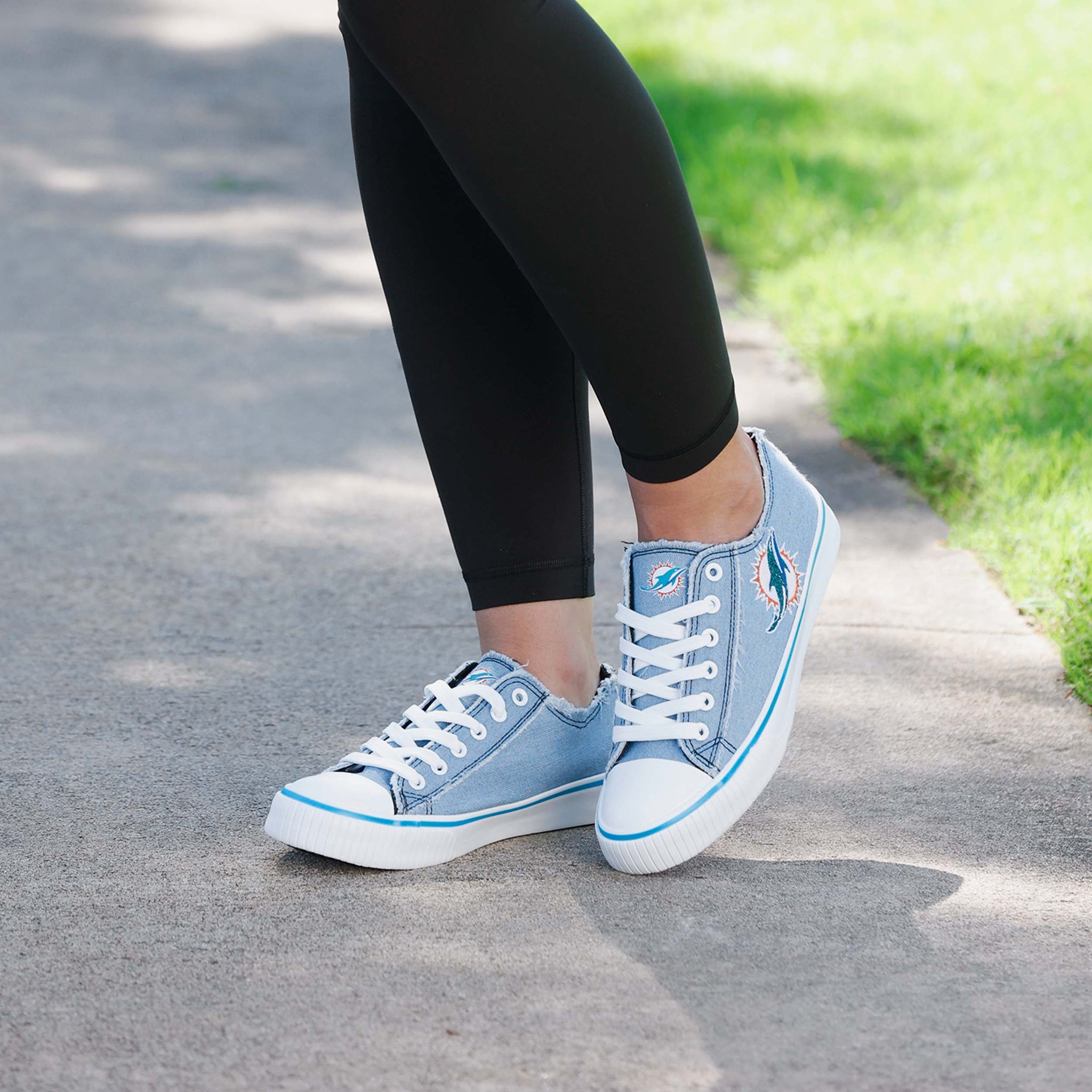Nobody can dull your sparkle as a fan! Get ready to make all your game days denim days too as you shine on with a pair of Miami Dolphins Women's Denim Low Top Canvas Shoes.