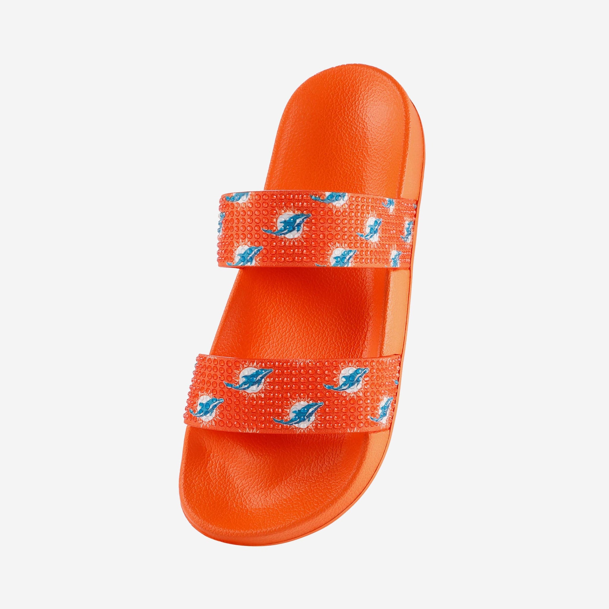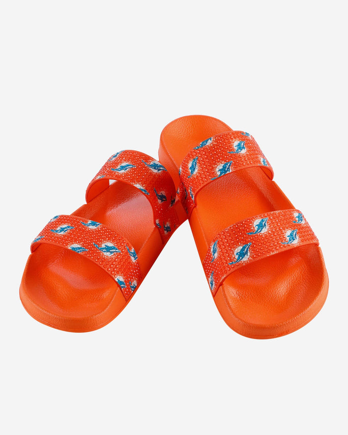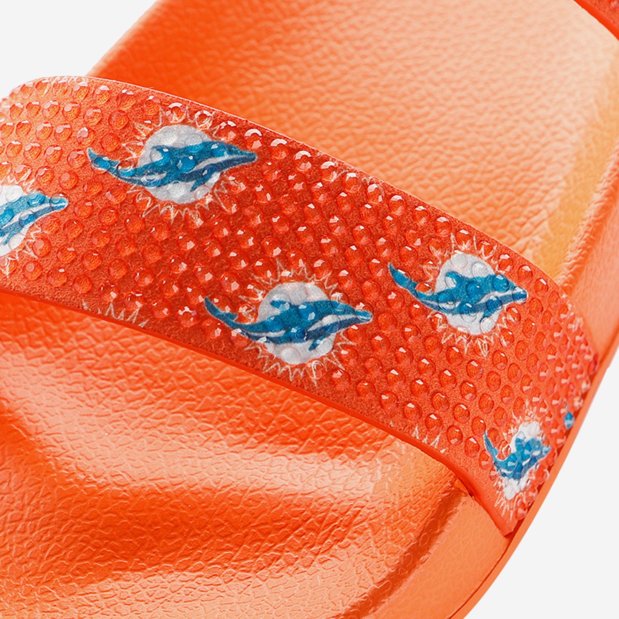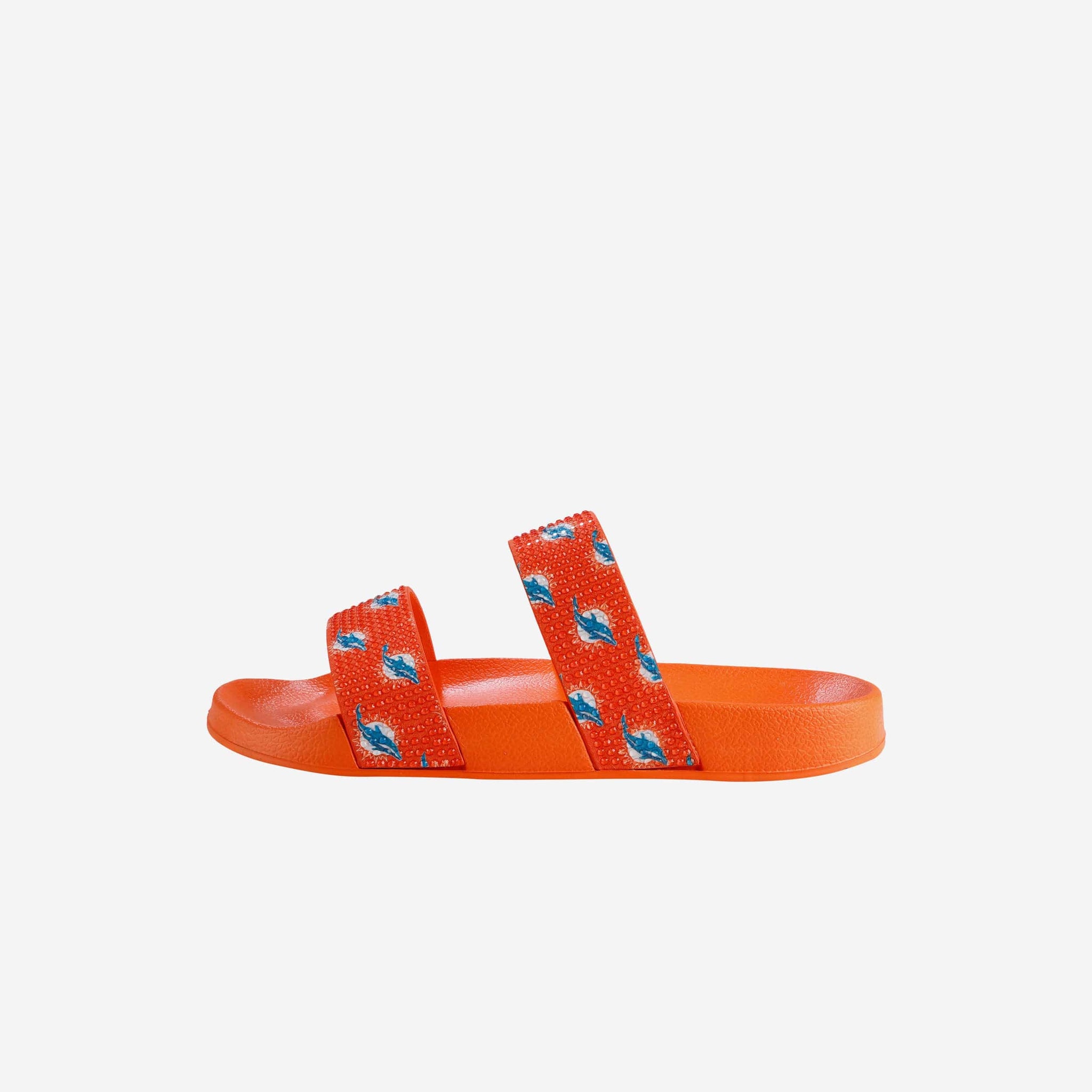 Be a trend stepper with some sandals that sparkle. Step up your fan fit with these Miami Dolphins Women's Double Strap Rhinestone Sandals.
