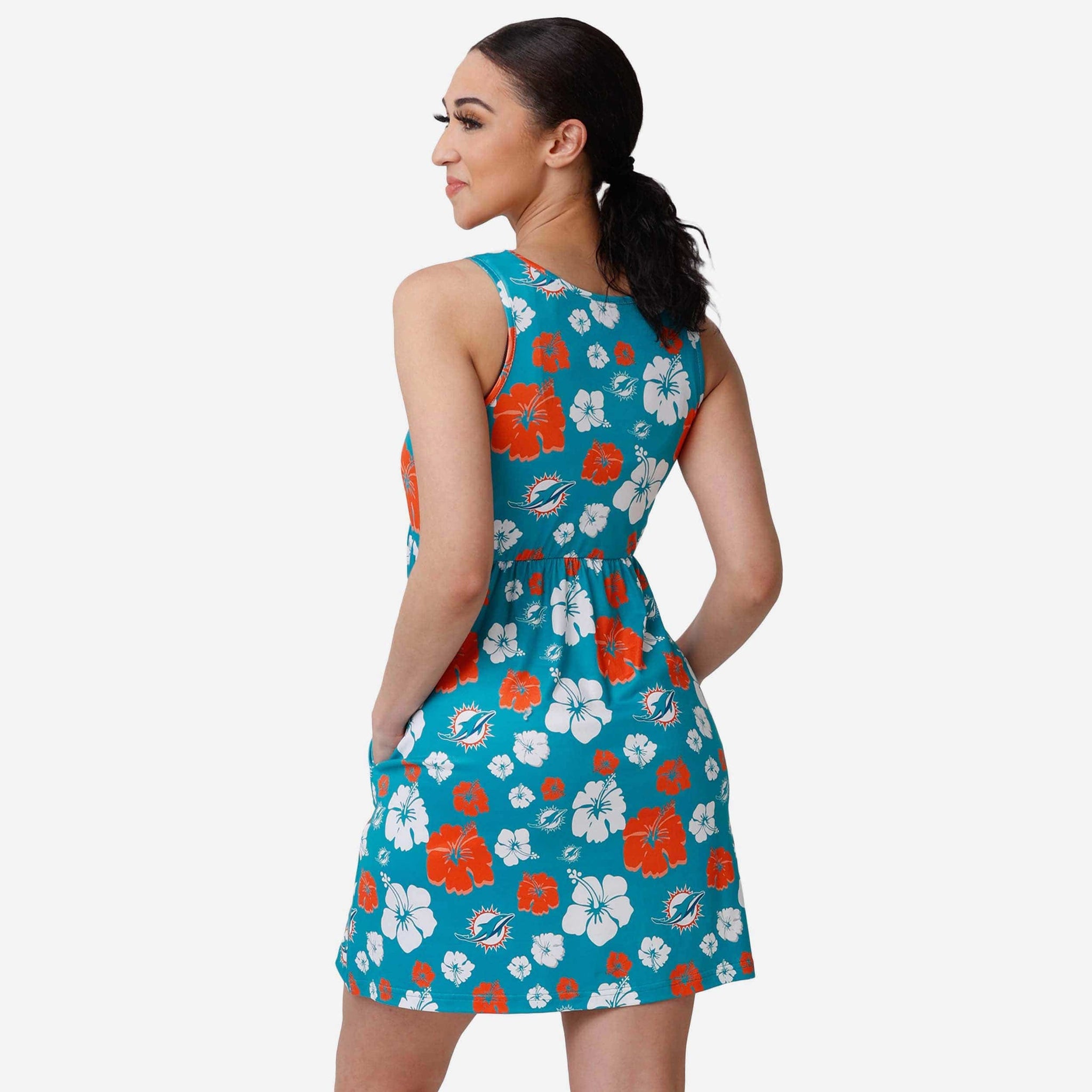The season of fan is in bloom. Make sure your vibrant, unmatched spirit is boldly on display by adding this Miami Dolphins Fan Favorite Floral Sun Dress to your roster. Hope you're ready to turn some heads.