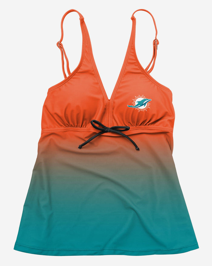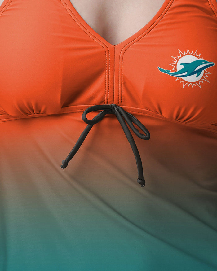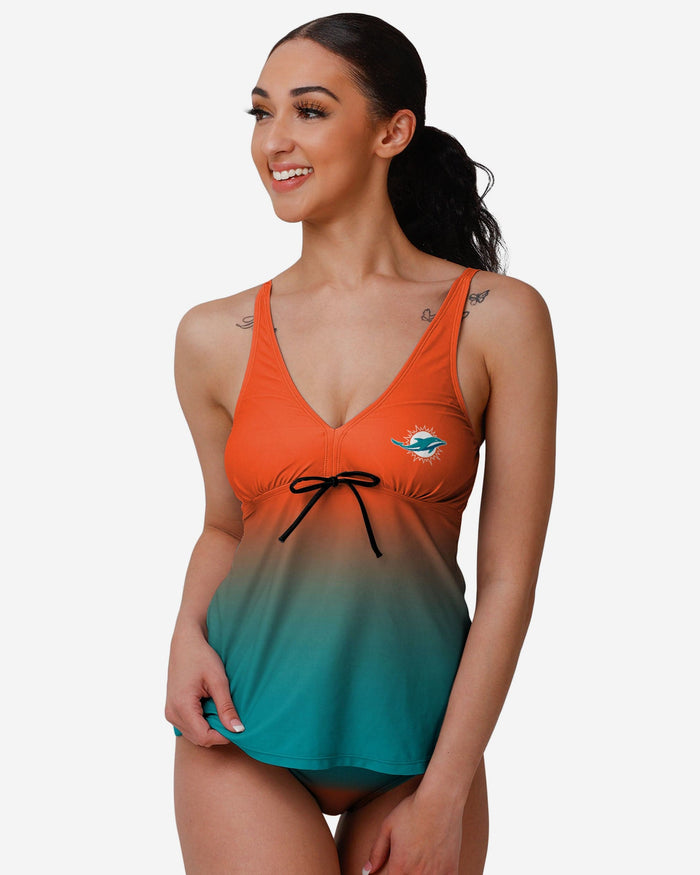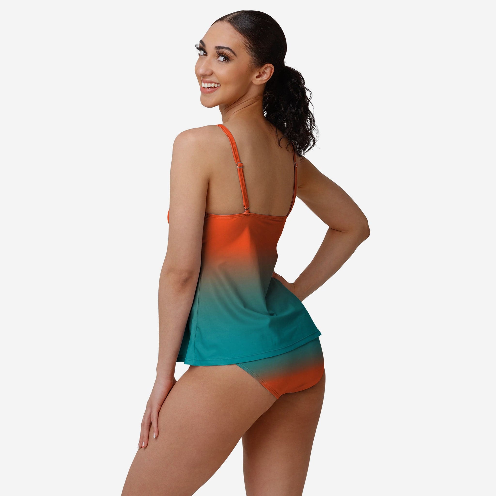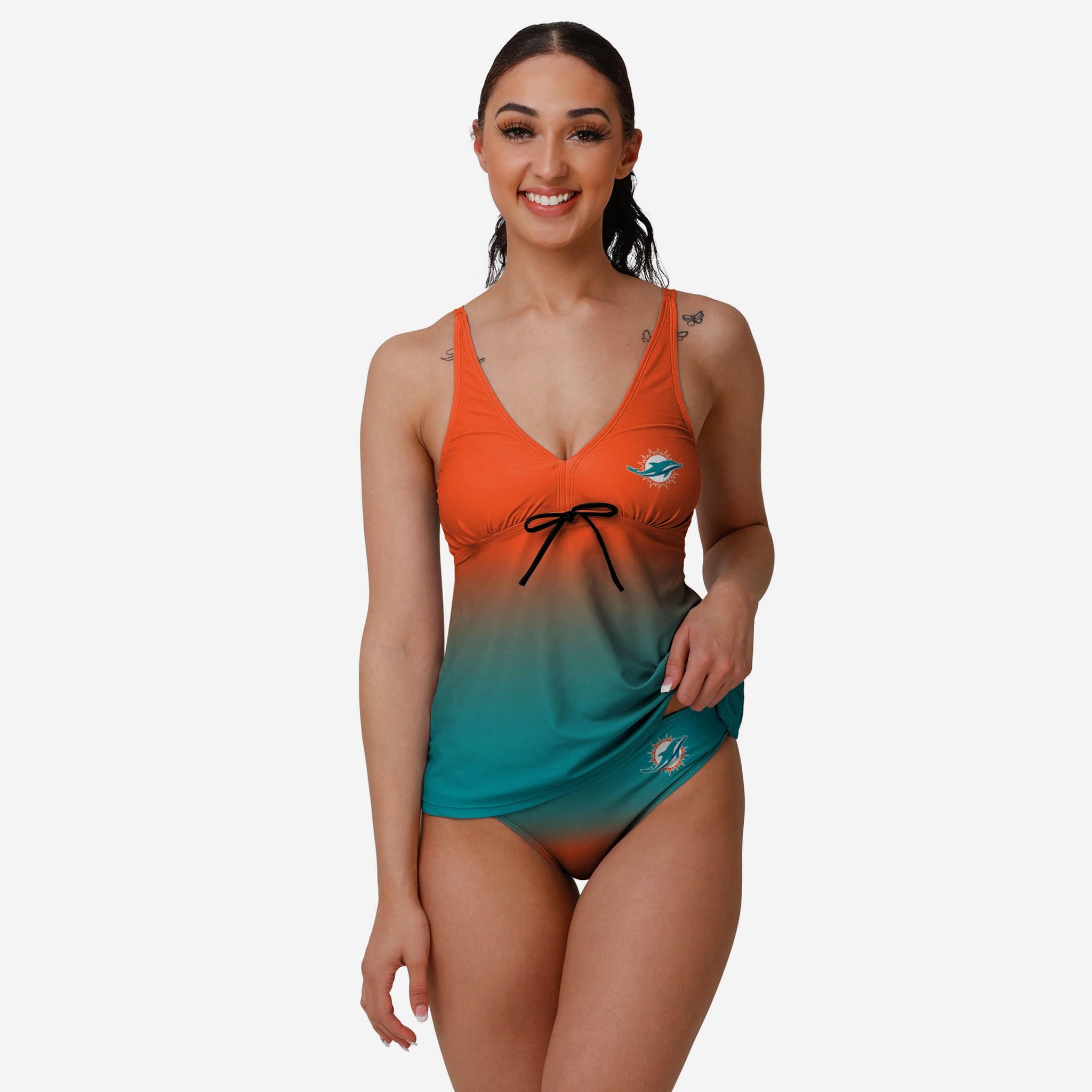 Along with sunscreen, don't forget to apply some team pride this summer by enjoying some fun in the sun with this Miami Dolphins Women's Gametime Gradient Tankini!