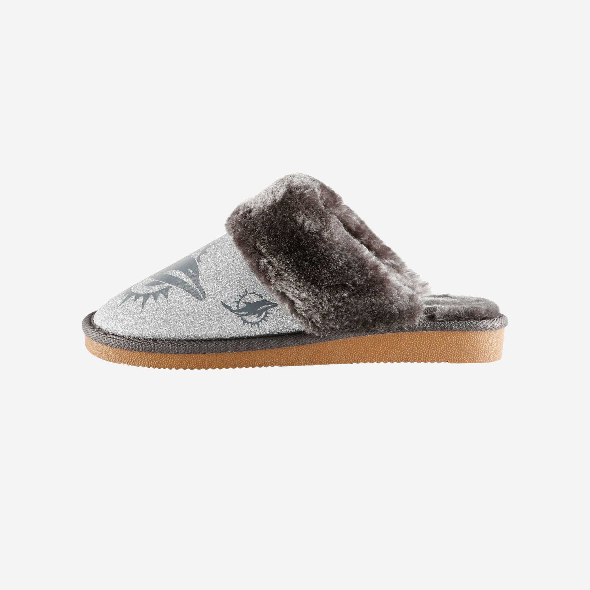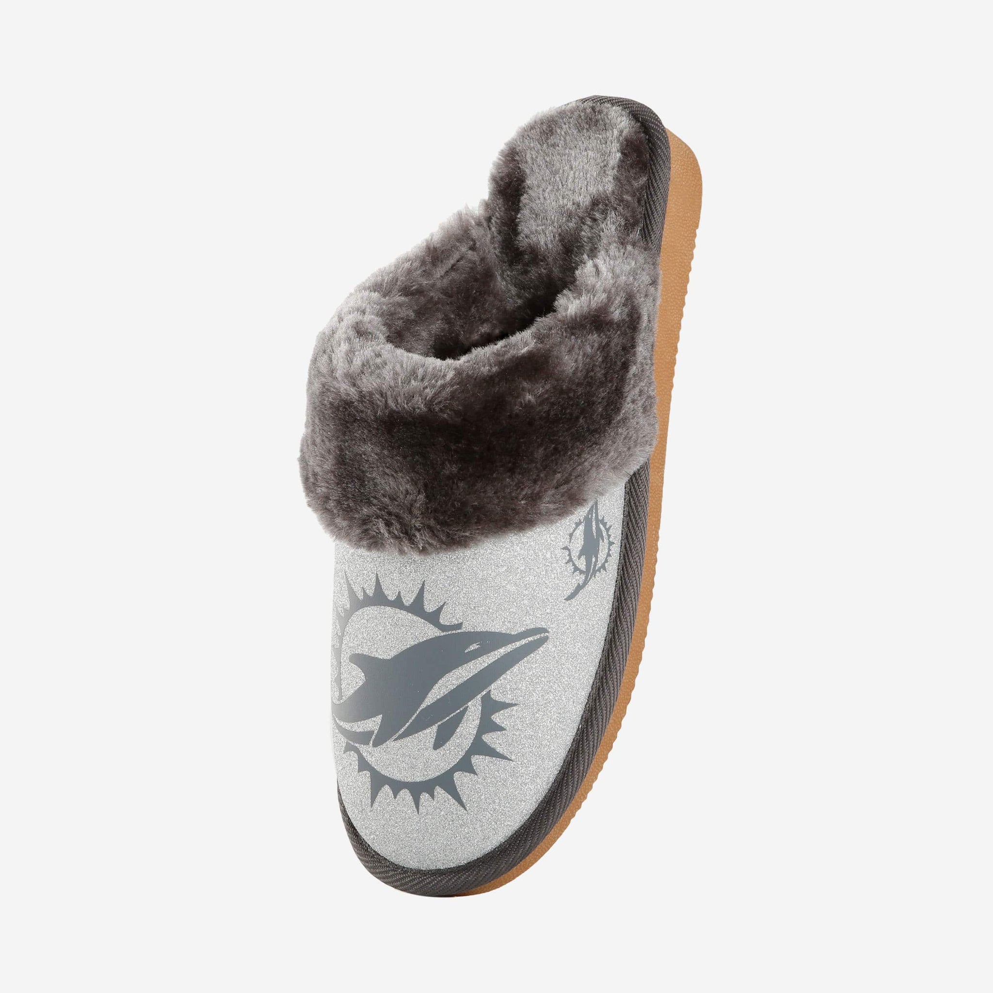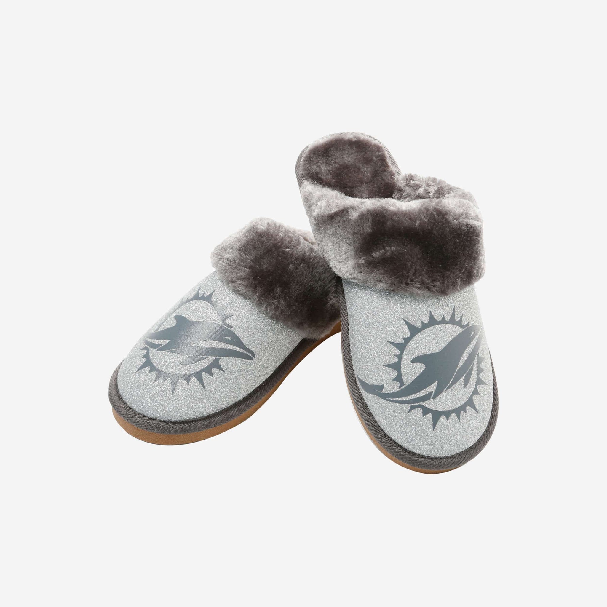 Miami Dolphins Womens Glitter Open Back Fur Moccasin Slipper