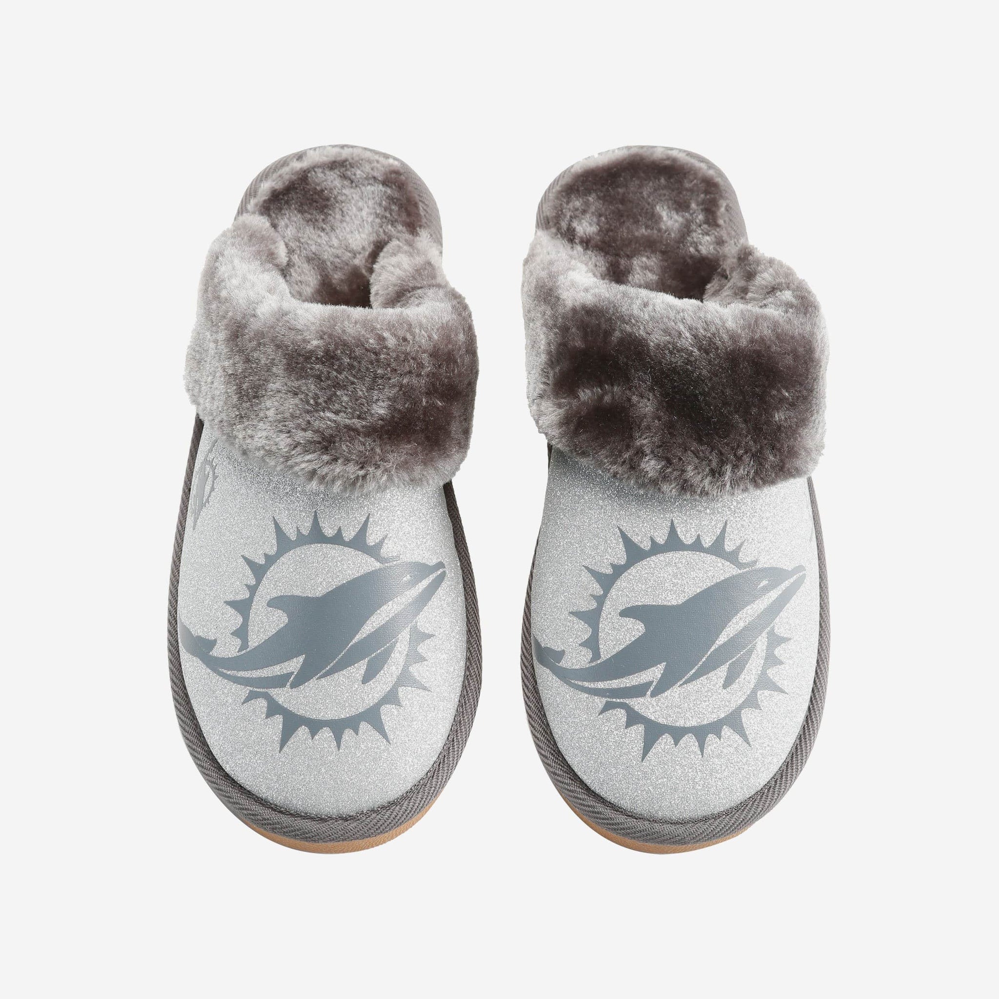 Miami Dolphins Womens Glitter Open Back Fur Moccasin Slipper FOCO S - FOCO.com