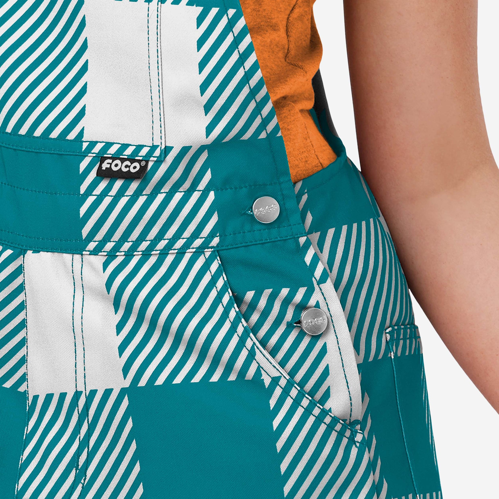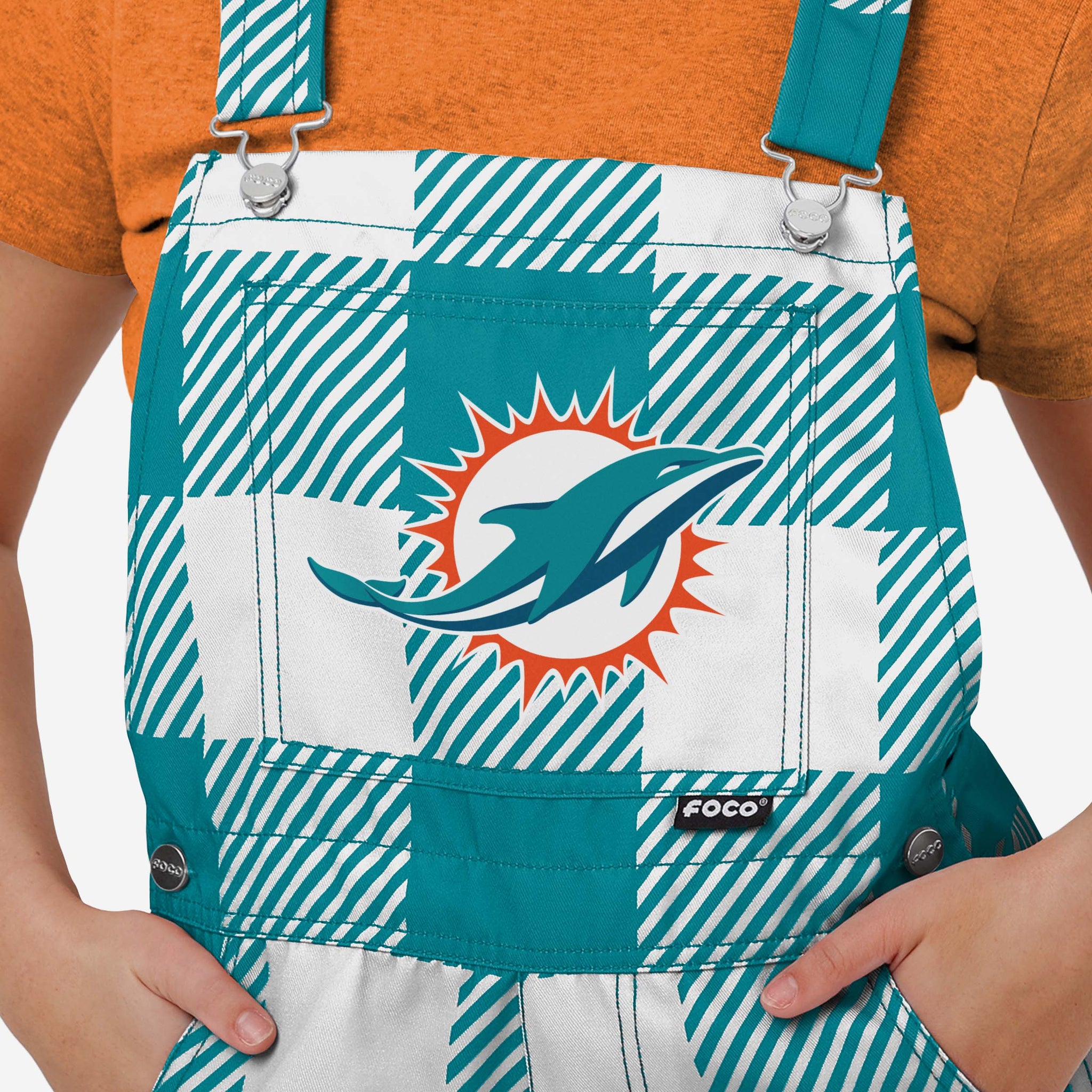 - All-over team-colored design: These shortalls are covered in the official Miami Dolphins colors, so you can show your team spirit with pride.