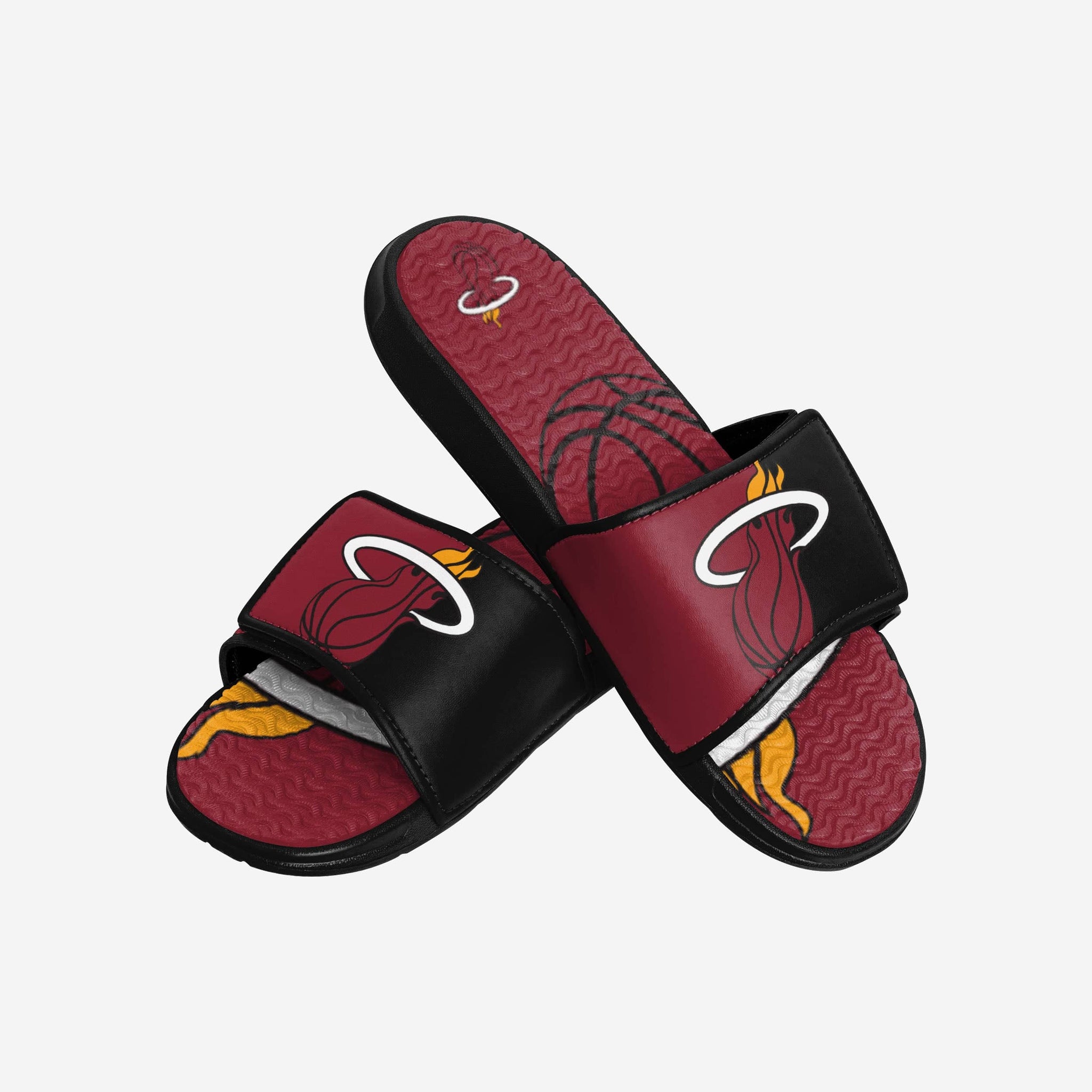 Ready to rep the team with every step? Of course you are. That's why you're checking out these Miami Heat Colorblock Big Logo Gel Slides. Keep cool while you show off some fire fan fashion.