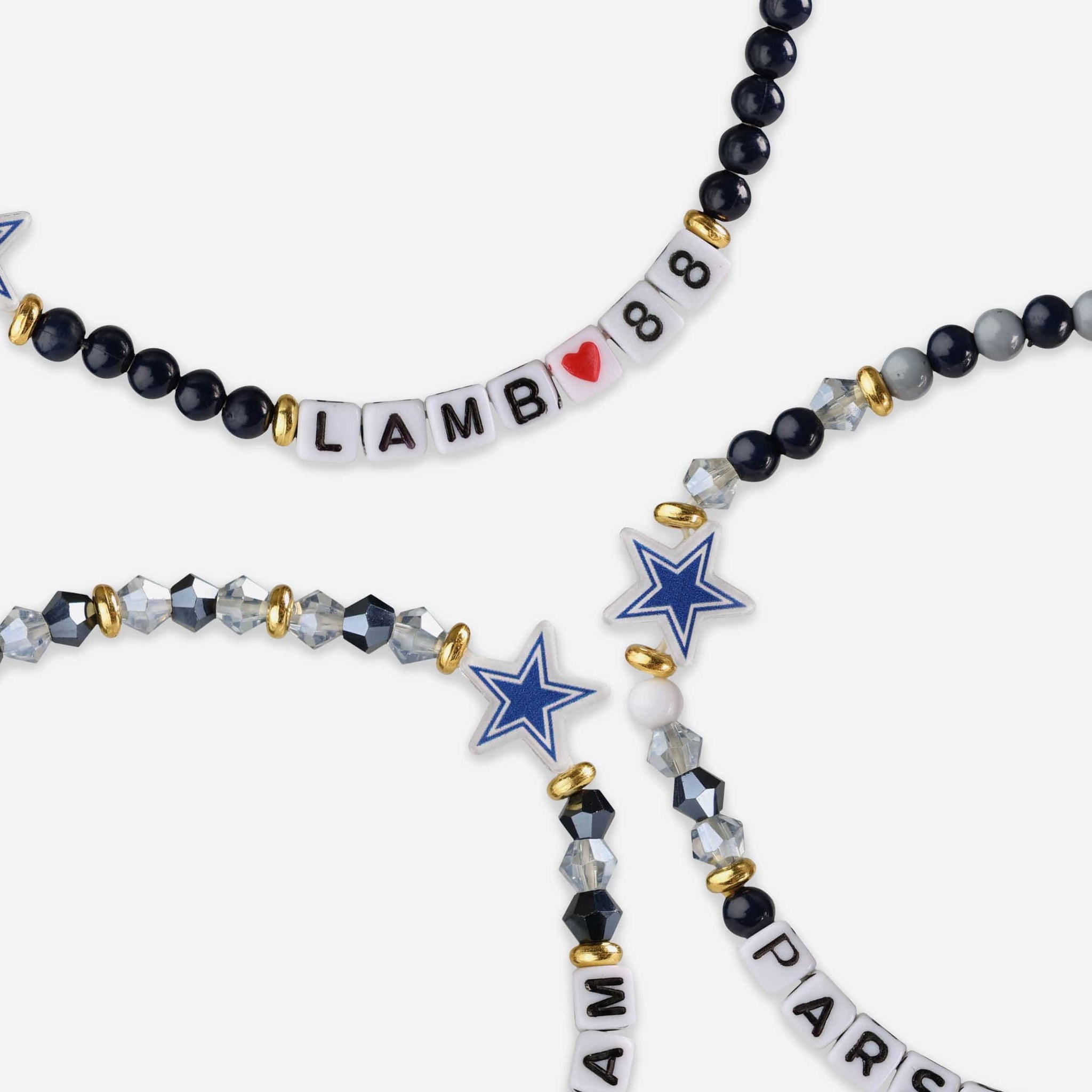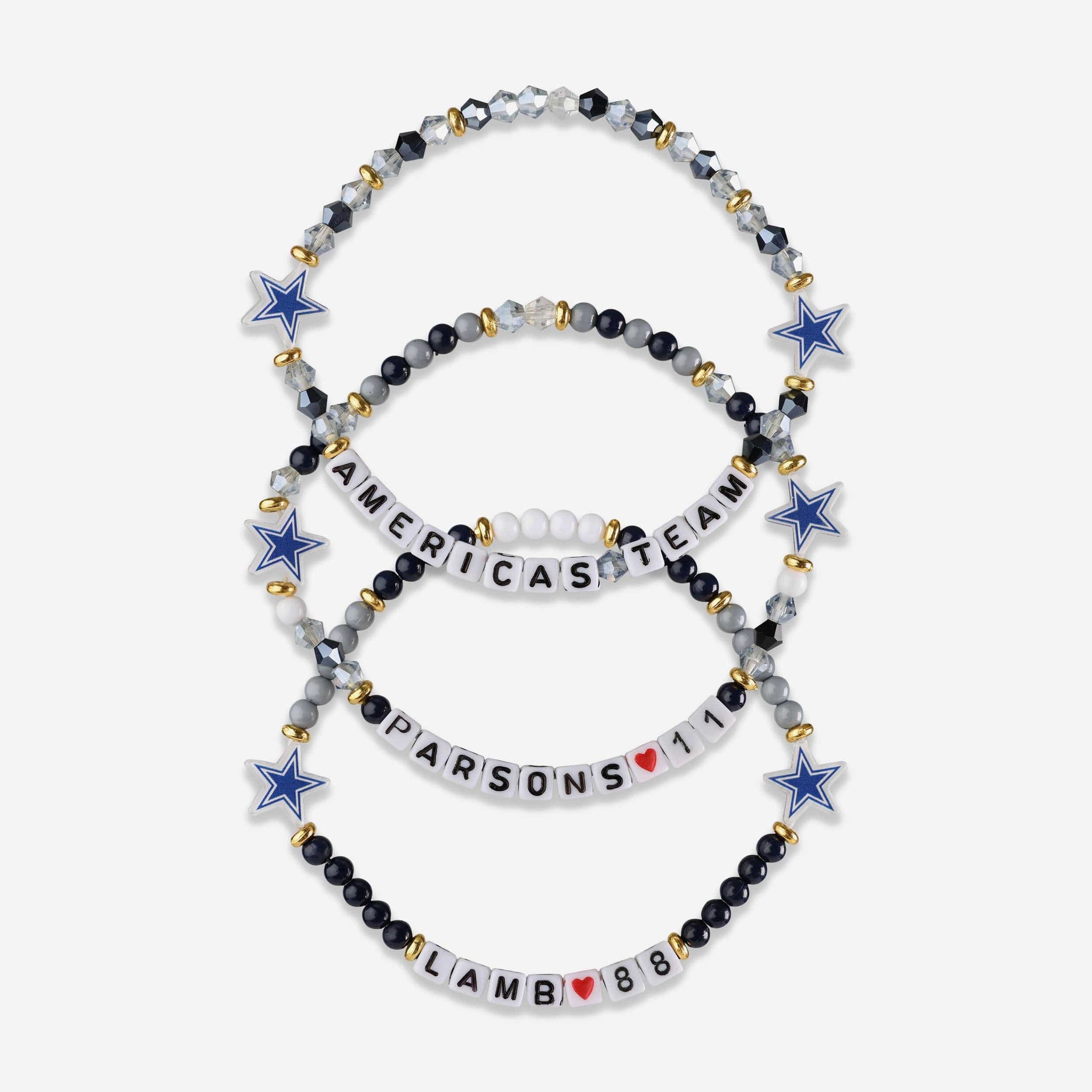 Accessorize and maximize your fandom while impressing your fellow fans with this CeeDee Lamb & Micah Parsons Dallas Cowboys 3 Pack Player Friendship Bracelet. These matching friendship bracelets have an all-over team-colored design and team logo displays, which makes them the perfect way to show your support for the Dallas Cowboys and get in on the latest accessory craze.