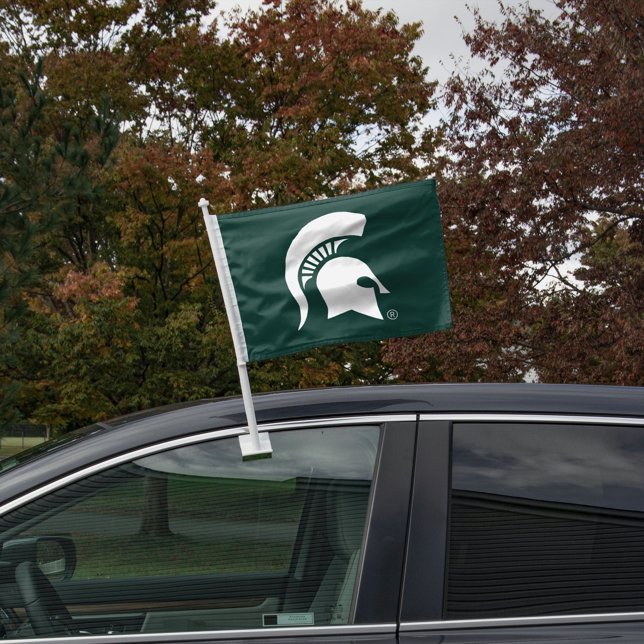 Ready, set, decorate! Start your engines and get ready to hit the road with your legendary team spirit by displaying this Michigan State Spartans 2 Pack Solid Car Flag!