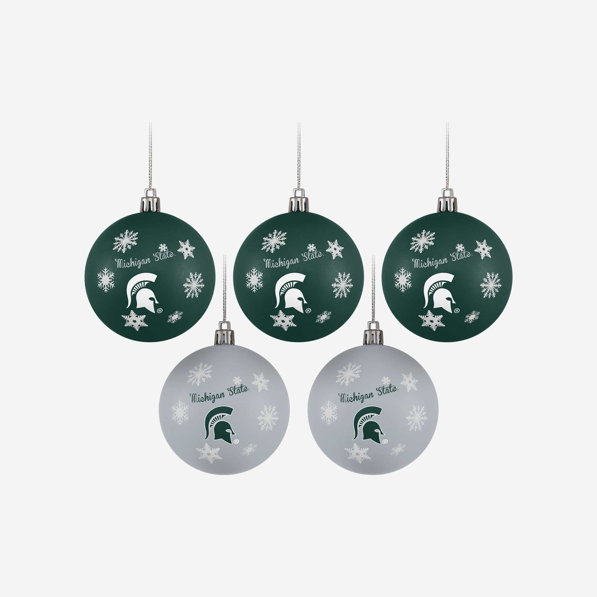 Make sure your holiday decorating is oops-proof with this Michigan State Spartans 5 Pack Shatterproof Ball Ornament Set! Decking the halls has never been so much fun.
