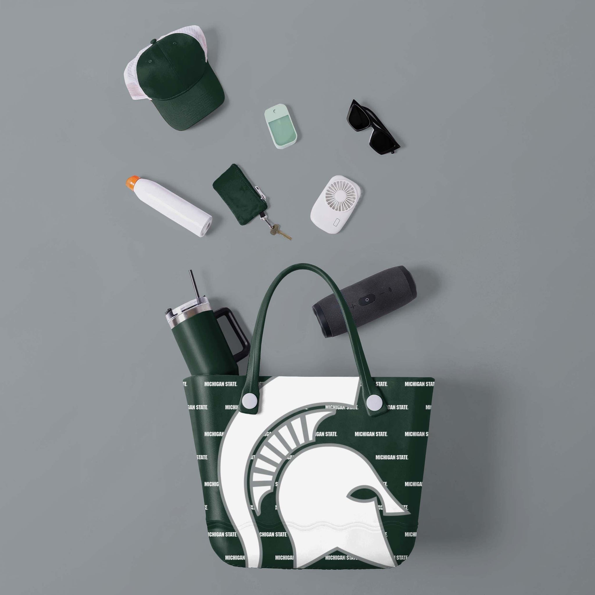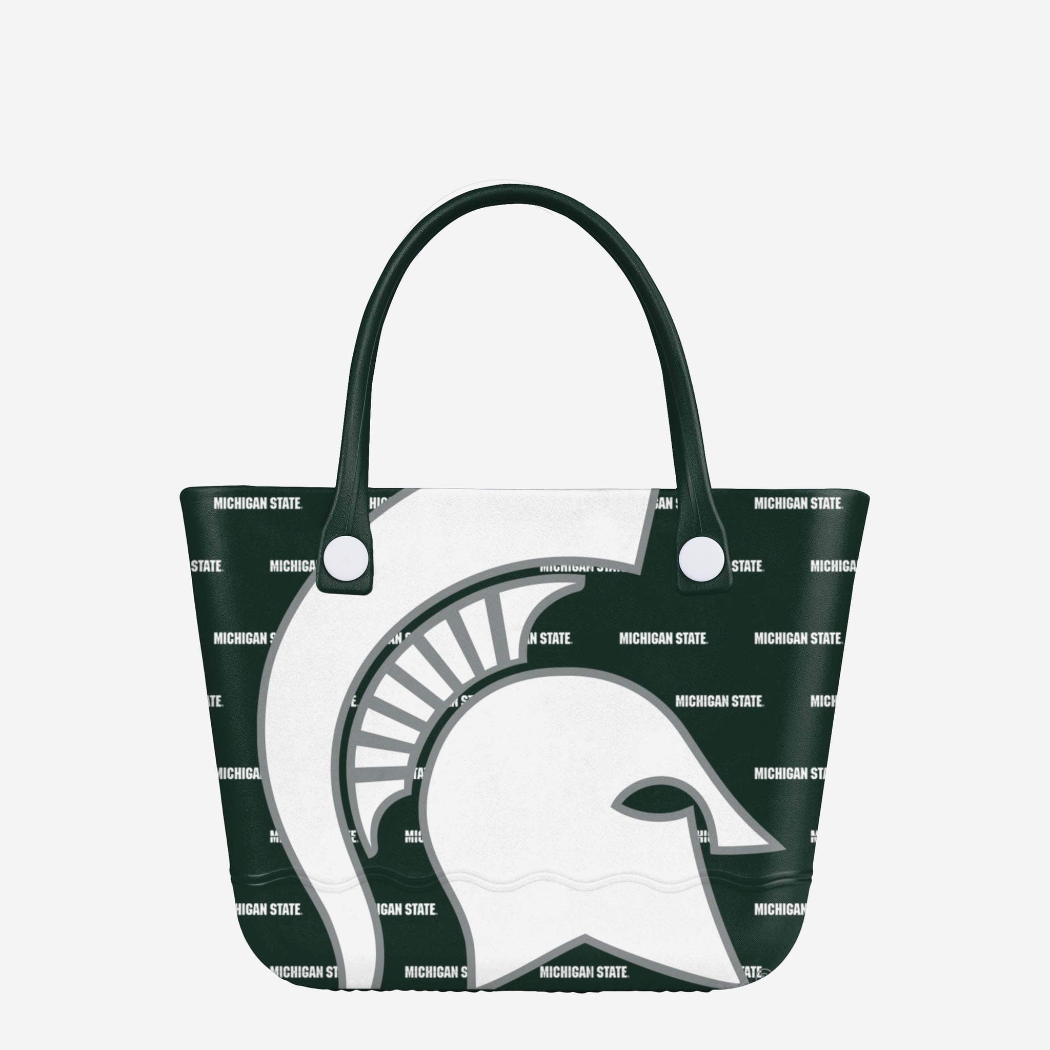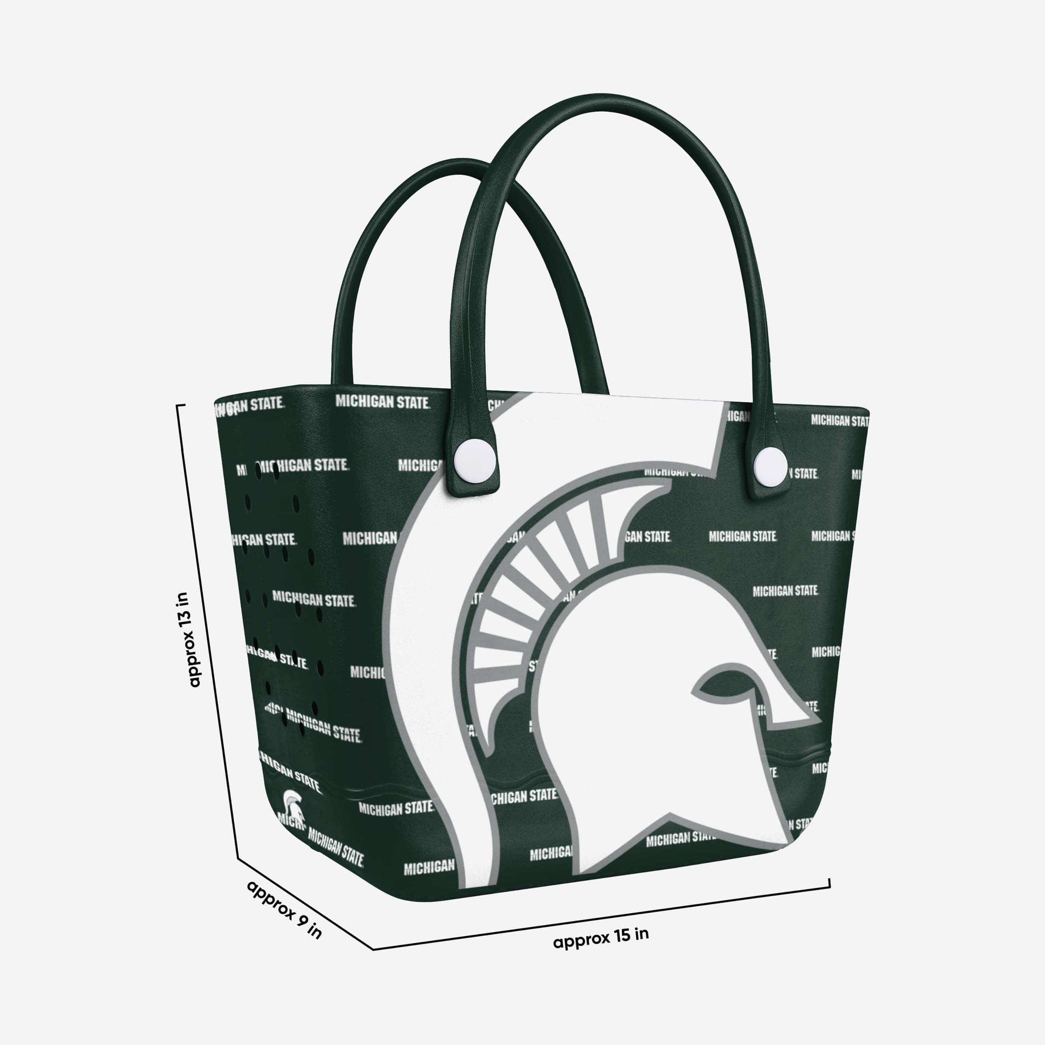 Looking for a bag as durable and dependable as your team spirit? You've found it. Whether you're running the tailgate, hitting the beach, or going on any adventure, pack up your fandom and take it on the go with this Michigan State Spartans Big Logo Mini Print Tailgate Tote Bag.