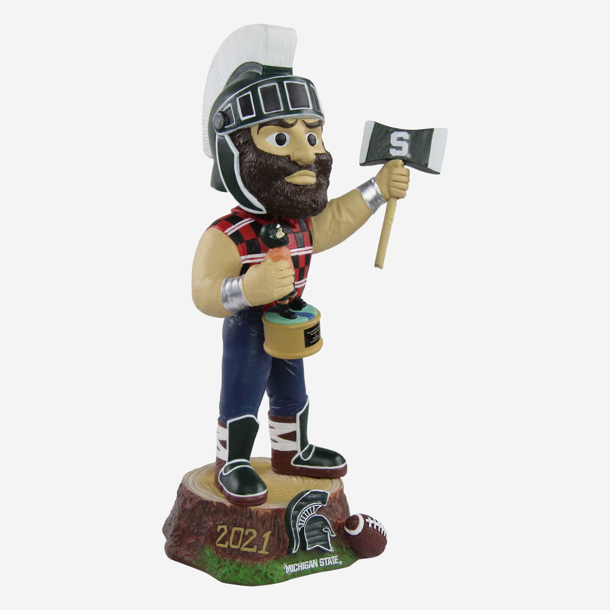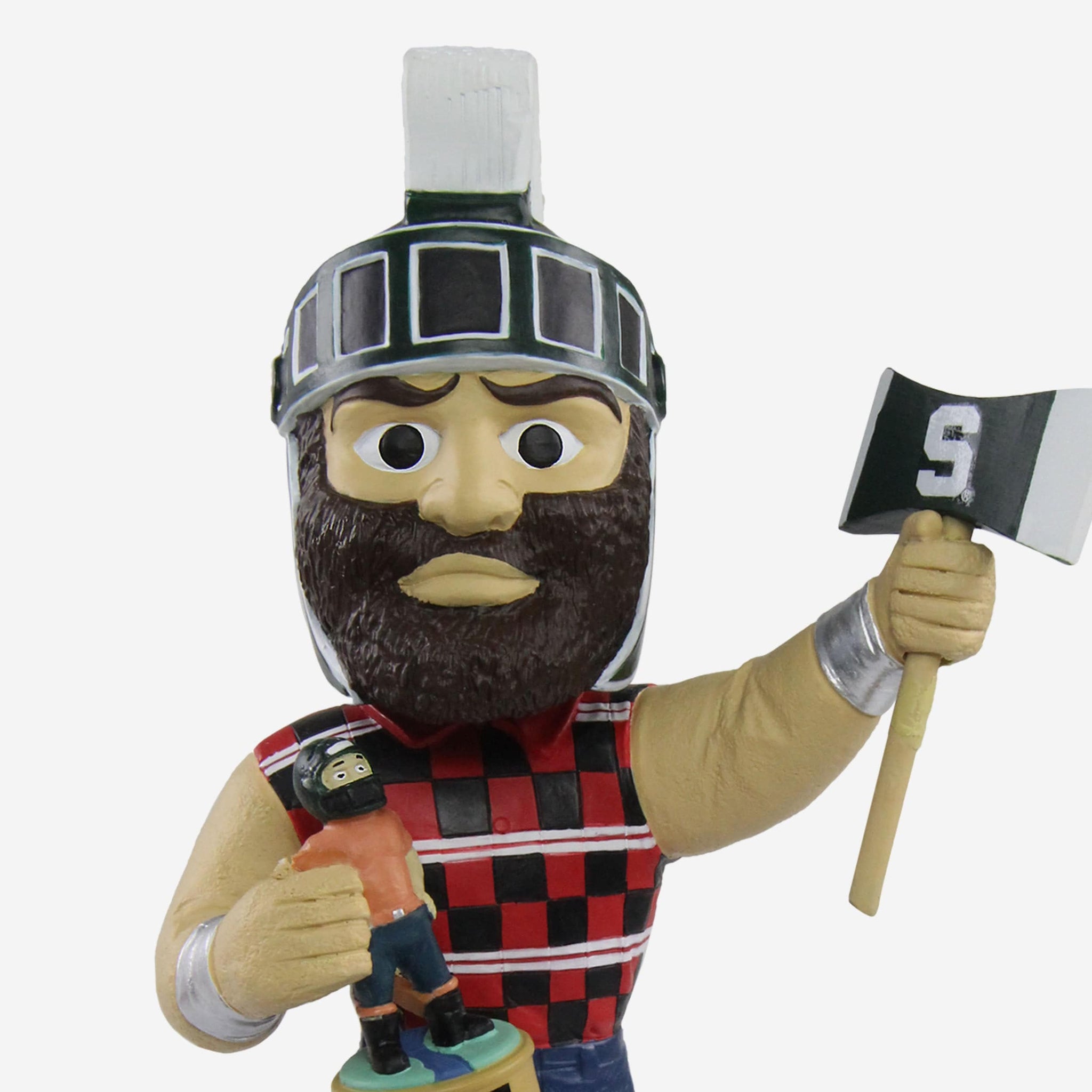 Go green! Go white! It's a Sparty party in East Lansing! Make sure you've got the best collection in the state of Michigan with this Sparty Michigan State Spartans Paul Bunyan Mascot Bobblehead!