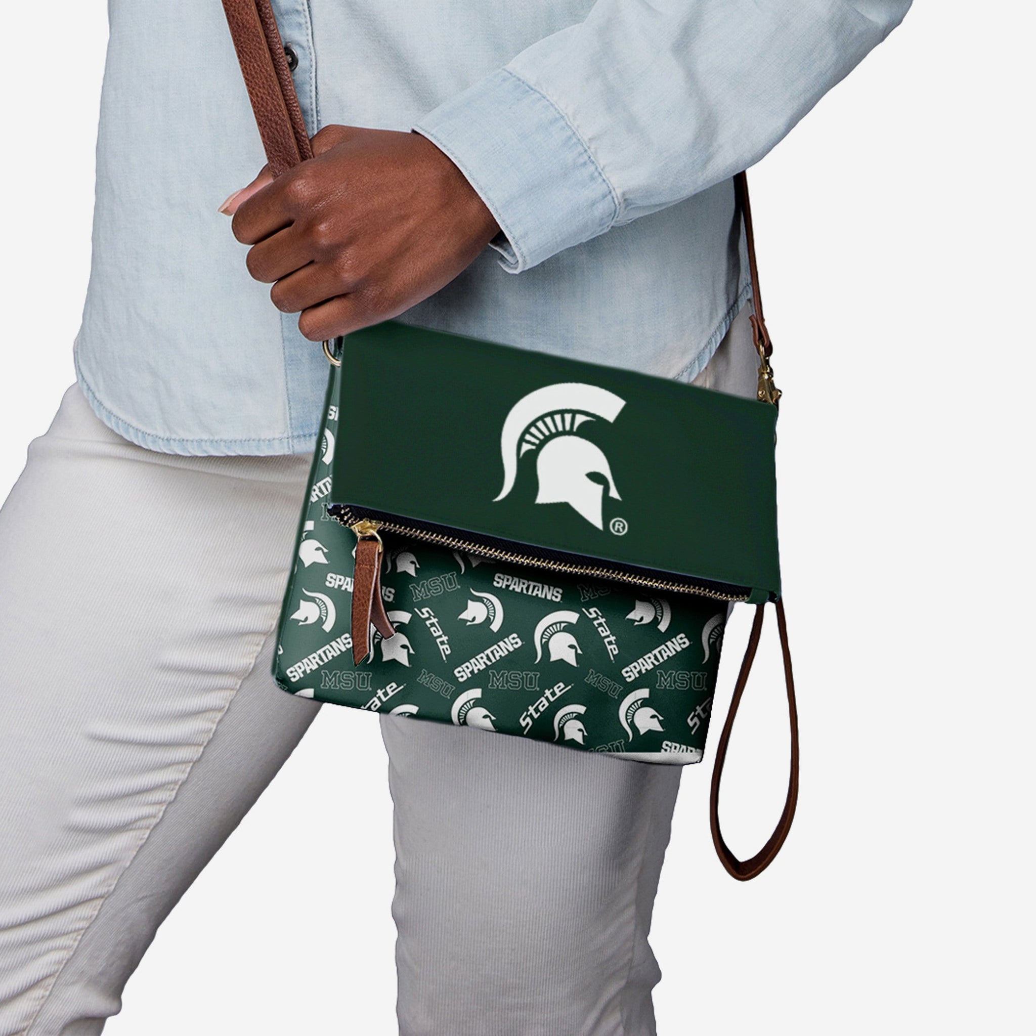 You carry your team spirit with you wherever you go. Shouldn't your bag do the same? (Hint: The answer is a resounding ABSOLUTELY) We've got you covered. Just carry your stuff in this Michigan State Spartans Printed Collection Foldover Tote Bag and you'll be good to go.