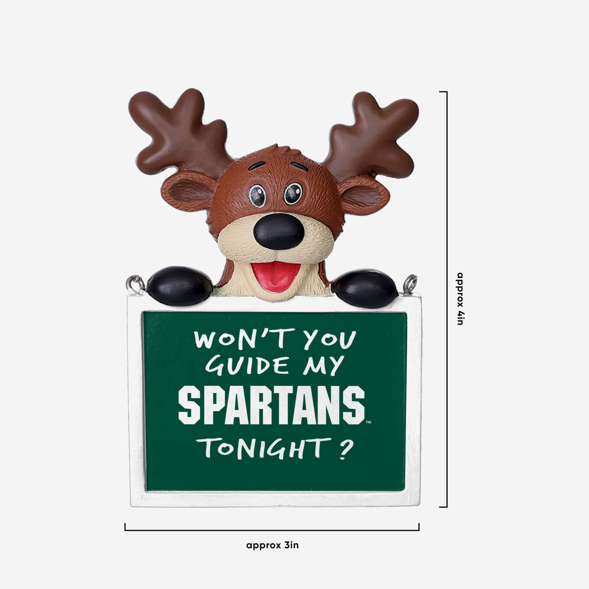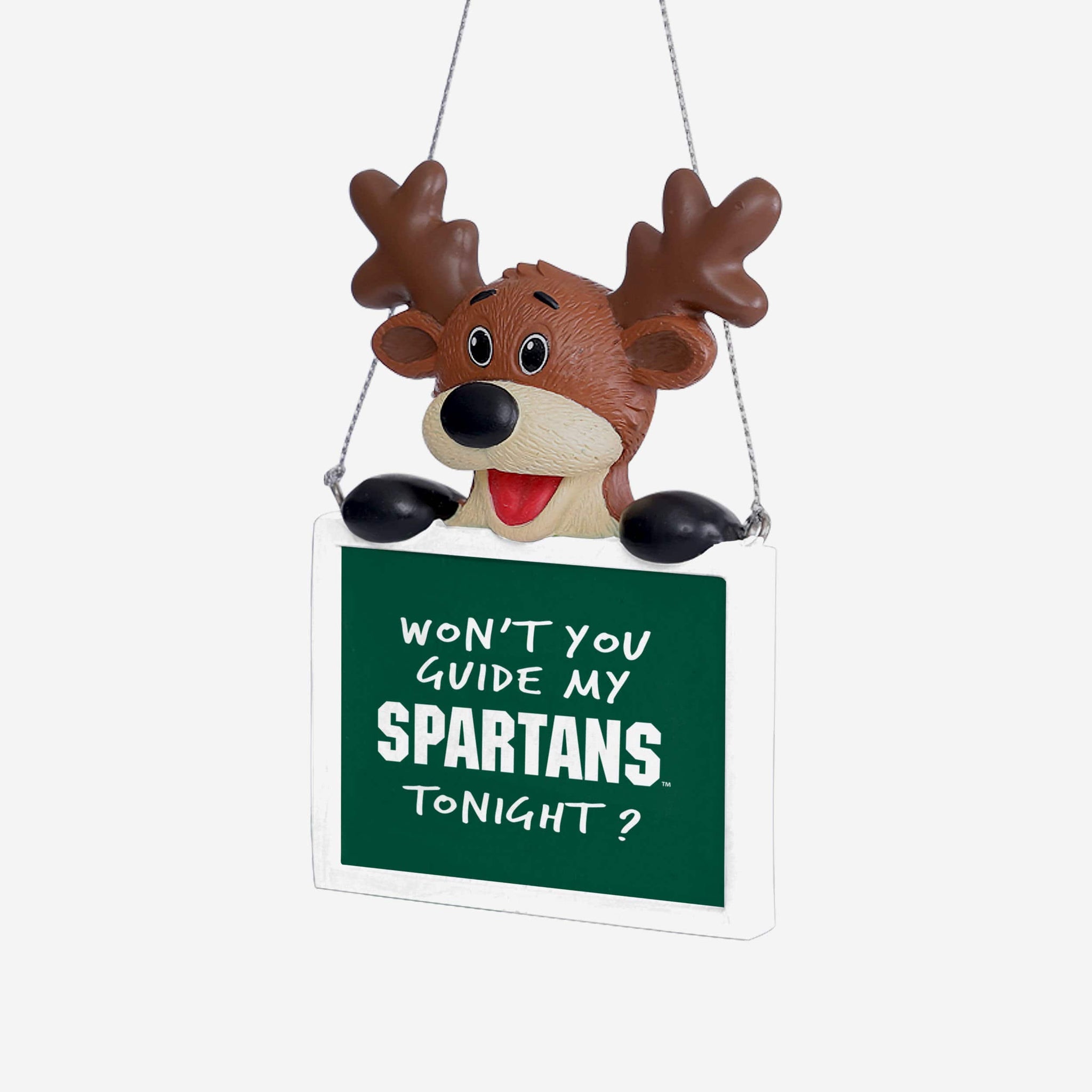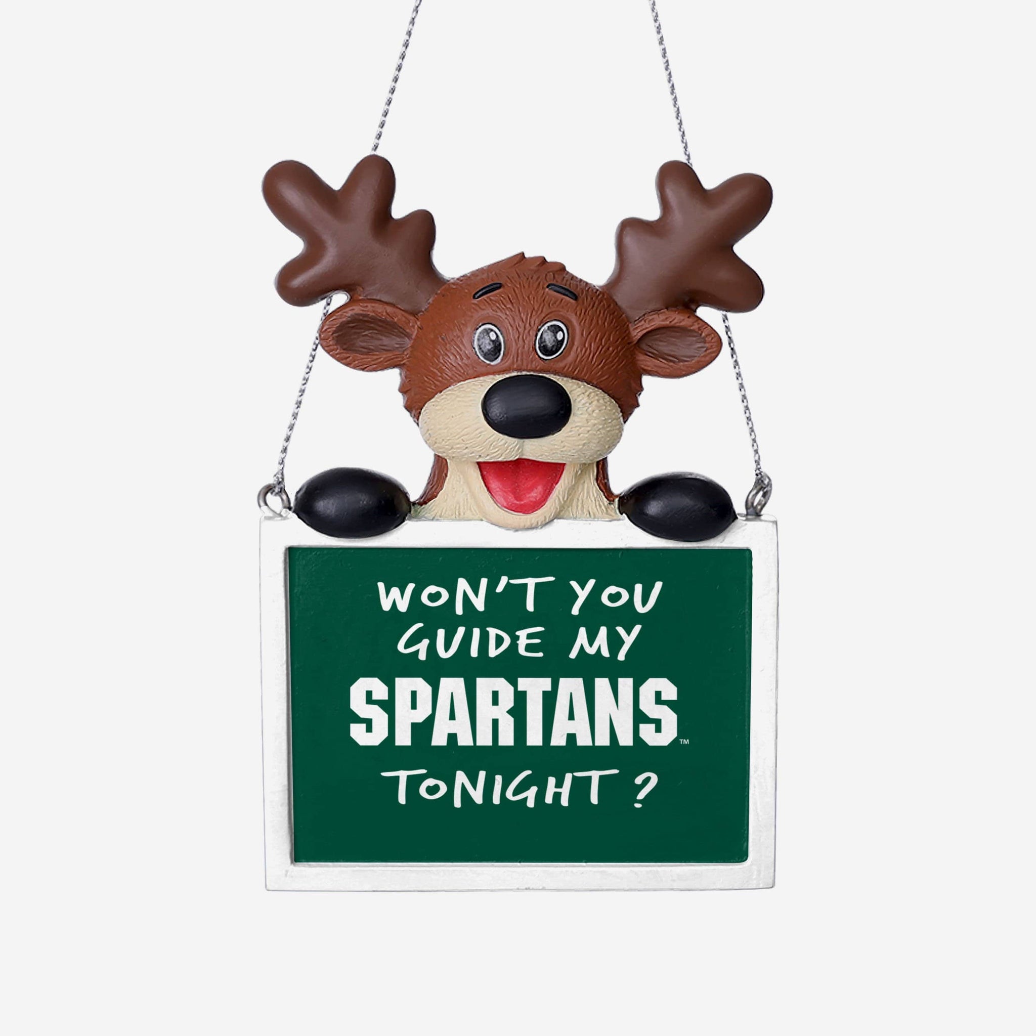 Tired: Dasher. Dancer. Prancer. Vixen. Wired: This Michigan State Spartans Reindeer with Sign Ornament.