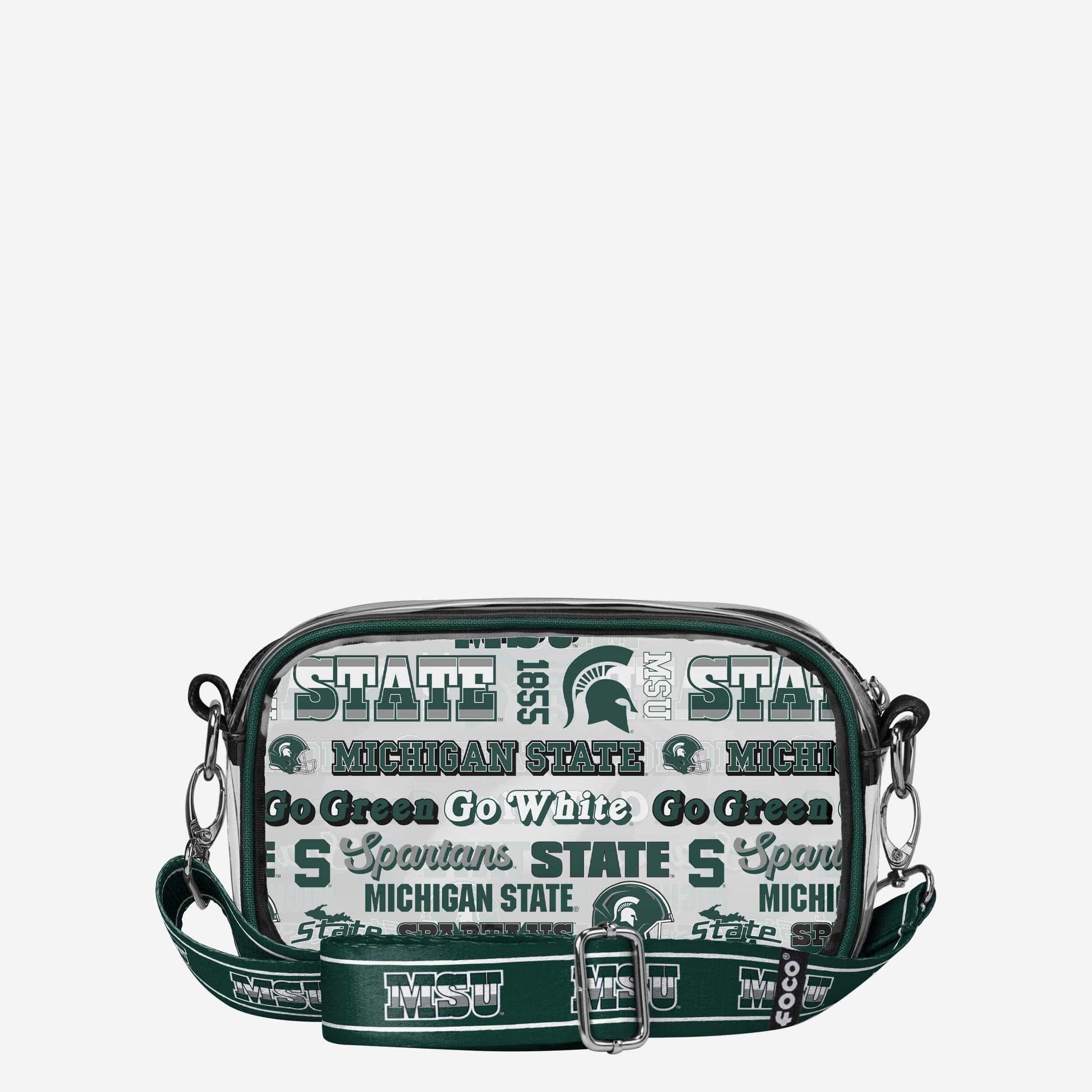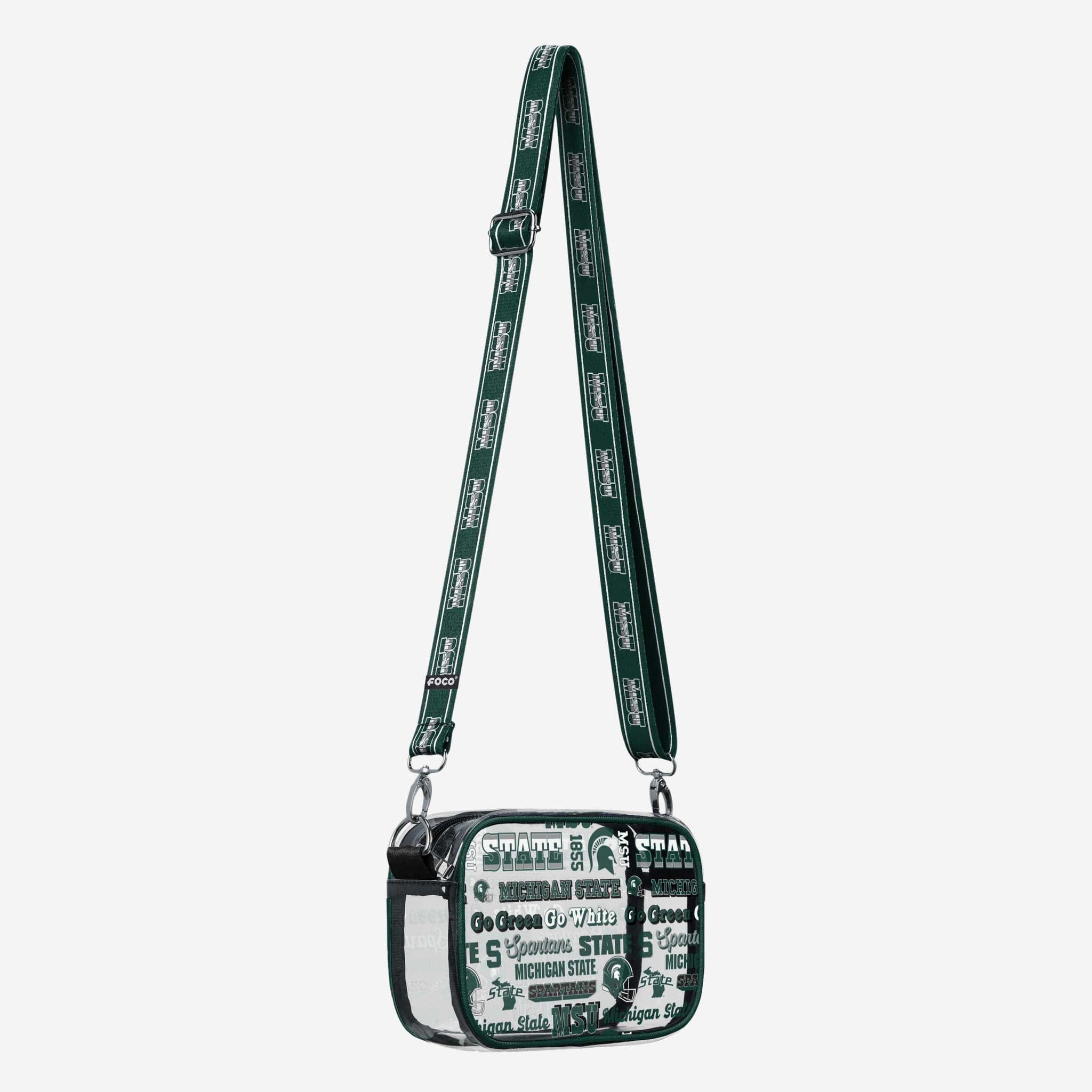 Over your shoulder and off to the game. Whether you're running errands on the town or running the tailgate in the parking lot, this Michigan State Spartans Repeat Retro Print Clear Crossbody Bag is the perfect way to carry the team like never before.
