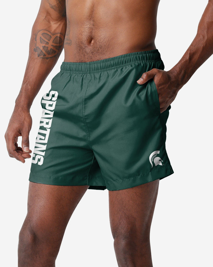 THIS is the summer style you've been craving. Get ready for some fun in the sun by rocking these Michigan State Spartans Big Wordmark Solid Swimming Trunks.