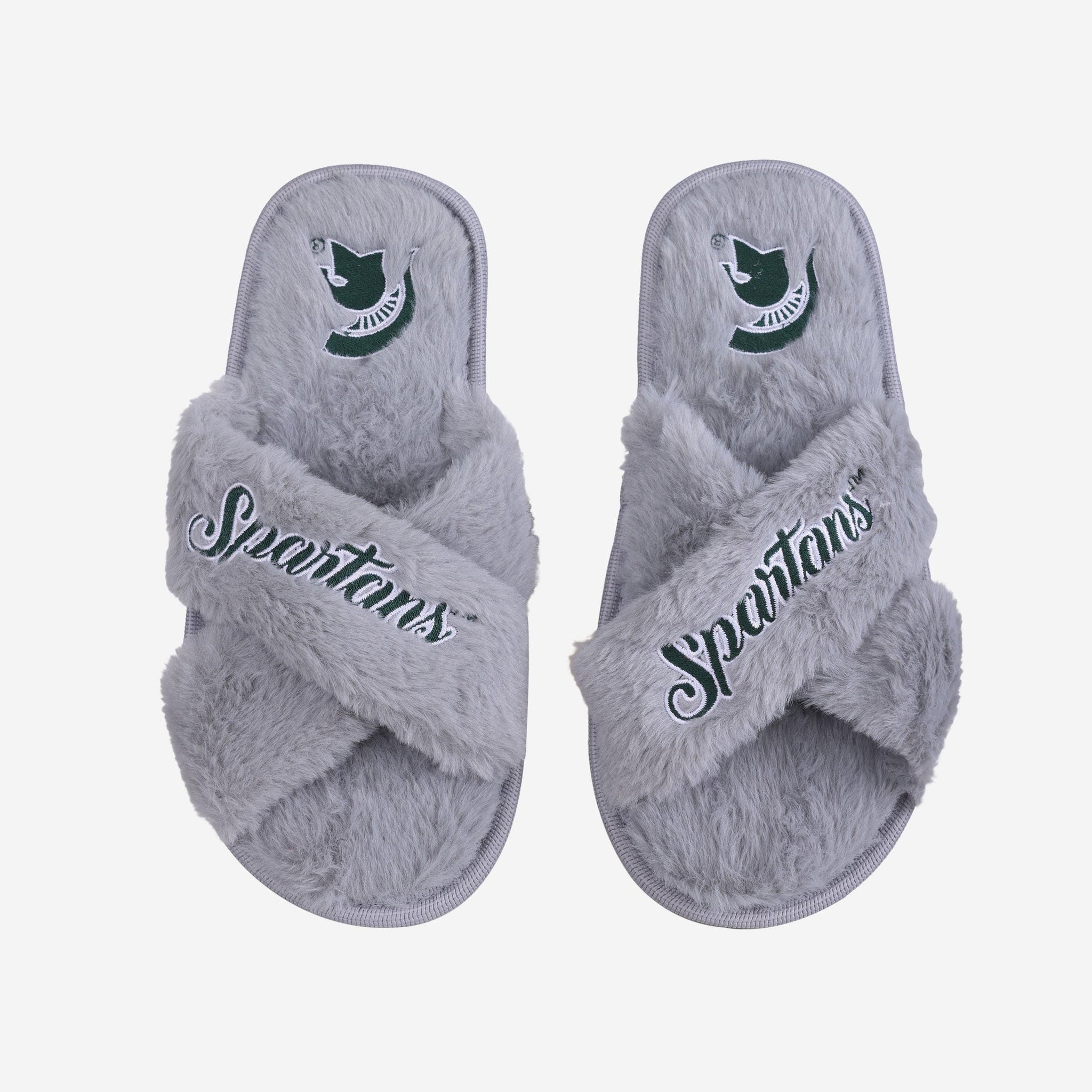 Slip in to something fuzzy, festive, and oh, so fan-tastic on your relaxing days at home. These Michigan State Spartans Women's Script Wordmark Fur Cross Slides are the best way to rep the team while you kick back and watch the game on TV.