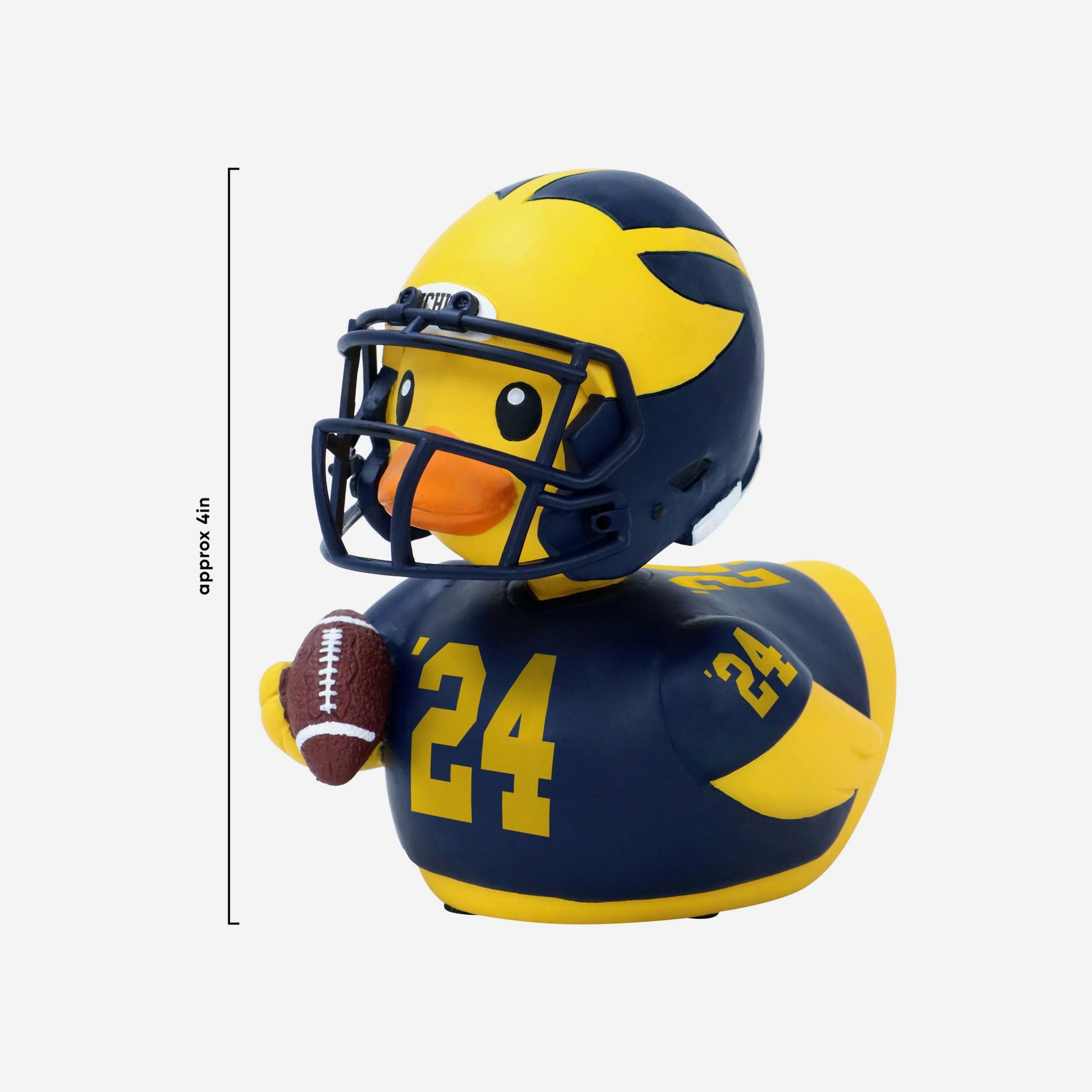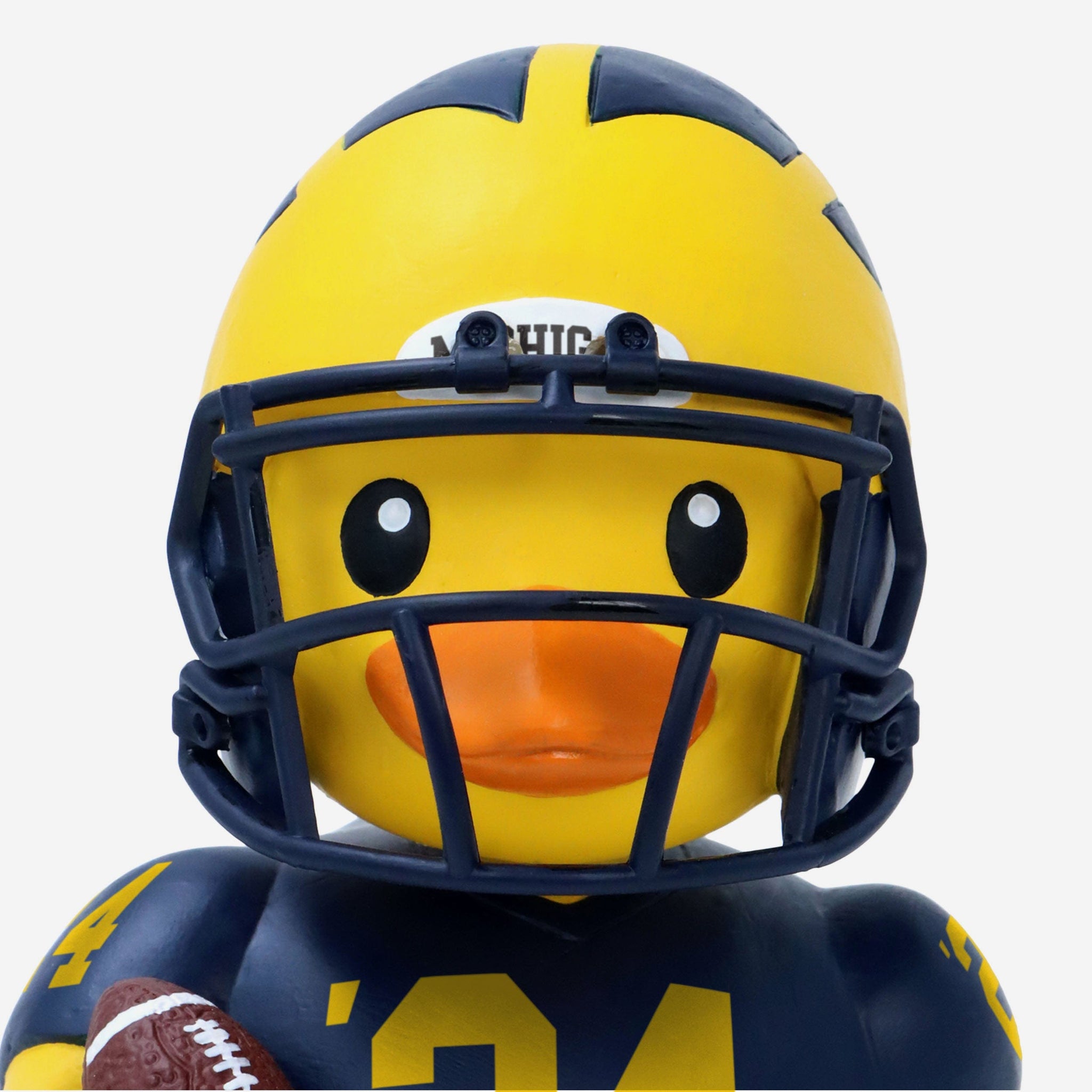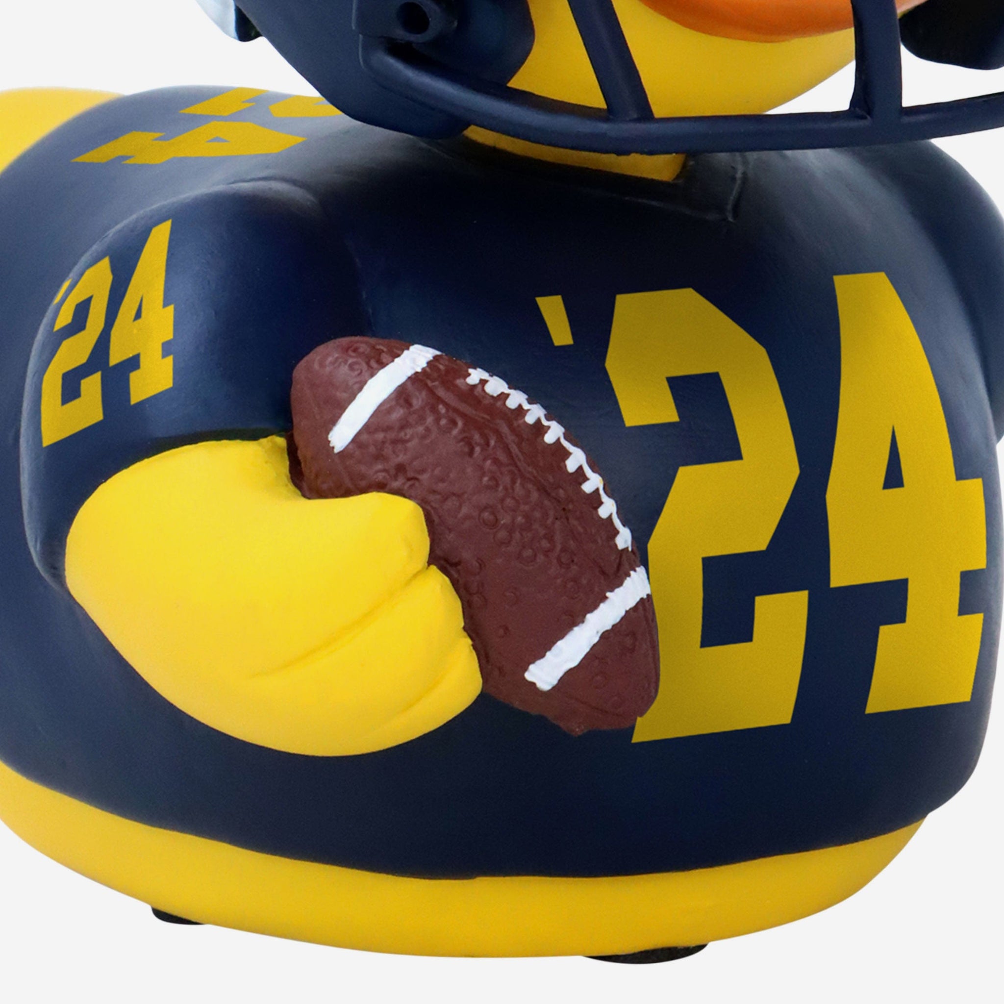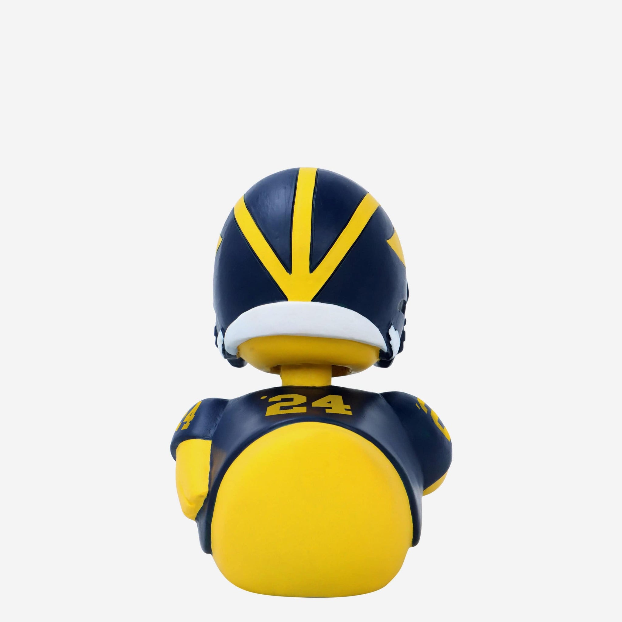 - Portrays duck wearing the Wolverines' blue gameday uniform and helmet, ready to make a splash in your collection