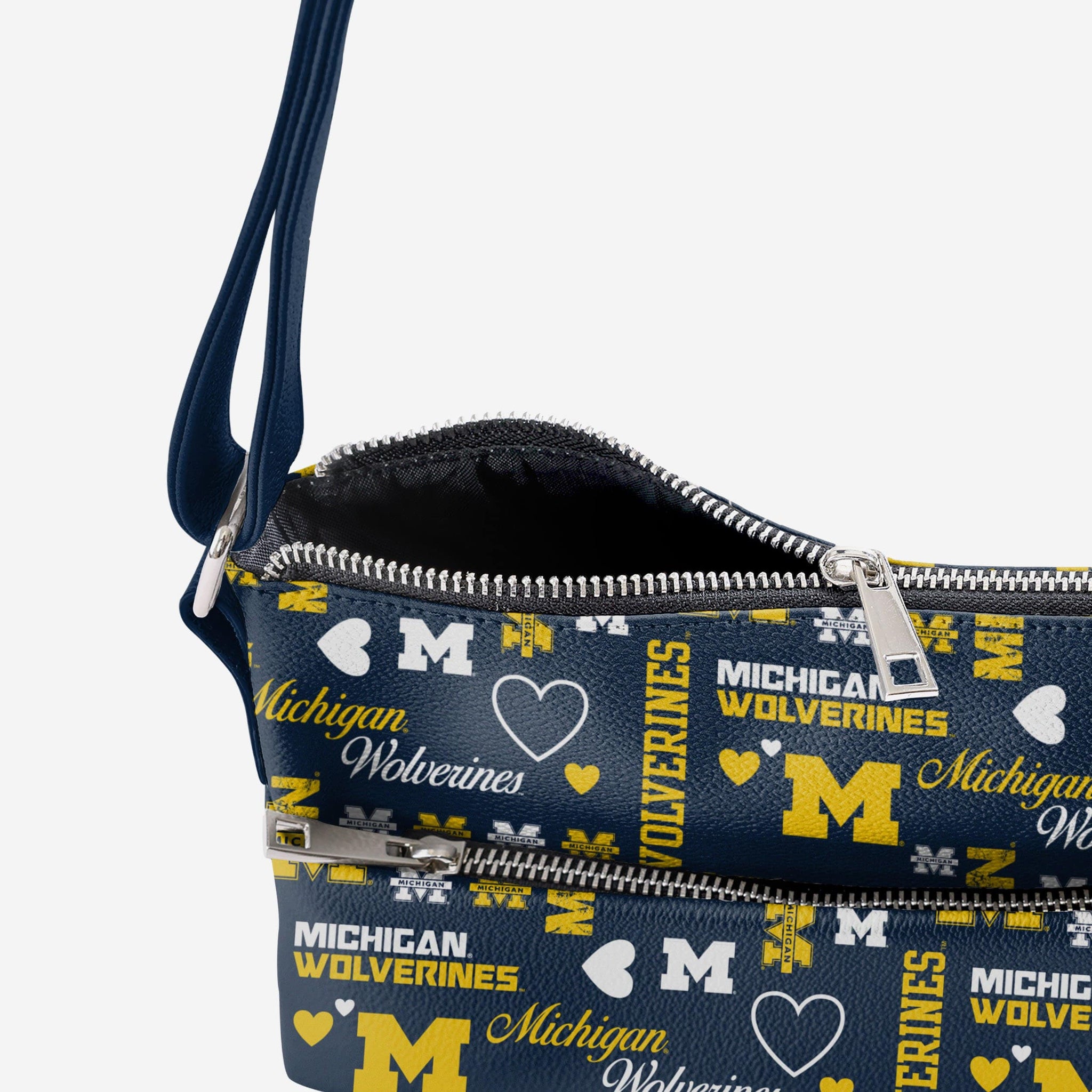 Don't wear your heart on your sleeve - wear it ACROSS your sleeve every time you rock this Michigan Wolverines Logo Love Crossbody Purse!