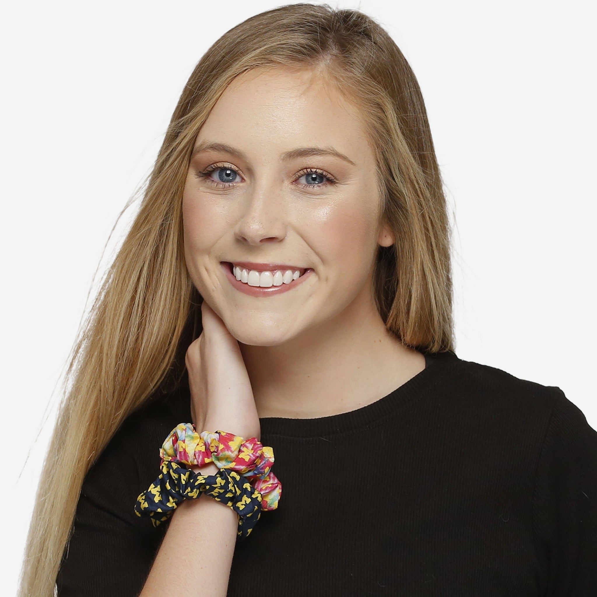 - Three-pack of hair scrunchies with unique designs, because three scrunchies are better than one