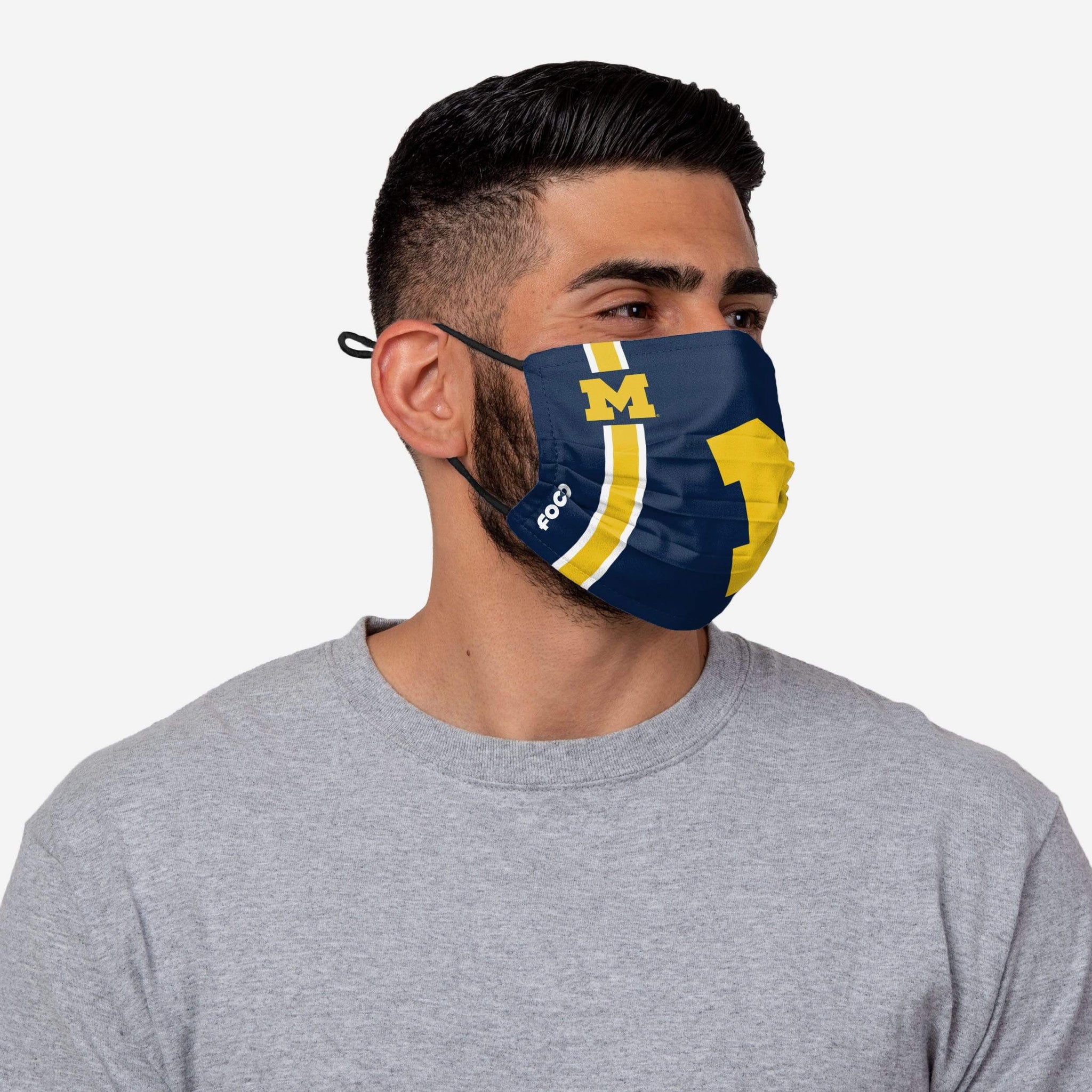 Cover up while you represent your favorite team in this Michigan Wolverines On-Field Sideline Stripe face covering!