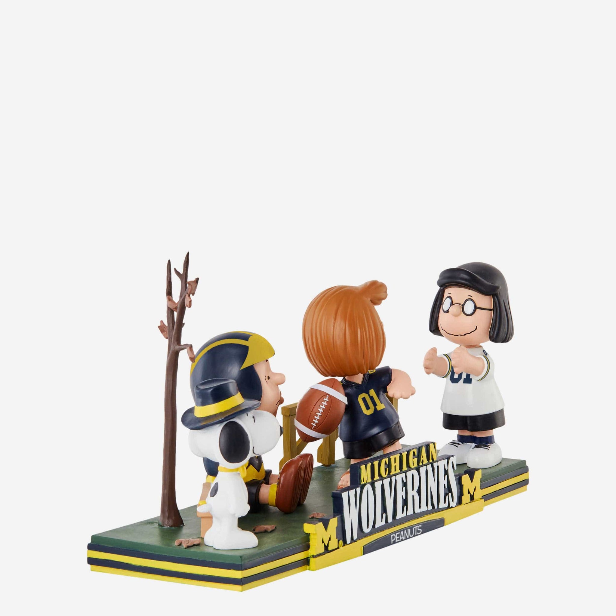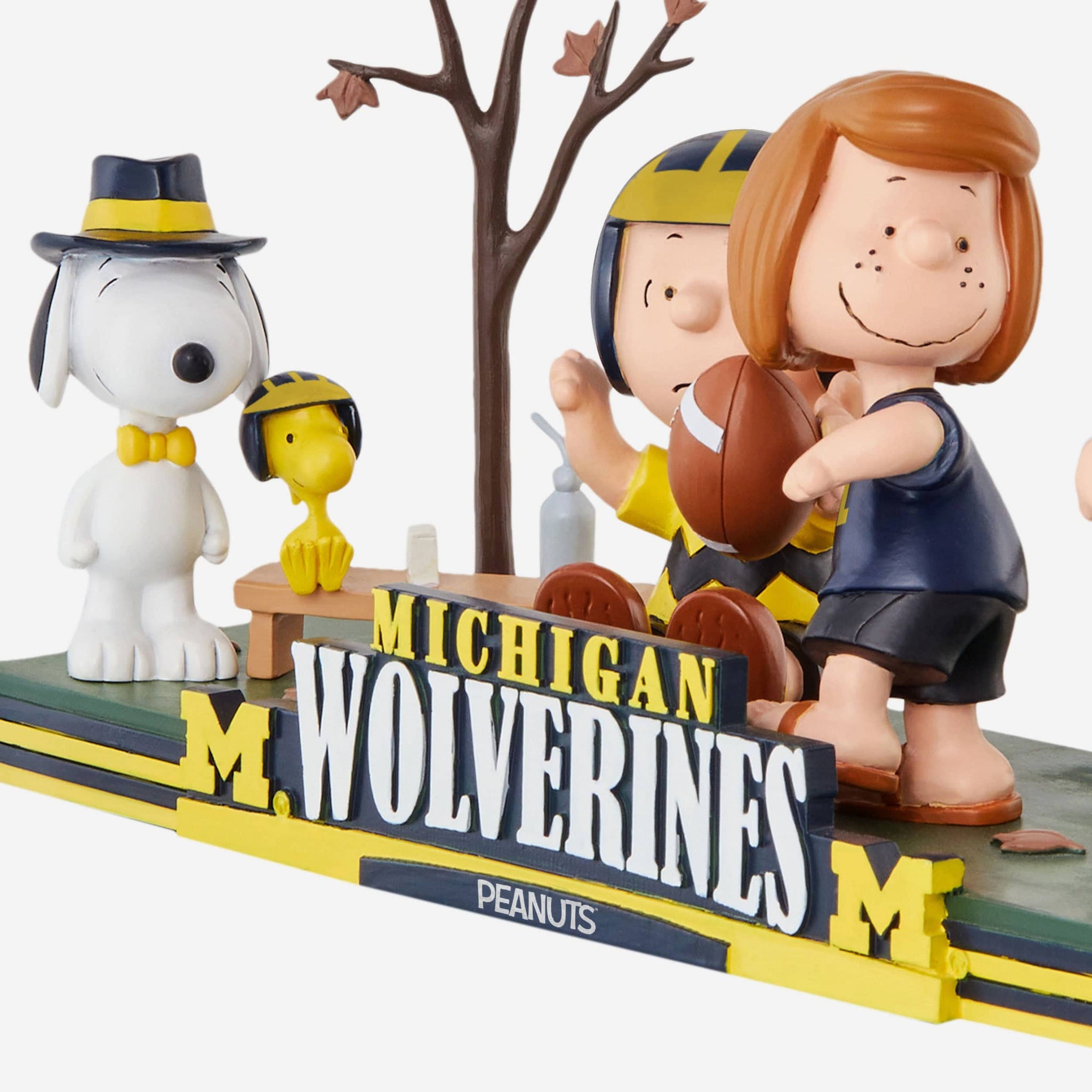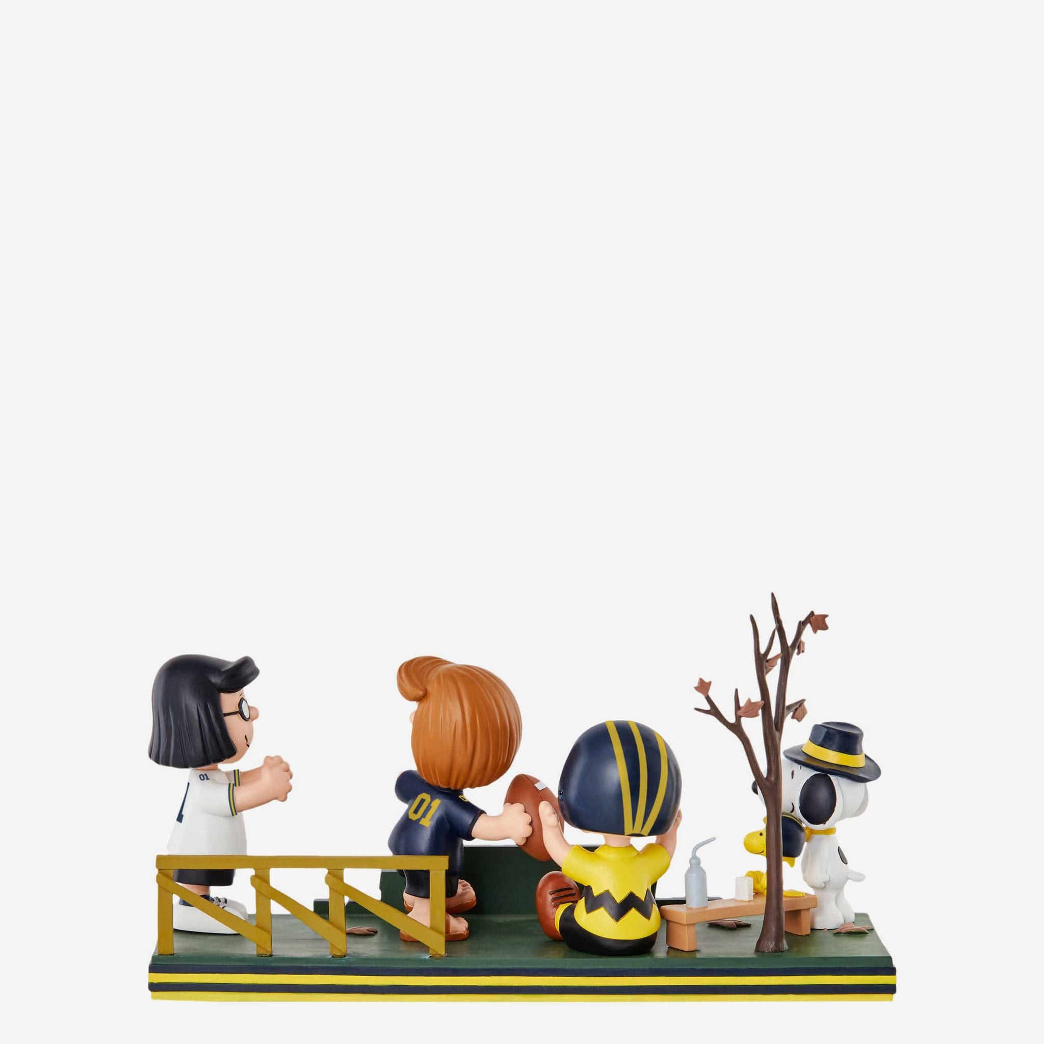 Get that touchdown dance ready. Bring all the gameday goodness to your collection and show off some superstars in your huddle with this Michigan Wolverines Peanuts Gang Football Field Mini Bobblehead Scene.