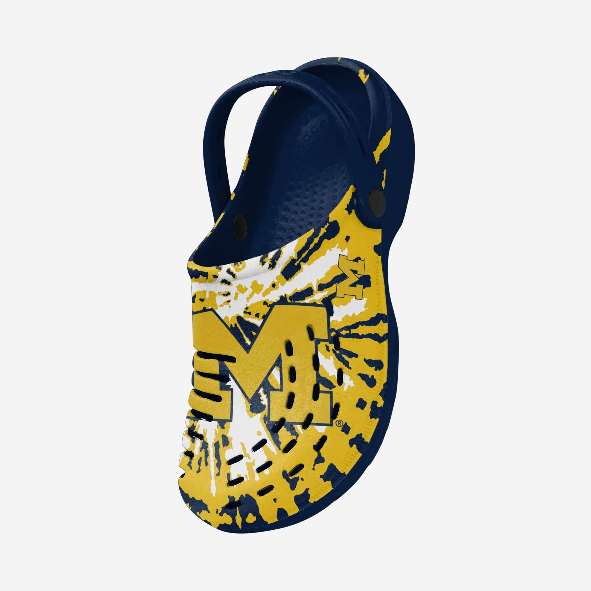 Enjoy a heaping helping of groovy goodness by standing out in these Michigan Wolverines Tie-Dye Clogs with Straps.