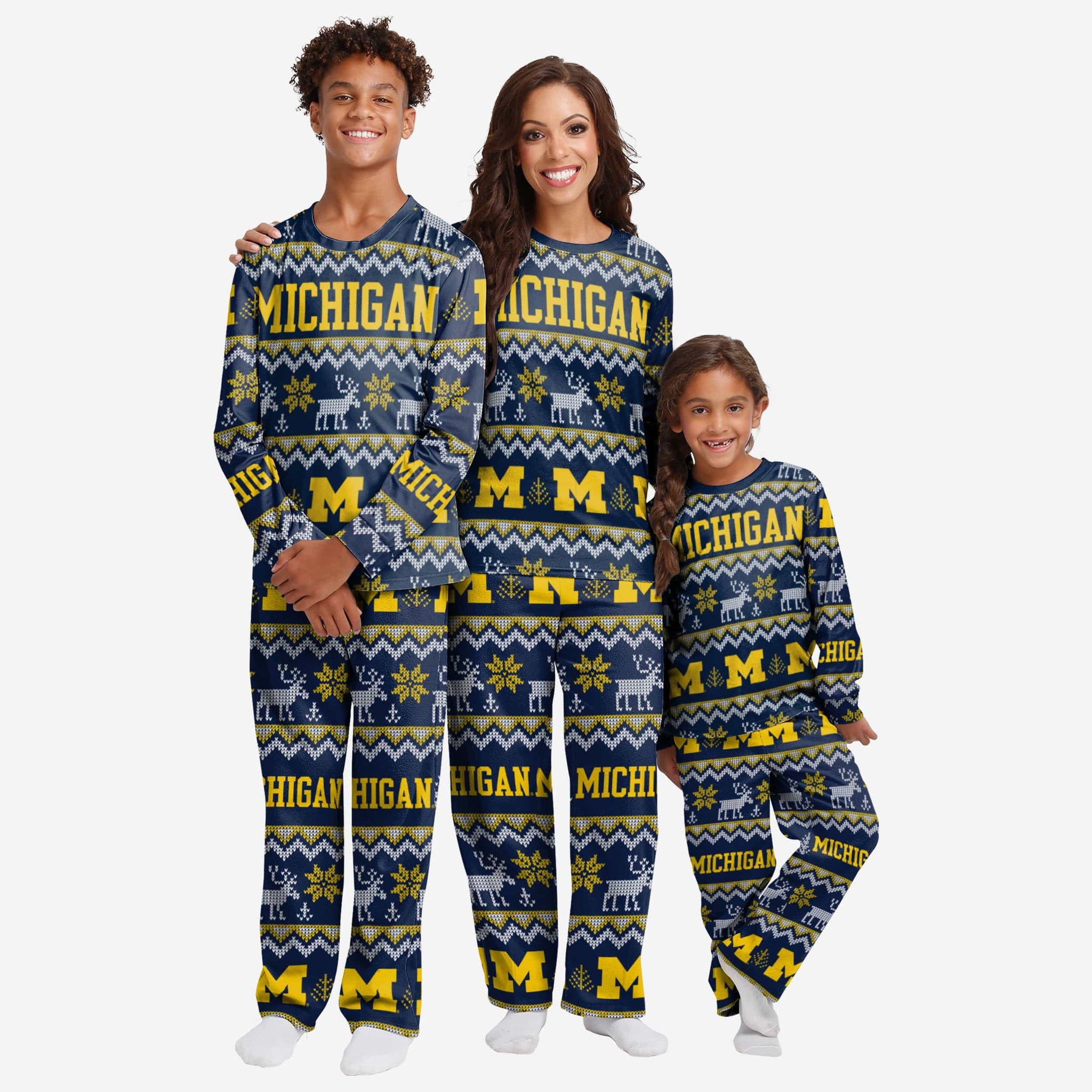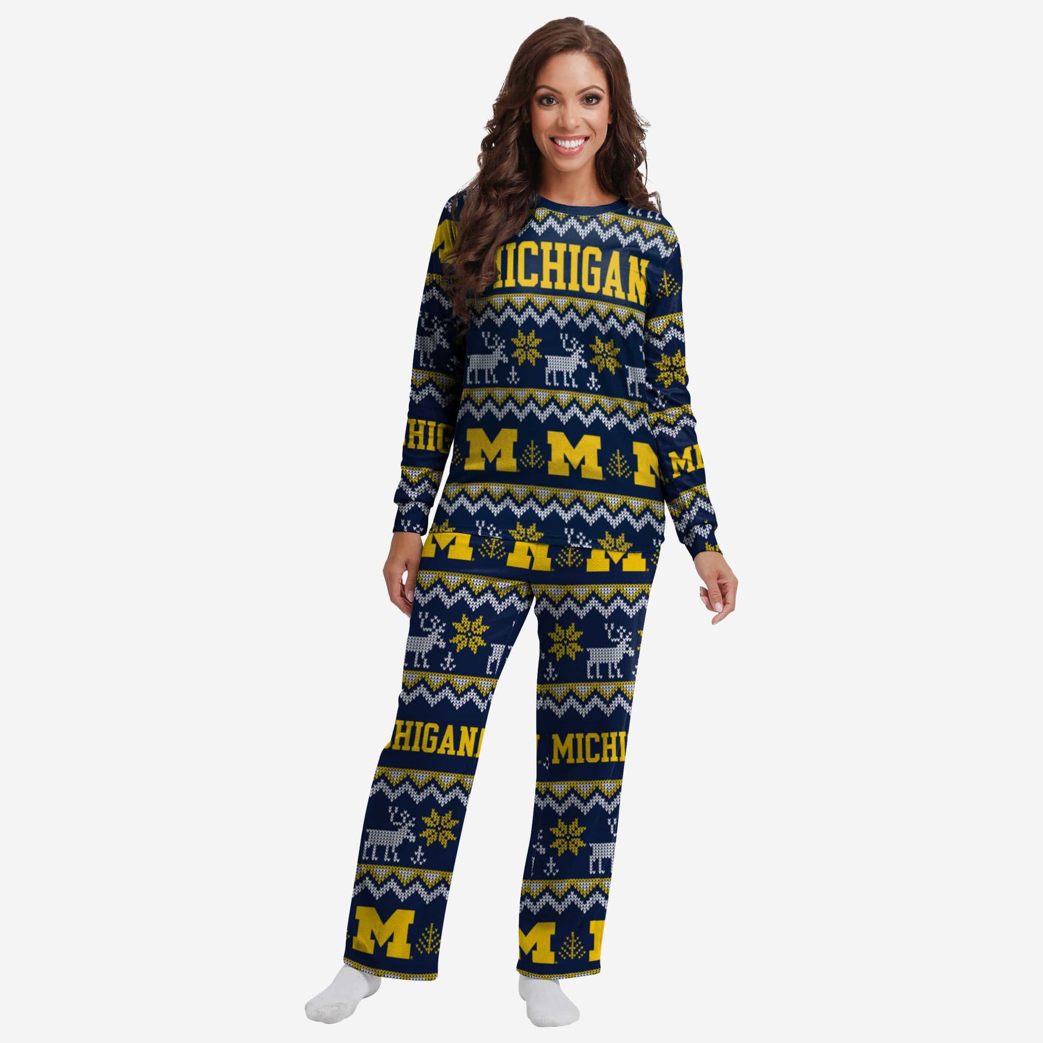 Michigan Wolverines Womens Ugly Pattern Family Holiday Pajamas FOCO S - FOCO.com