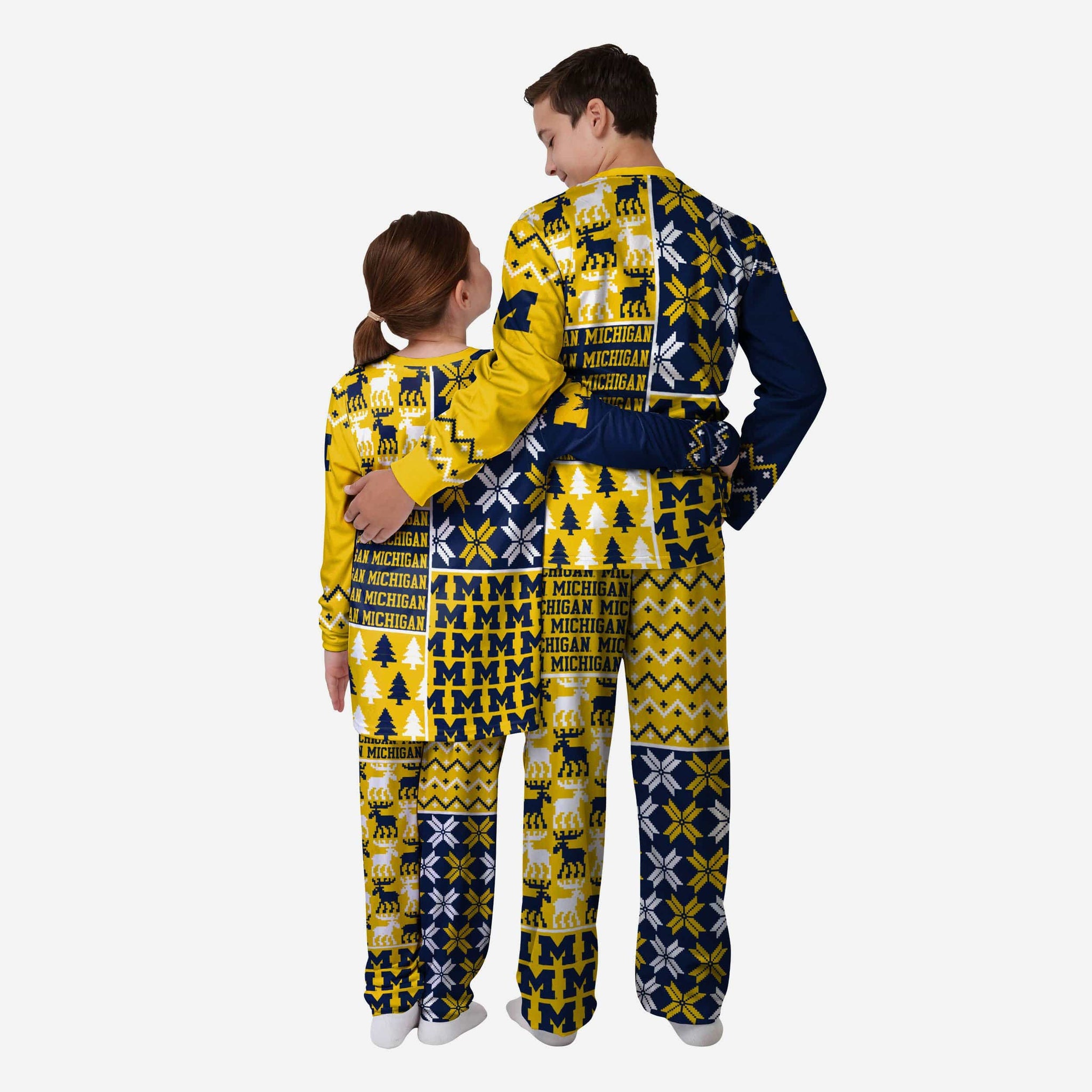 Get some matching family pajamas and dress to impress this holiday season! You won't want to miss these kids' team pajamas! These youth PJ's are comfortable and show off your team spirit in the form of some sweet youth jammies. Introducing the Michigan Wolverines Youth Busy Block Family Holiday Pajamas! Don't forget to take your holiday photo with the whole family wearing matching Christmas pajamas!
