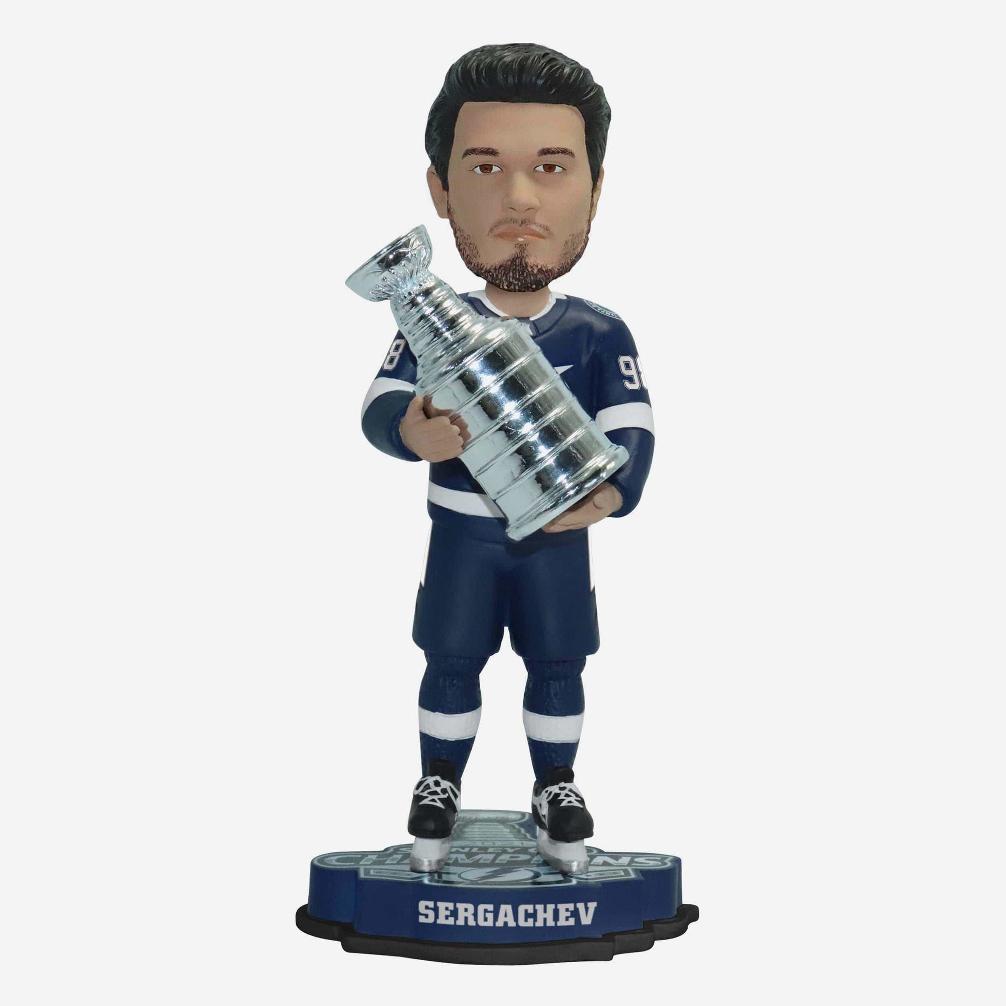 Ready to bobble like a champ while you bobble WITH a champ? Of course you are! Just add this Mikhail Sergachev Tampa Bay Lightning 2021 Stanley Cup Champions Bobblehead to your lineup!