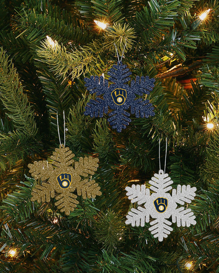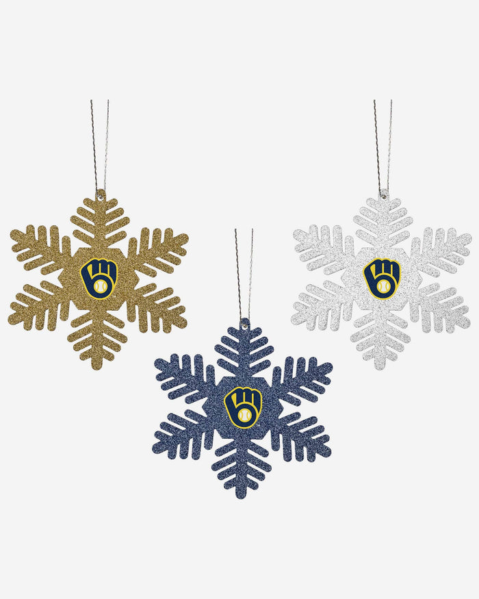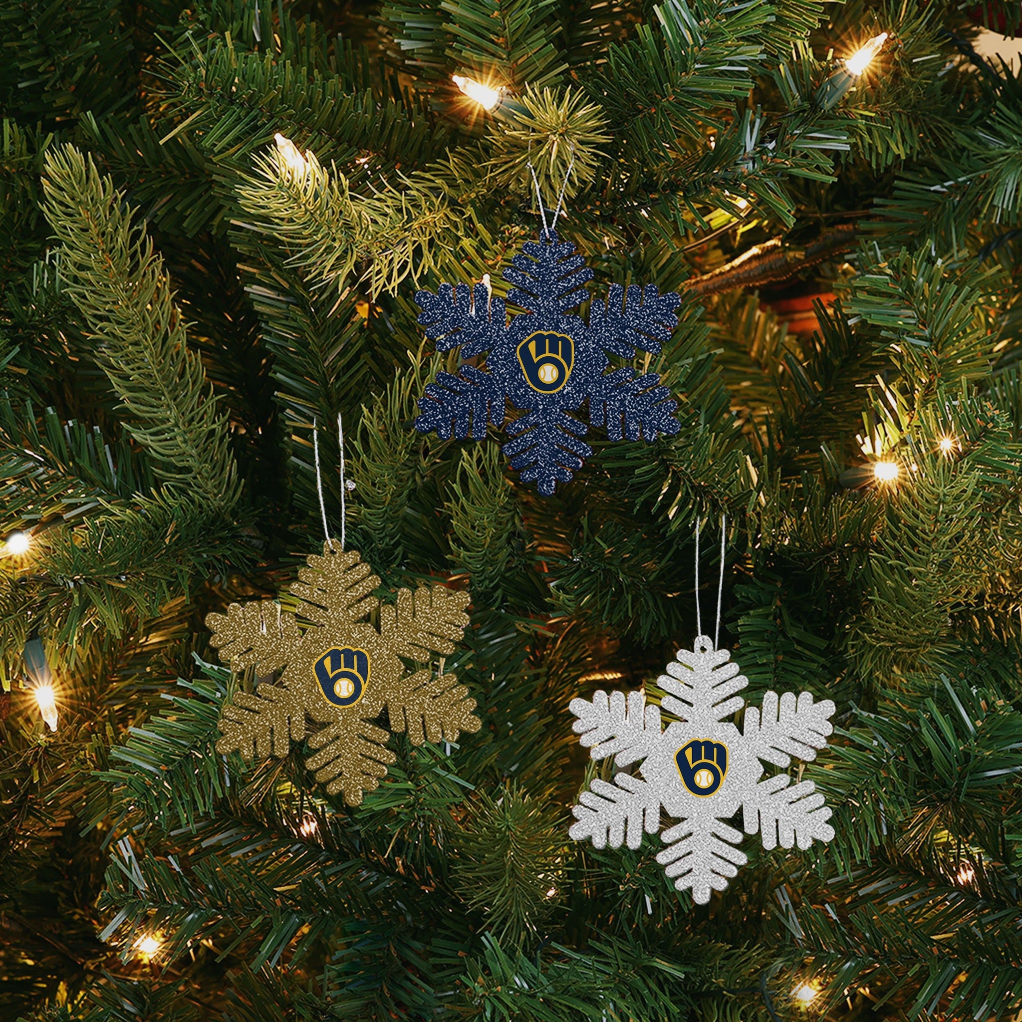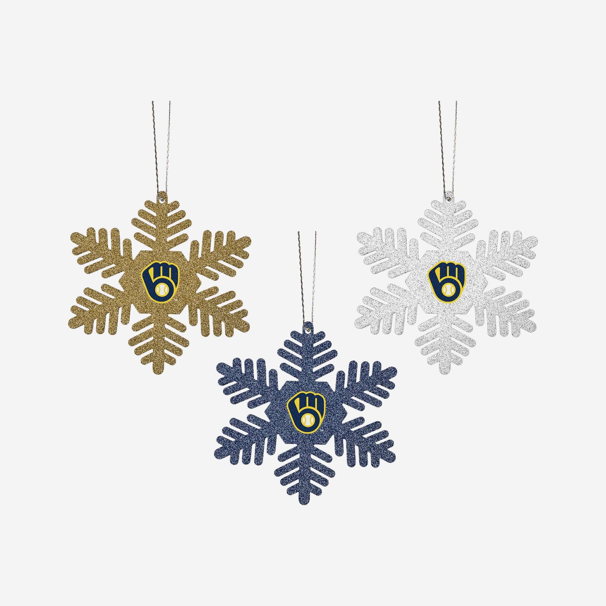 Milwaukee Brewers 3 Pack Metal Glitter Snowflake Ornament FOCO - FOCO.com