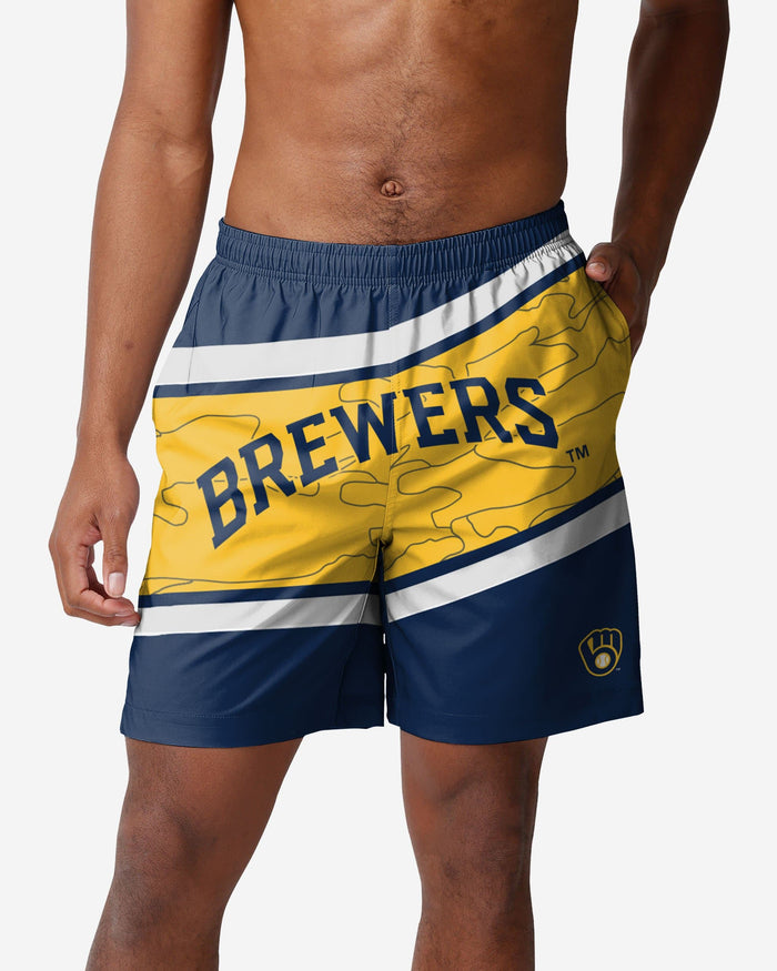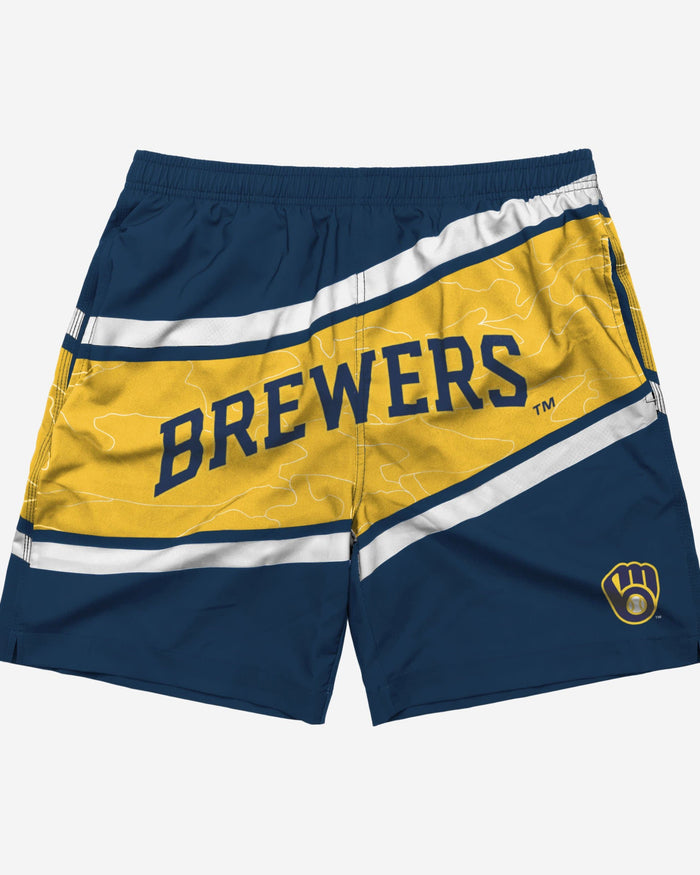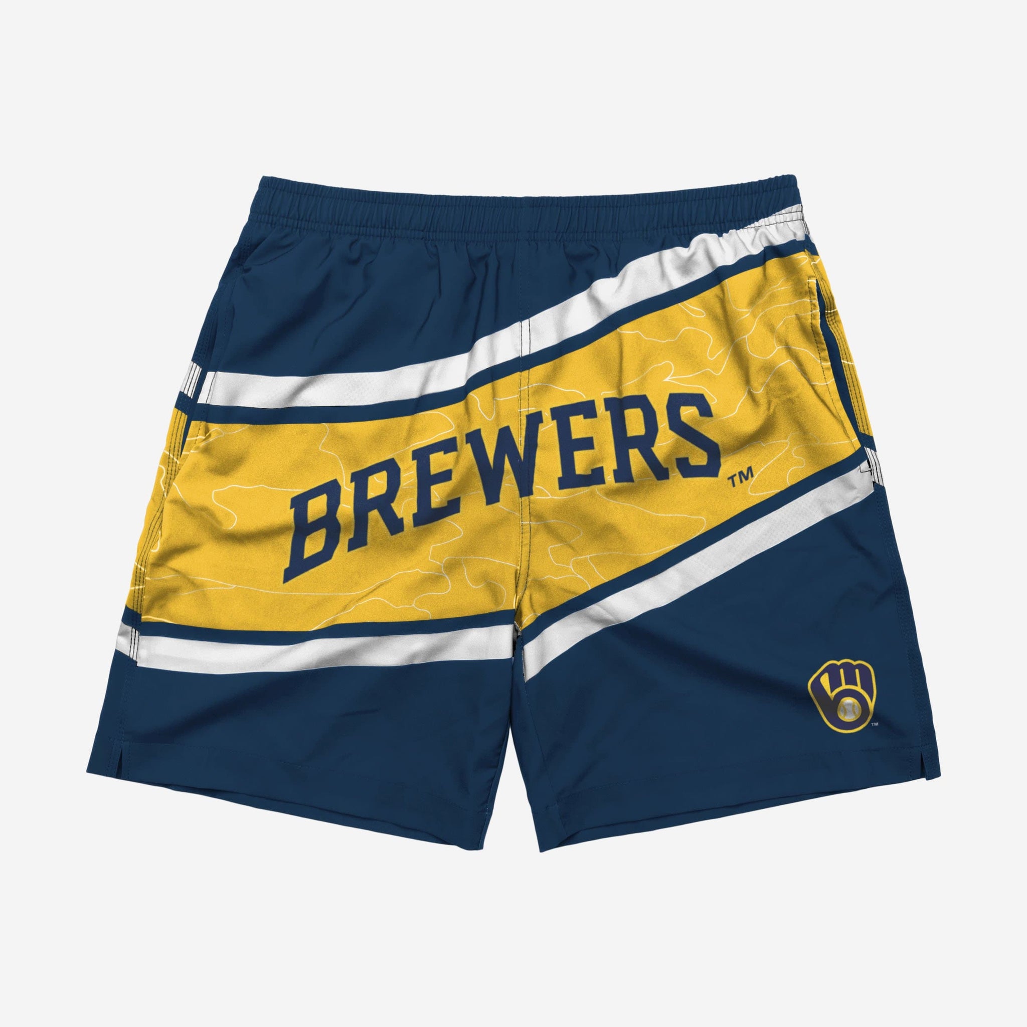 Enjoying a day off at the pool or beach? Don't forget your sunglasses, towel, sunscreen, and, of course, your fandom. These Milwaukee Brewers Traditional Big Wordmark Swimming Trunks can help with that last one. Fan on while you get your tan on.