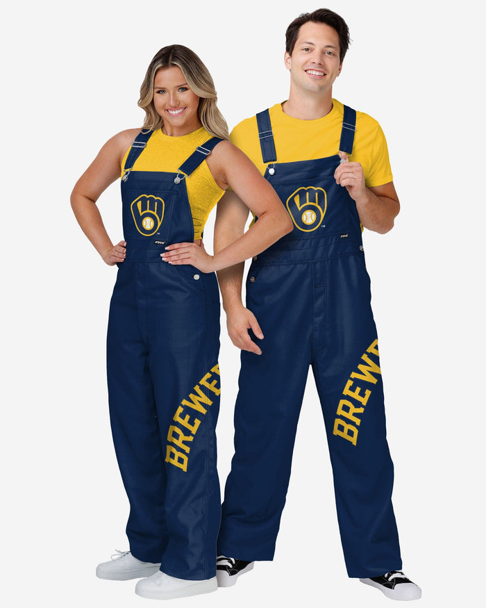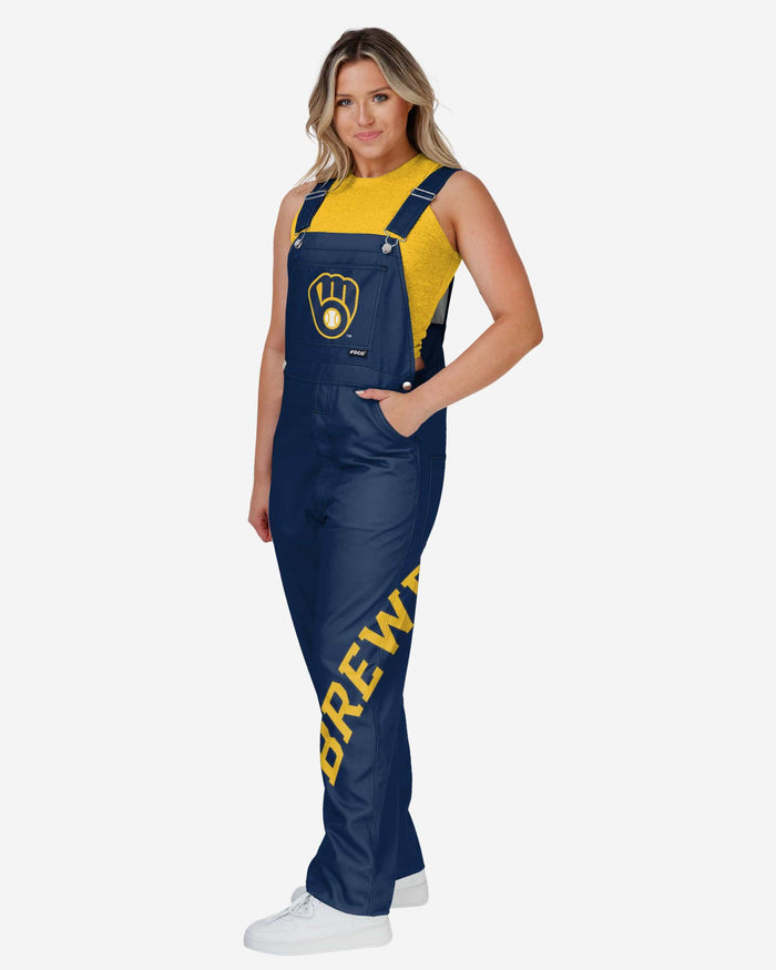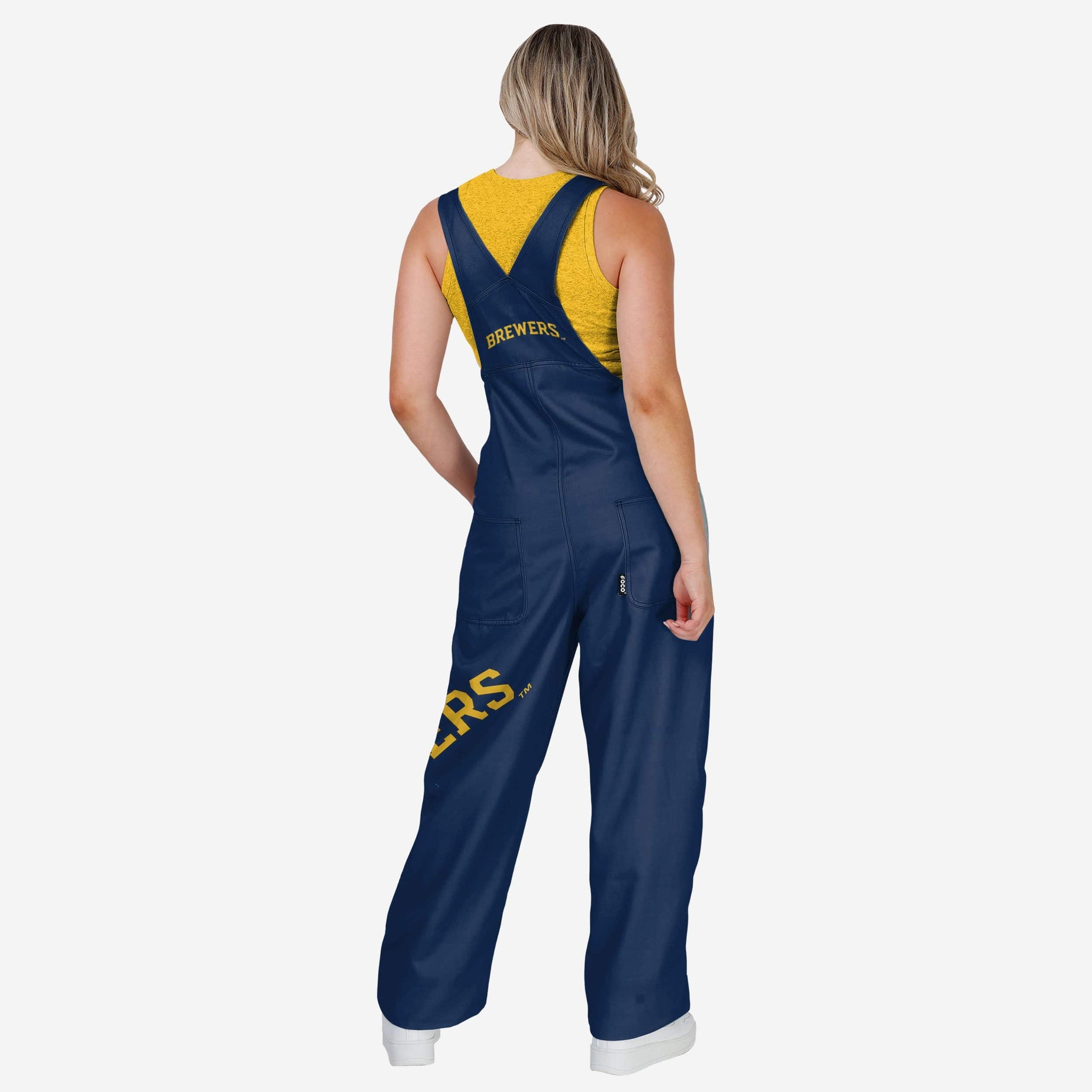 Milwaukee Brewers Womens Big Logo Bib Overalls FOCO - FOCO.com