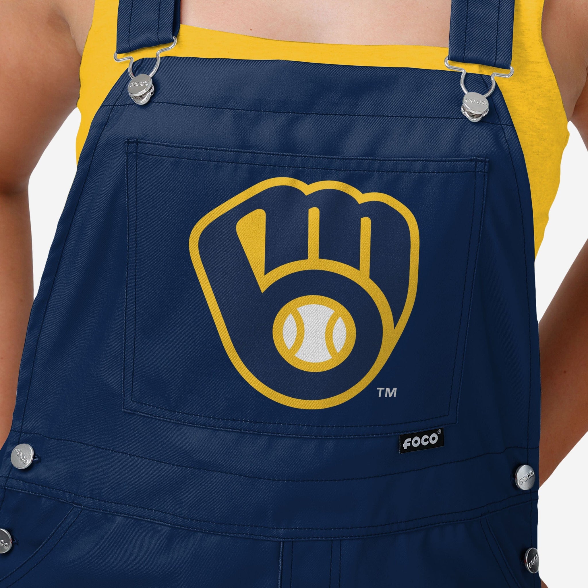 Milwaukee Brewers Womens Big Logo Bib Overalls FOCO XS - FOCO.com