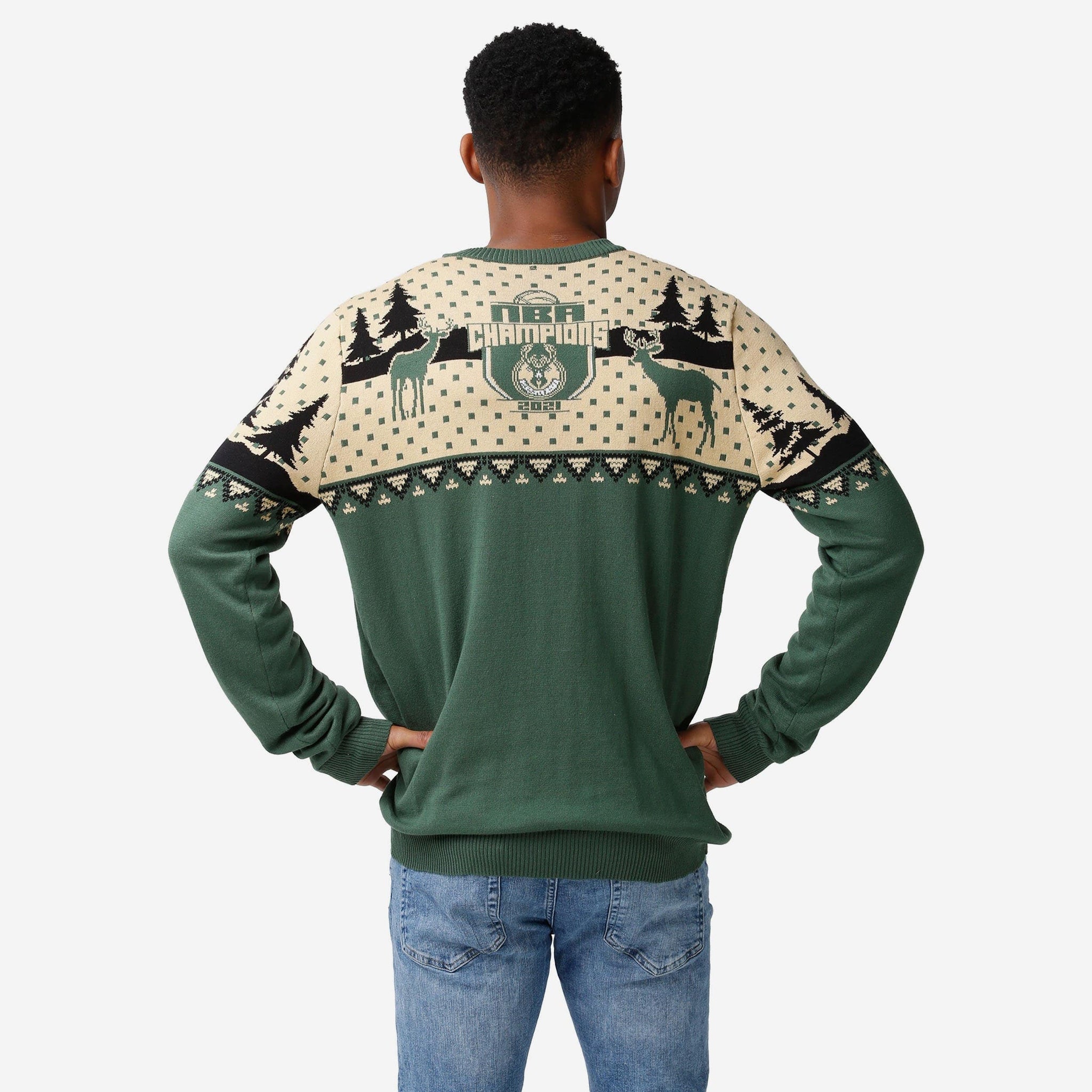 Festive. Fan. Fashion. Bring together your holiday spirit and team spirit with the championship-worthy style of this Milwaukee Bucks 2021 NBA Champions Stripe Crew Neck Sweater!