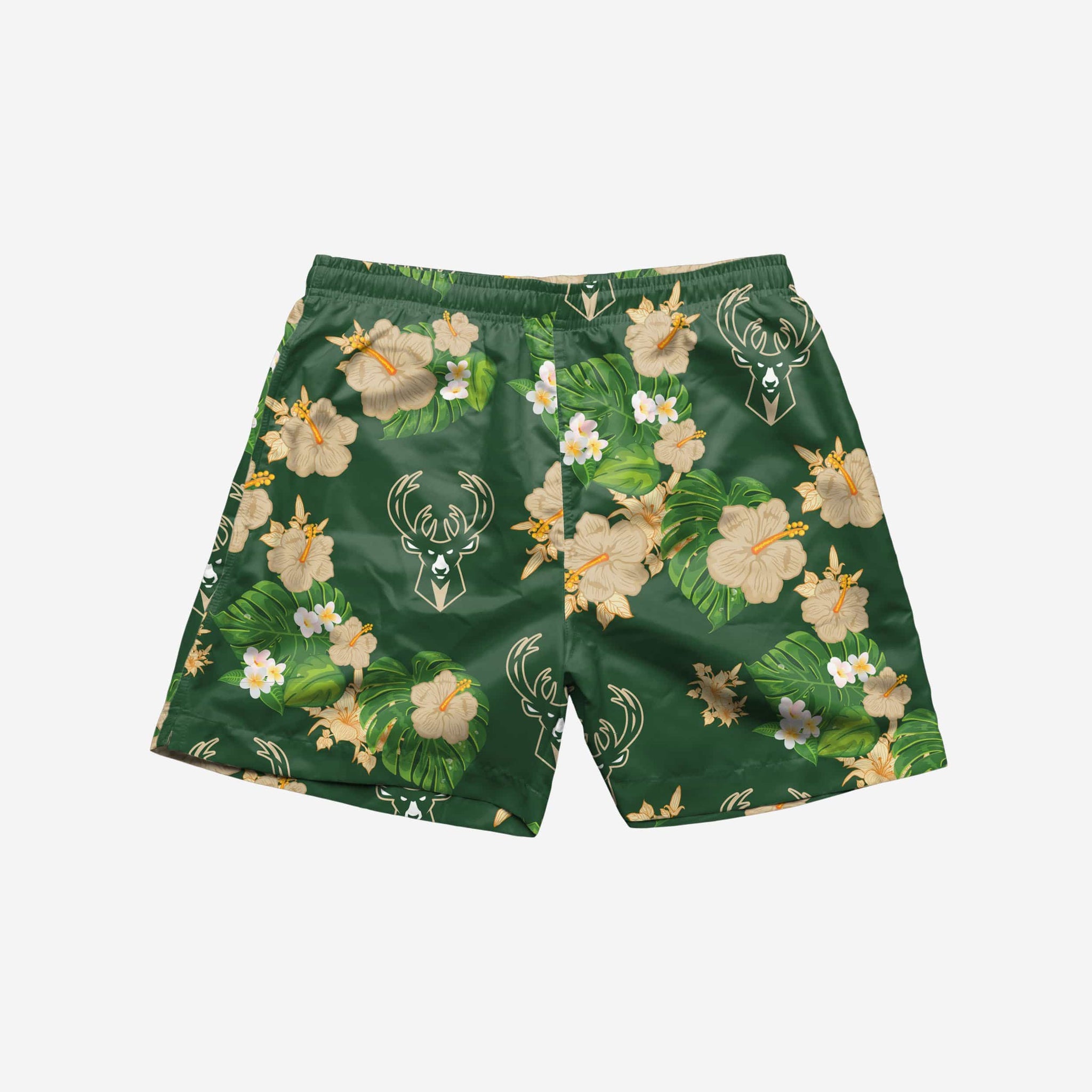 The only thing better than taking a dip in the pool on a hot day is doing so while showing off your one-of-a-kind team spirit. That's why we made these Milwaukee Bucks Floral Swimming Trunks.