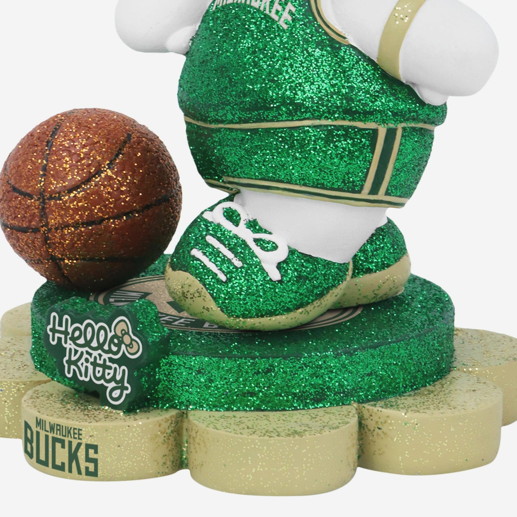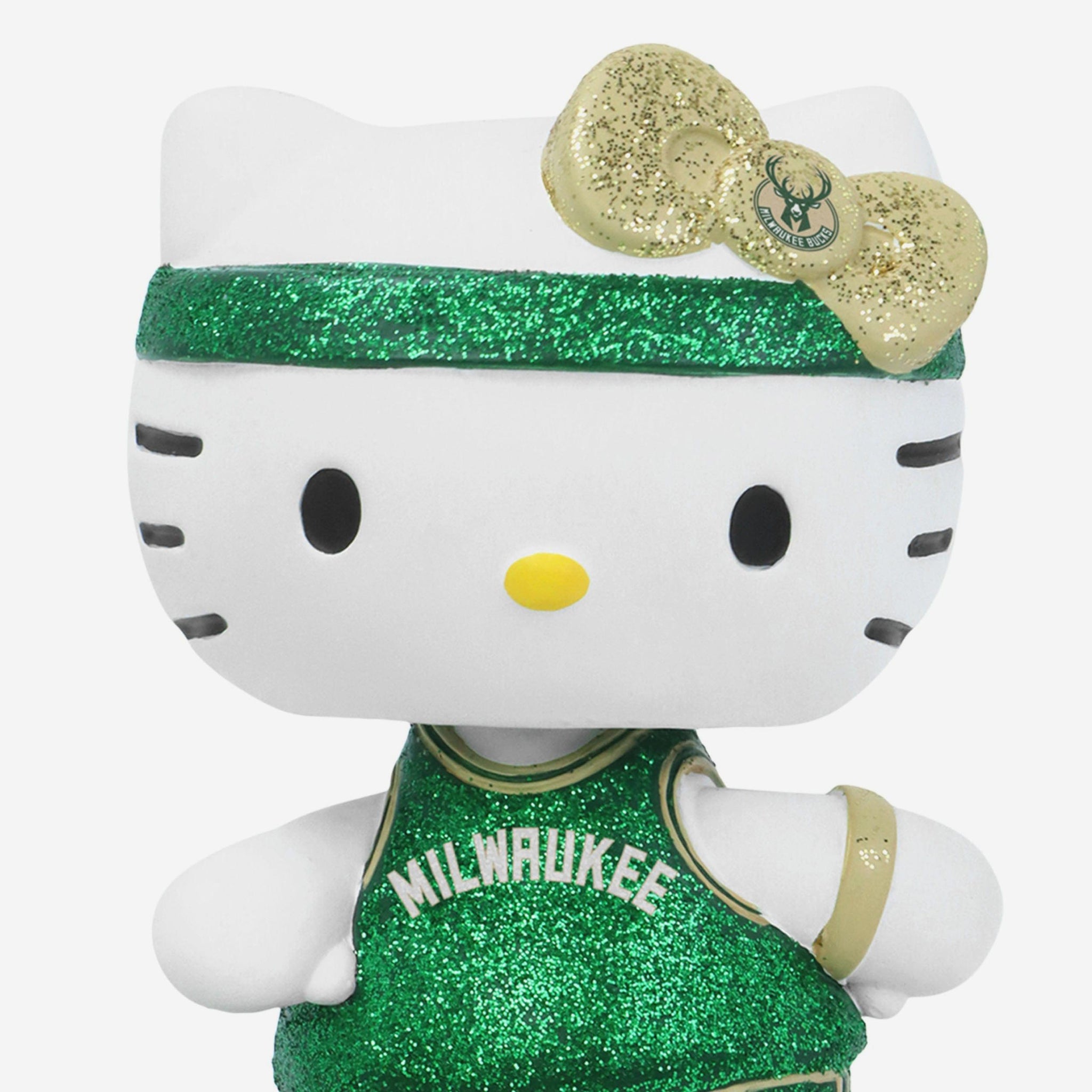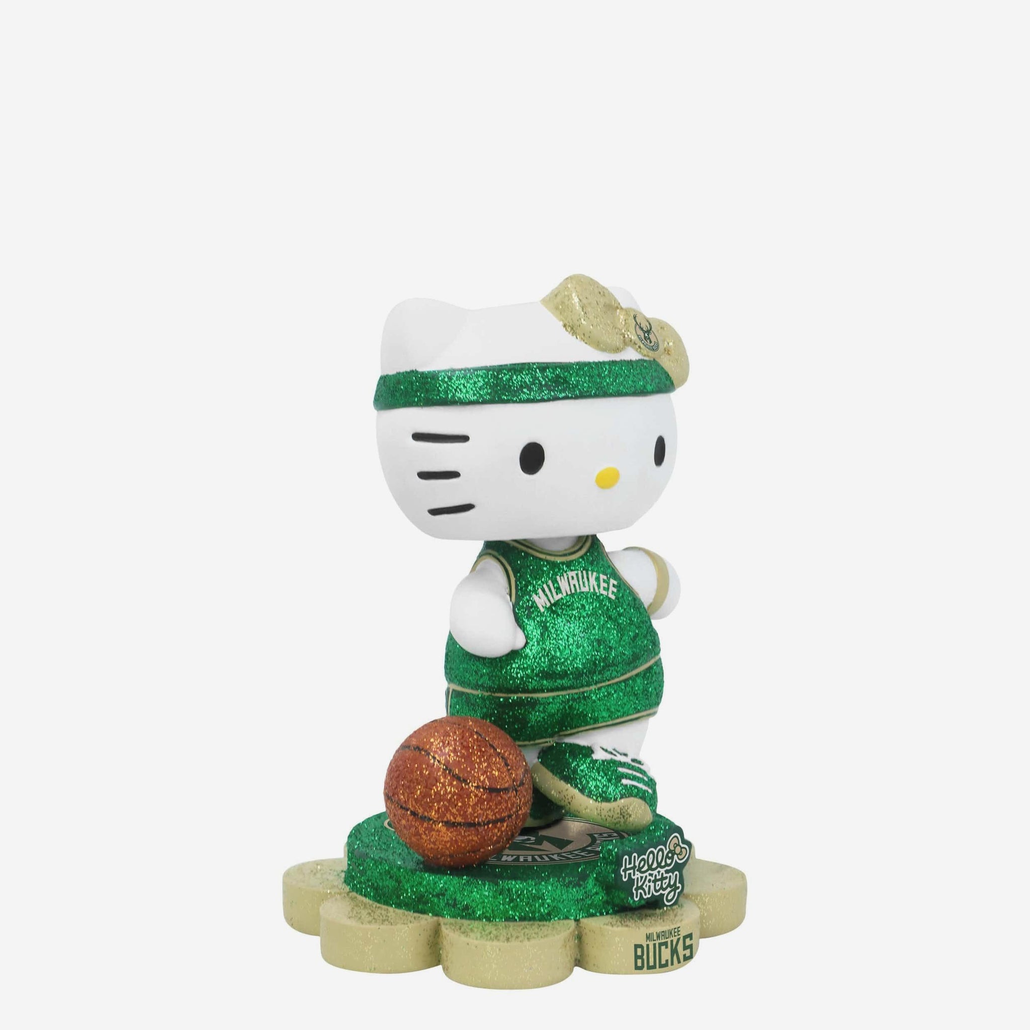 Cute, collectible, and courtside-ready! Hello Kitty® is officially hitting the hardwood and your collection in sparkle style with the Milwaukee Bucks Hello Kitty® Glitter Mini Bobblehead.