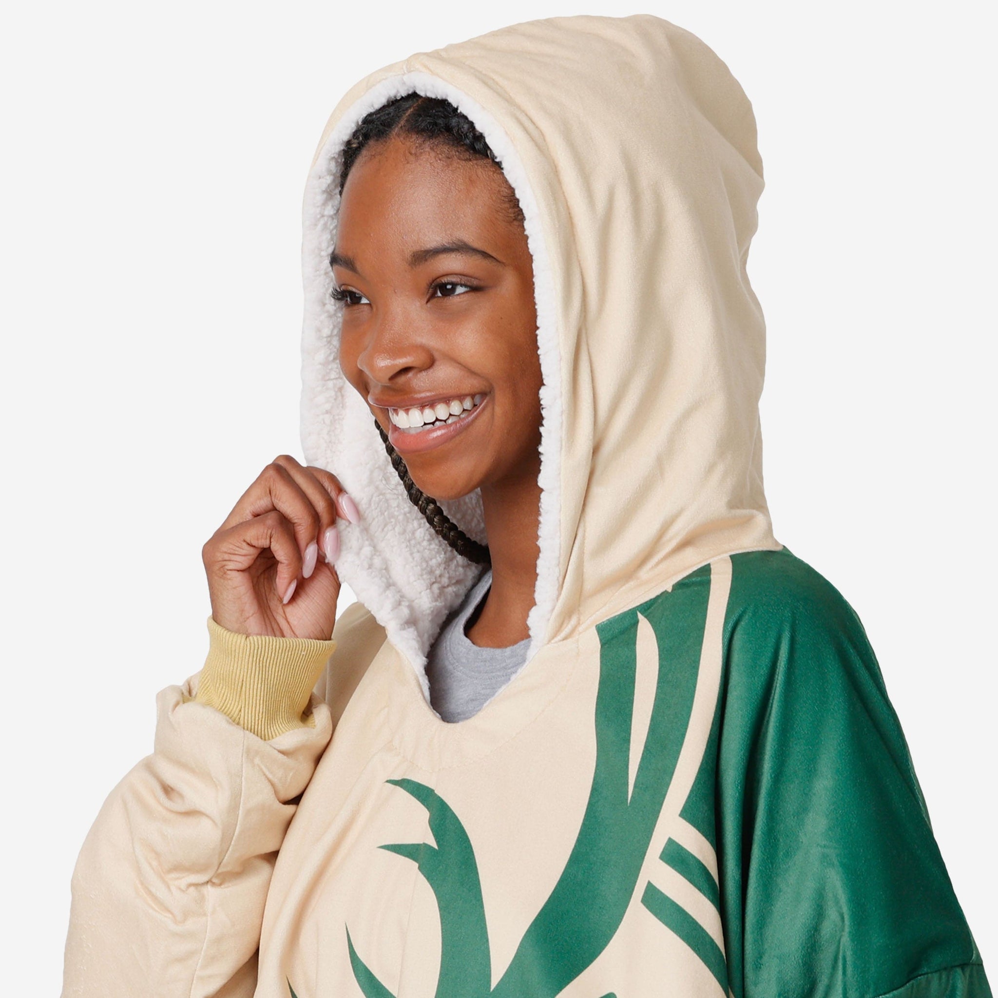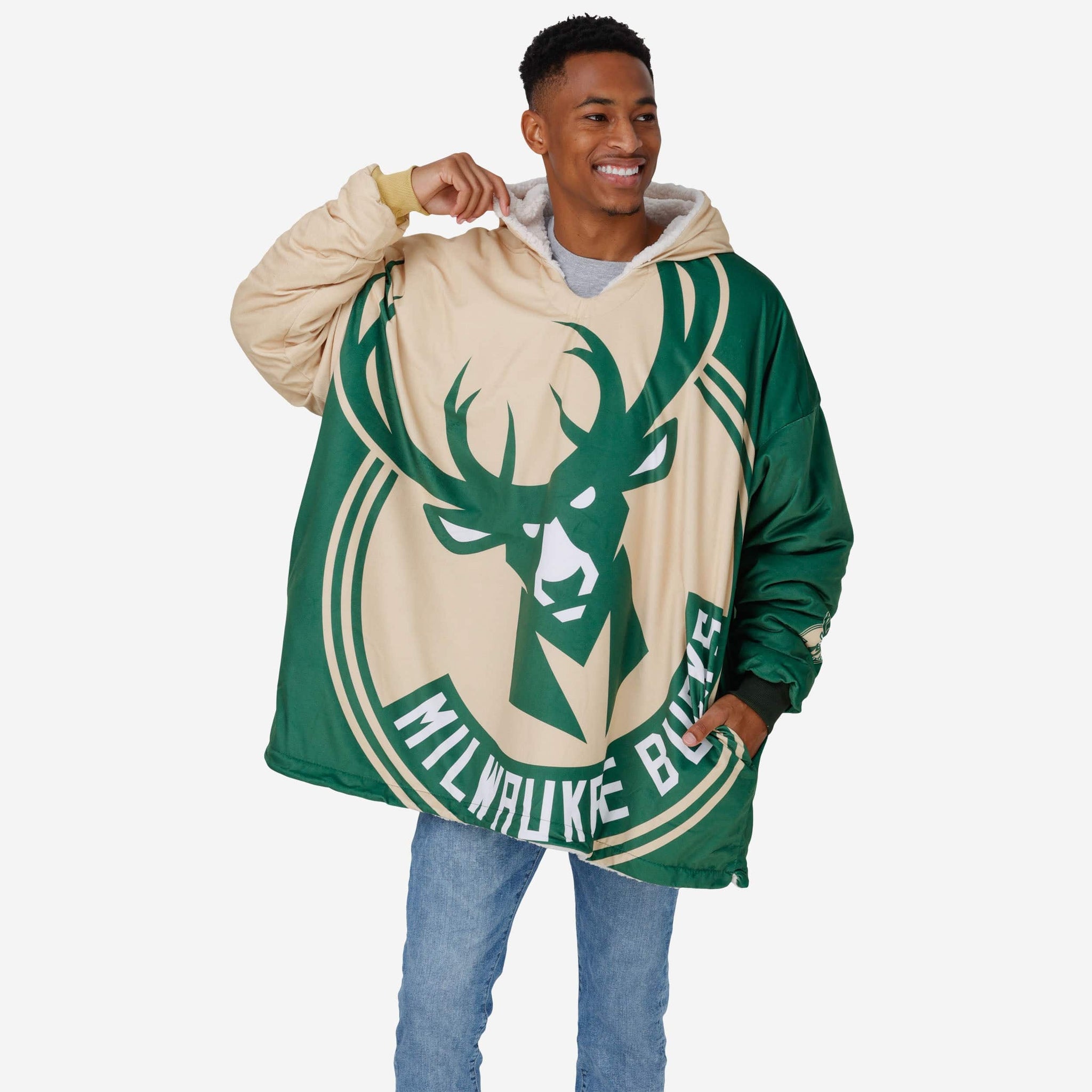 Never before has fandom looked so good and felt so relaxing. Lounge like a legend while you cheer your team on to victory by rocking this Milwaukee Bucks Reversible Colorblock Hoodeez.