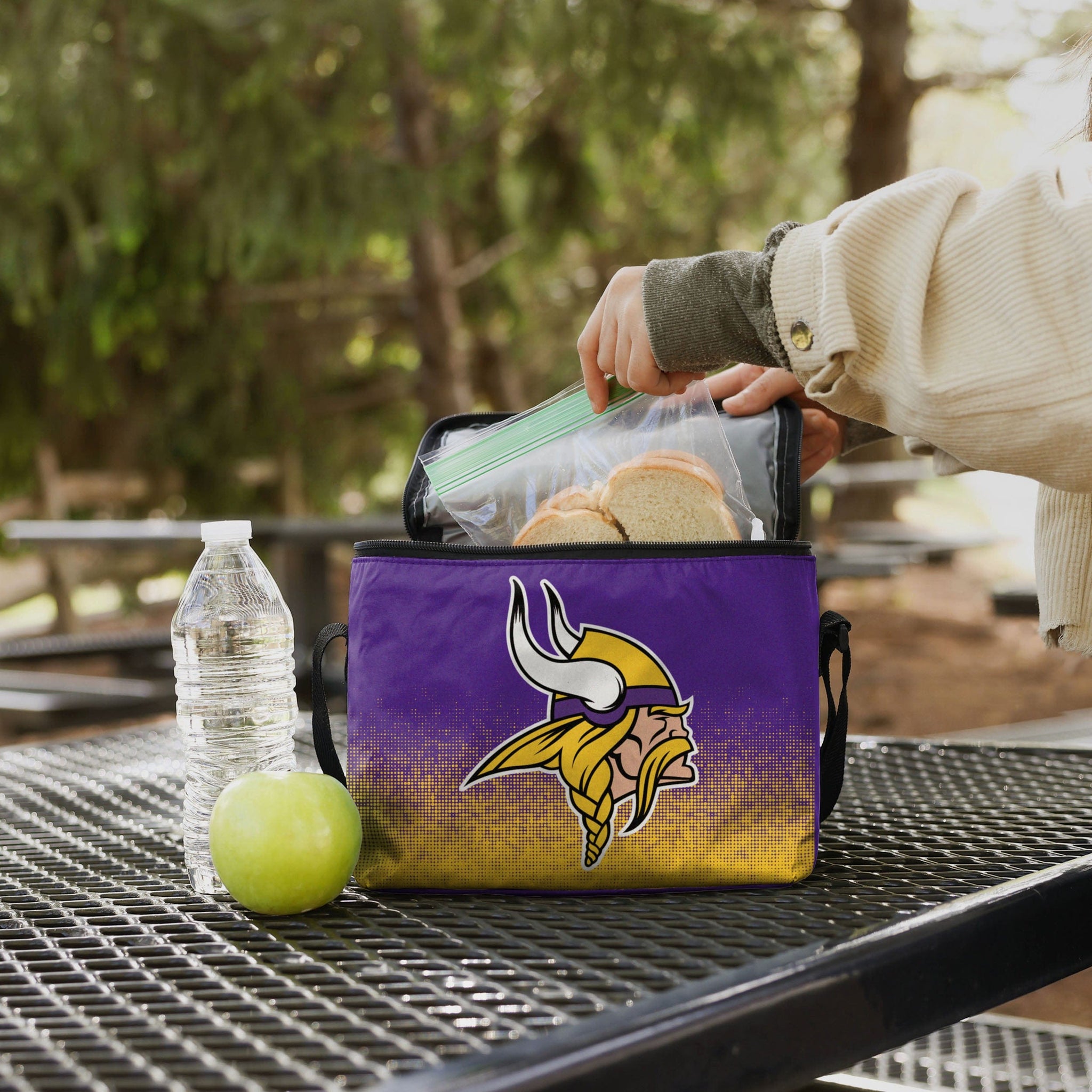 There are two things you never show up to a tailgate without: your team spirit, and the drinks. This Minnesota Vikings Big Logo Gradient 6 Pack Cooler has you covered for both. Big enough to store a 6-pack of awesomeness.