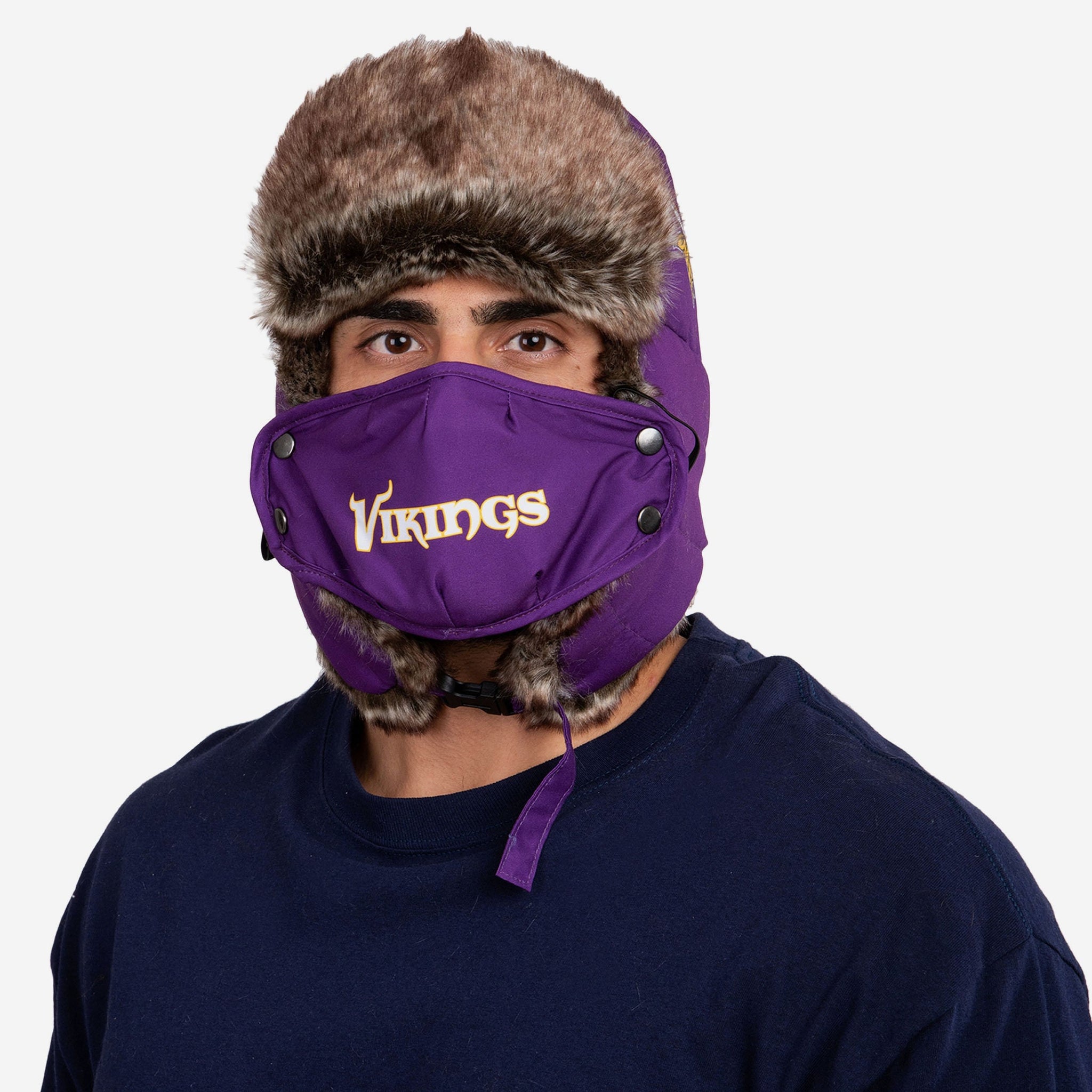 Getting chilly out? Don't worry. We've got you covered! Look cool and stay nice and warm in this Minnesota Vikings Big Logo Trapper Hat with Face Cover!