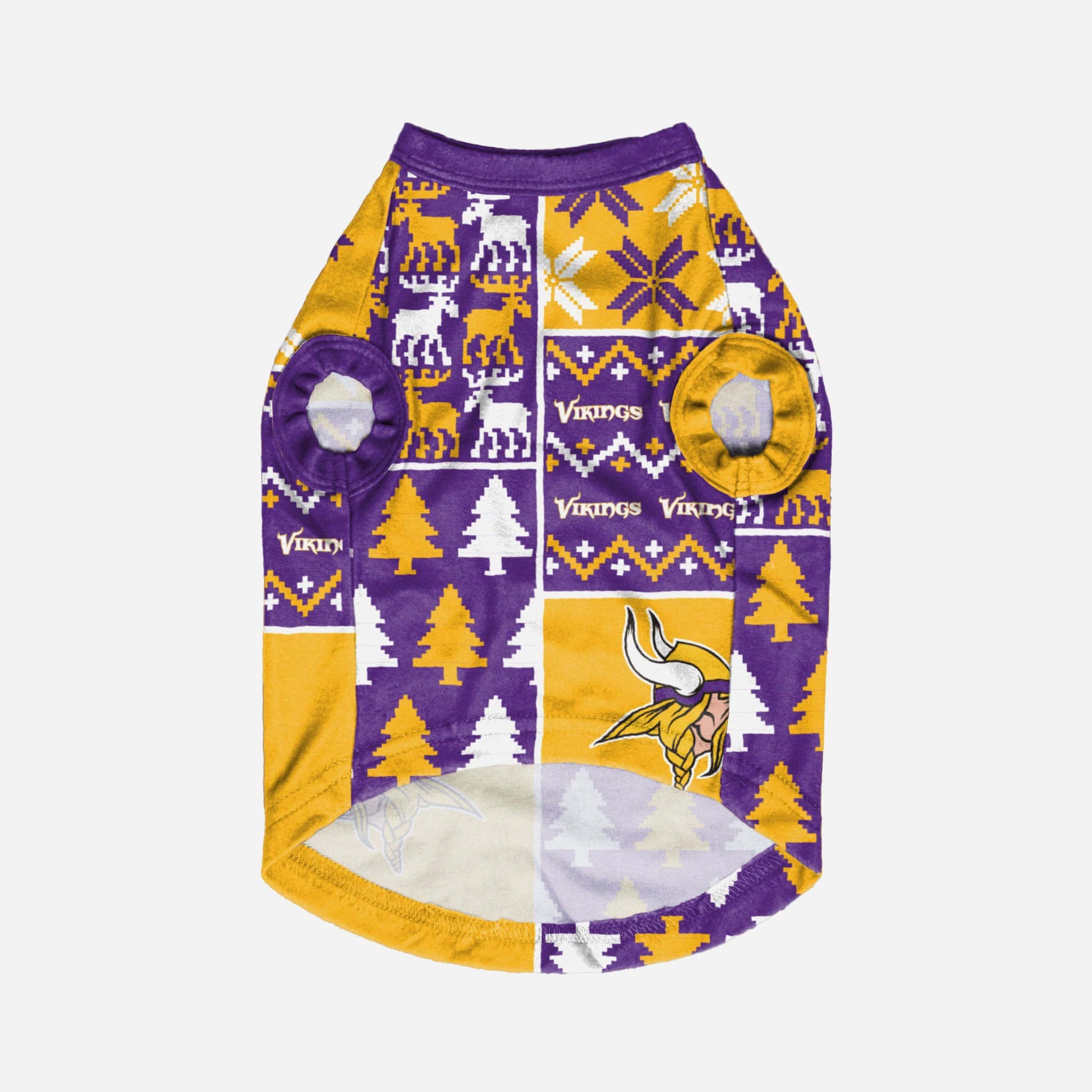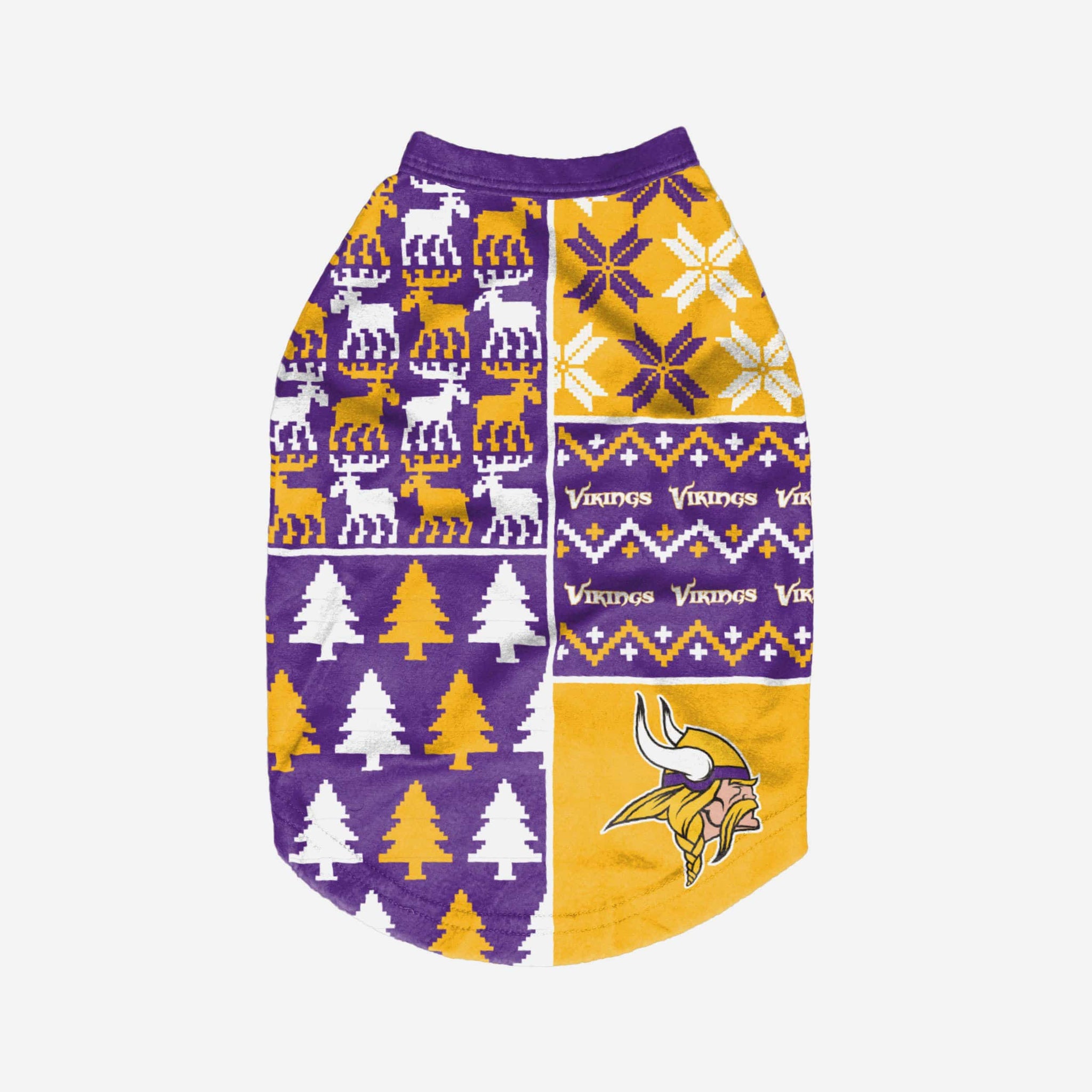 Show off your pet's holiday spirit with this dog sweater! Your good boy (or girl) will love this Minnesota Vikings Busy Block Dog Sweater so much, they'll be saying "woof bark awooo" (that's "thank you" in pup language). Don't forget to match your canine's sweater with a set of matching holiday pajamas!