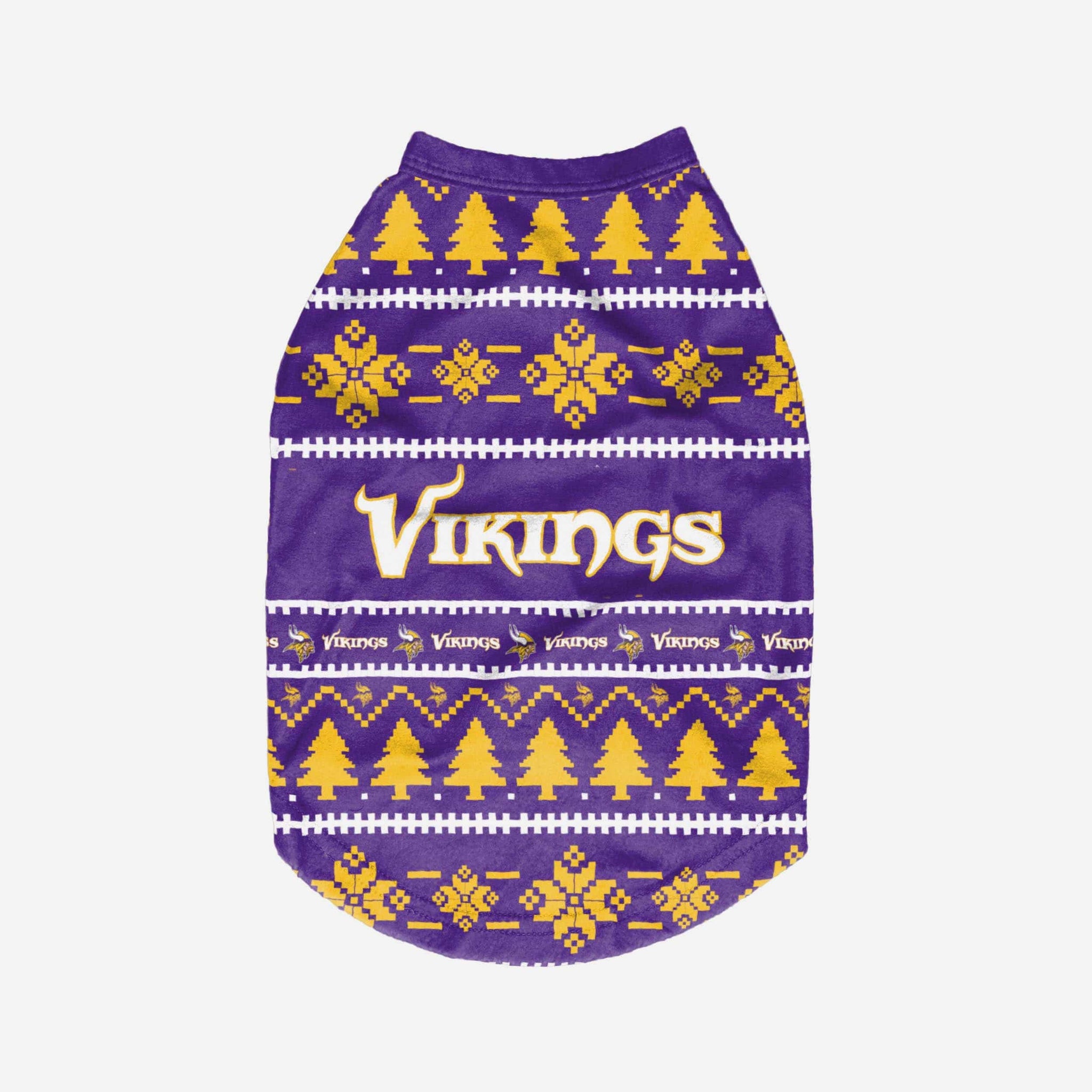 Show off your pet's holiday spirit with this dog sweater. Your good boy (or girl) will love this Minnesota Vikings Dog Family Holiday Sweater so much, they'll be saying "woof bark awooo" (that's "thank you" in dog). Don't forget to match your canine's sweater with a set of matching holiday pajamas.
