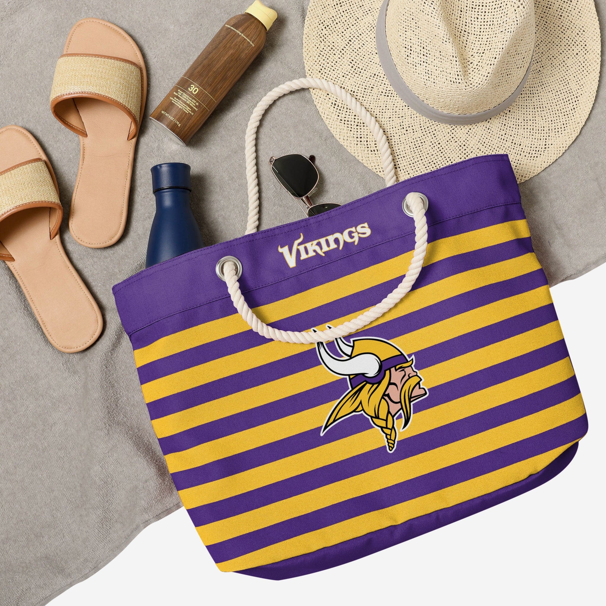 You're a real fan. You've earned your stripes. Now you can show them off AND carry the team with this Minnesota Vikings Nautical Stripe Tote.