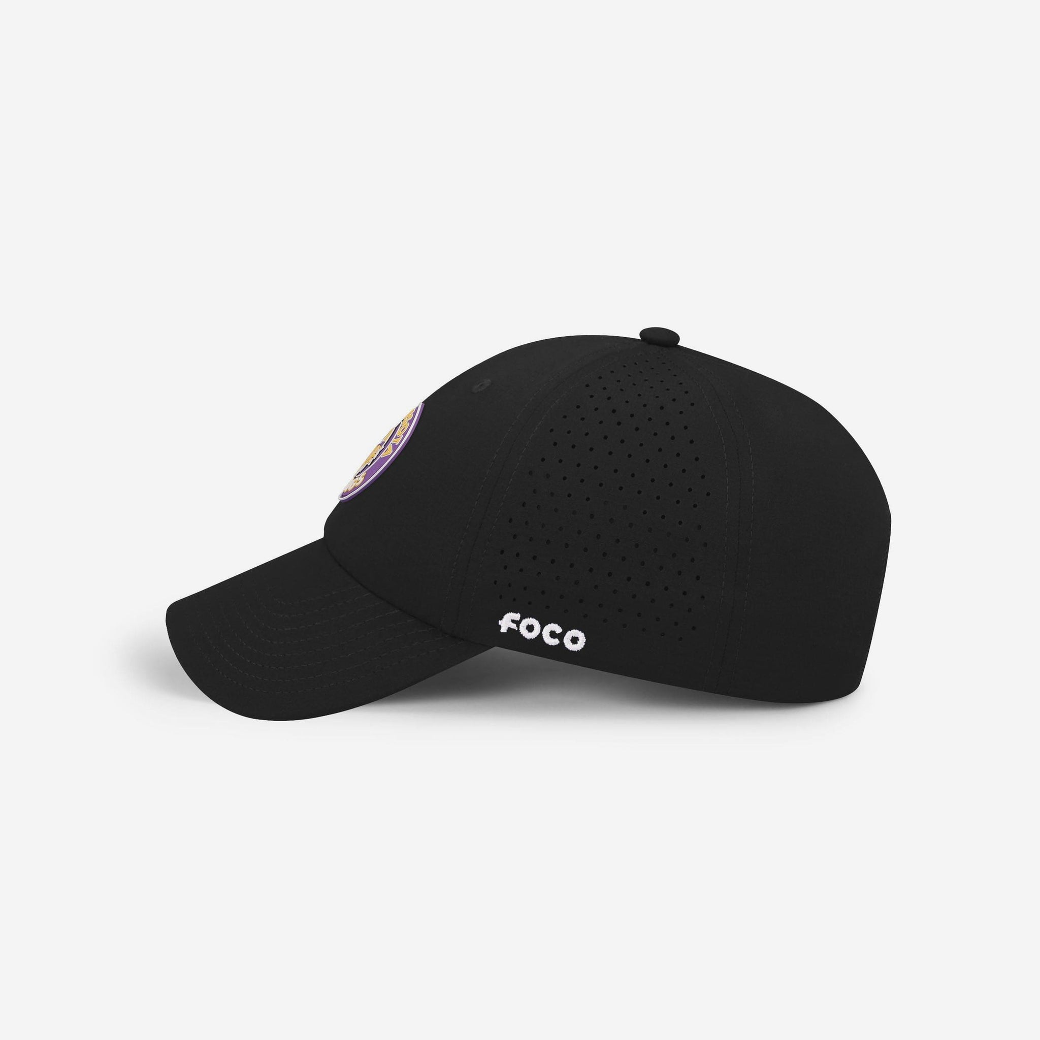 - Embroidered team logo and wordmark circular patch with raised graphics on the front of the crown