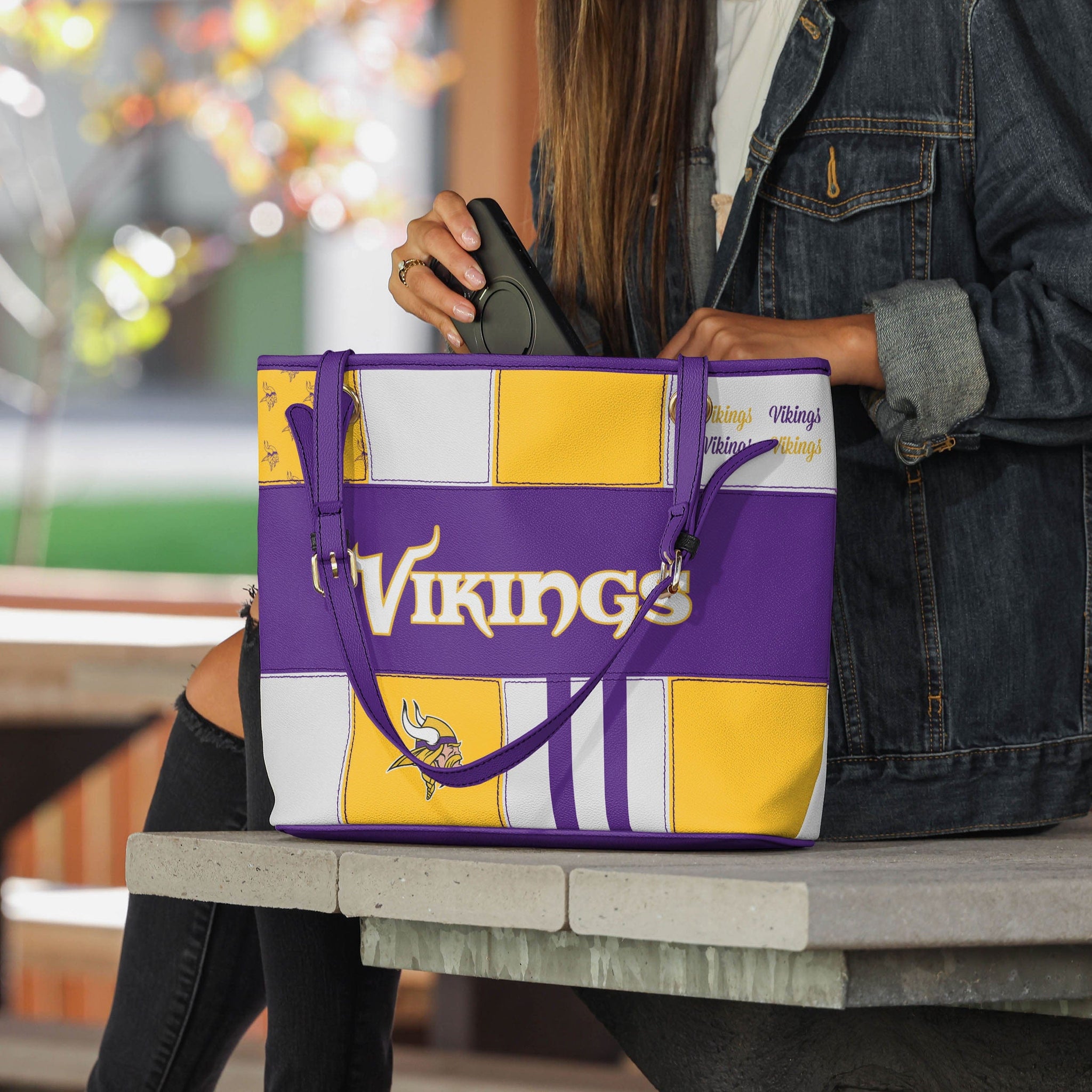Ready for gameday and EVERY day. Take this Minnesota Vikings Printed Collage Tote everywhere you go and bring your team along for the journey.