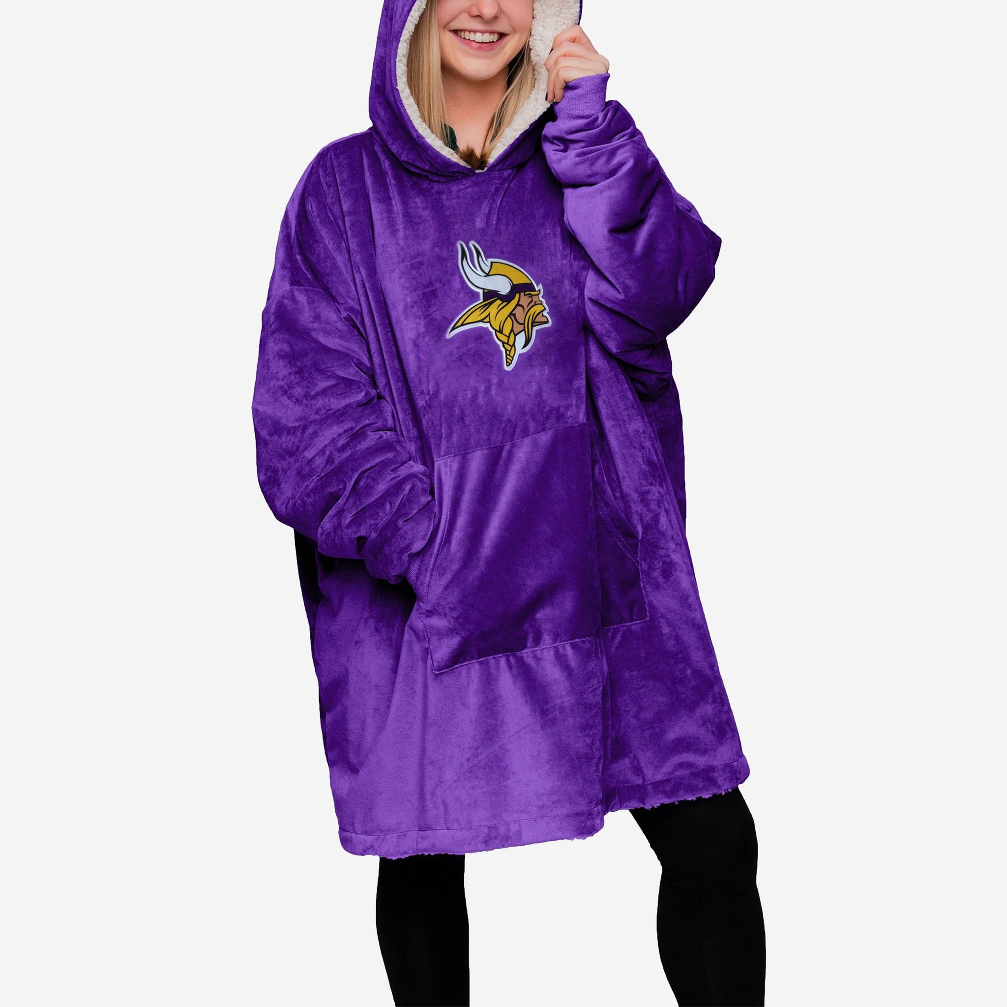 Choosing between showing off your team spirit, looking good, and being comfortable is a touch decision. Borderline impossible. Good news. You don't have to choose. Because you can enjoy that triple threat of fan awesome when you rock this Minnesota Vikings Reversible Big Logo Hoodeez.