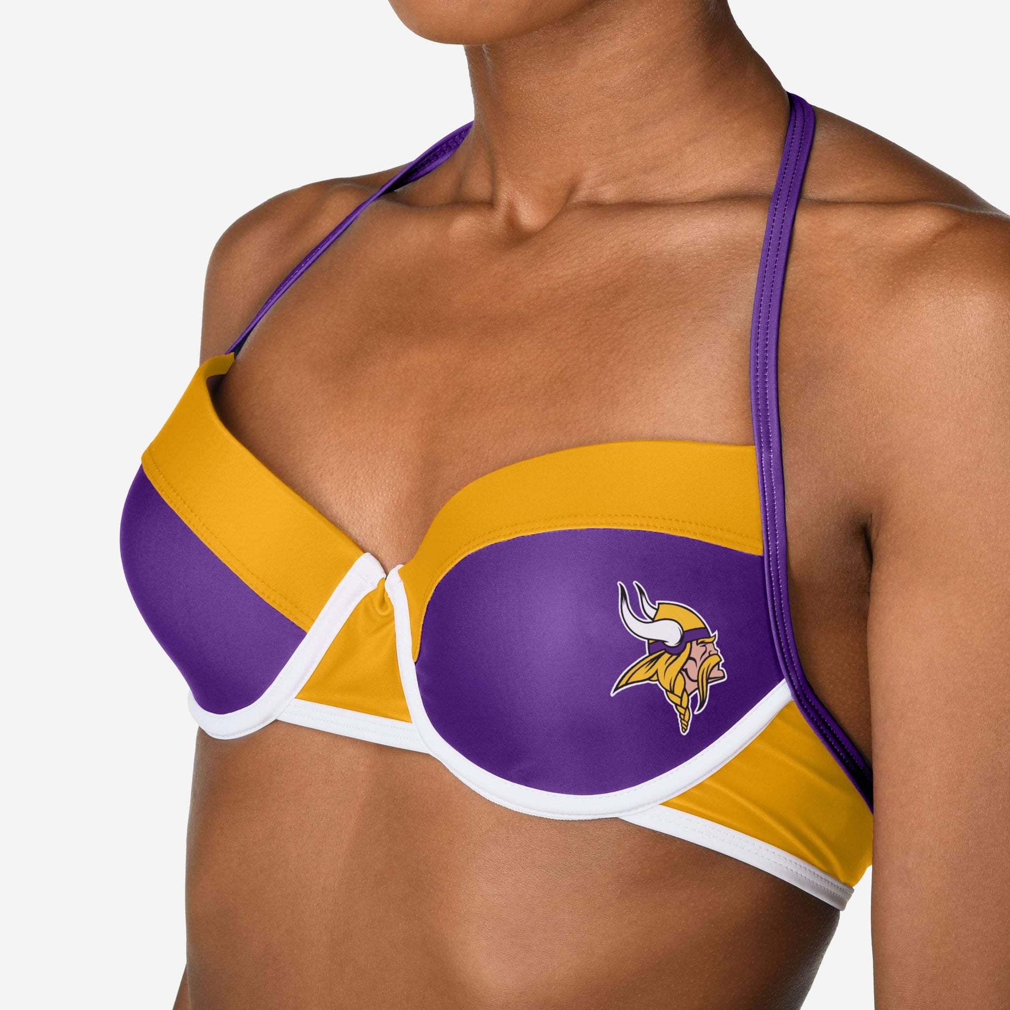 Beach day essentials checklist: Sunglasses, towel, sunscreen, and a healthy dose of team spirit. This Minnesota VikingsTeam Logo Bikini Top can help with that last one and help you get your tan on while you get your fan on.