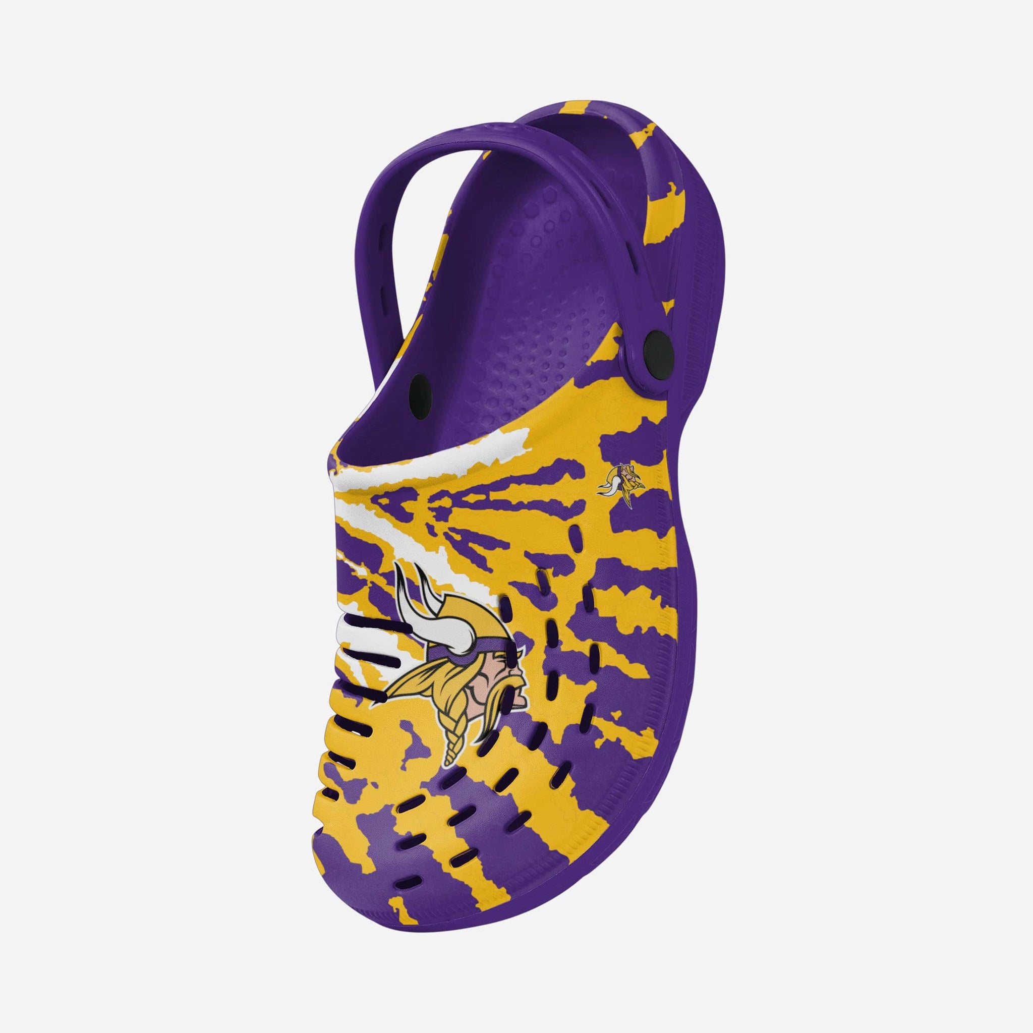 Enjoy a heaping helping of groovy goodness by standing out in these Minnesota Vikings Tie-Dye Clogs with Straps.