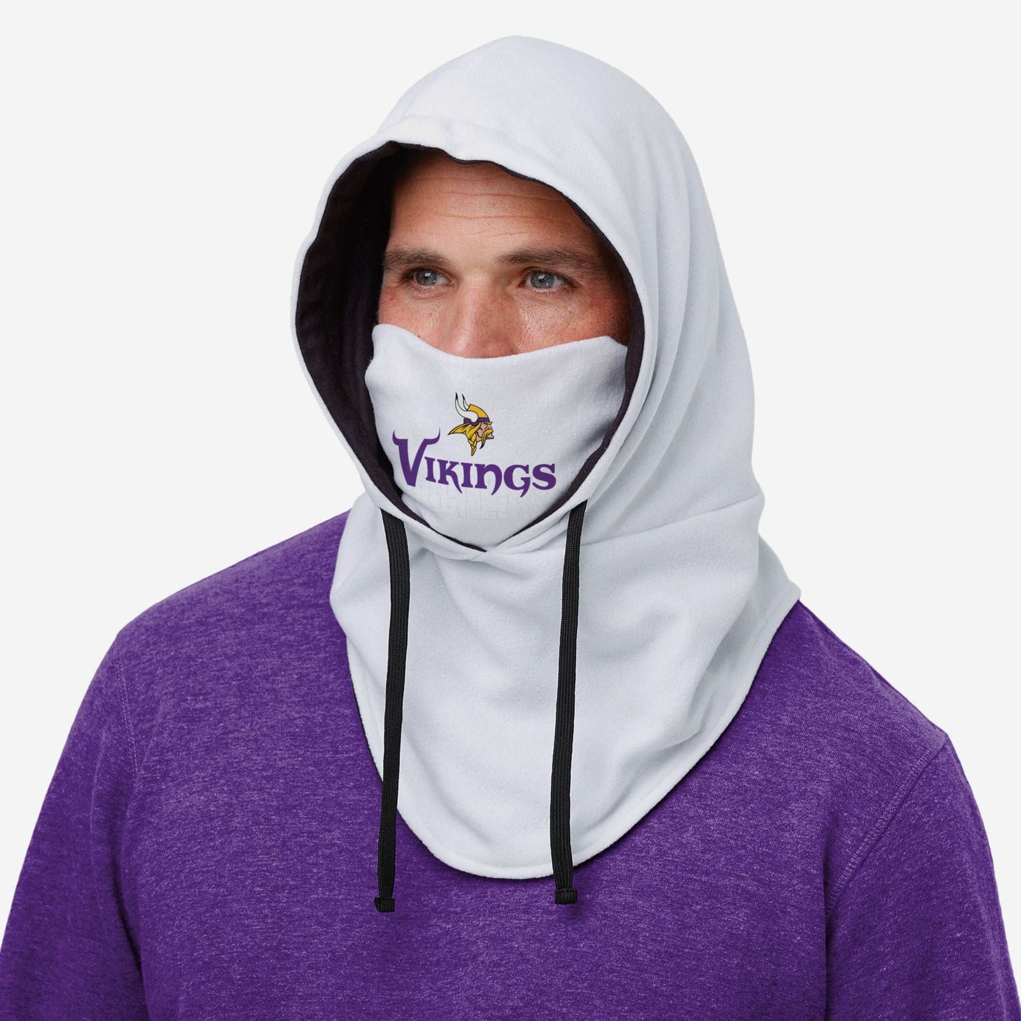 We're predicting white-out forecast conditions in your future when you take in the winter wonderland with this Minnesota Vikings White Drawstring Hooded Gaiter.