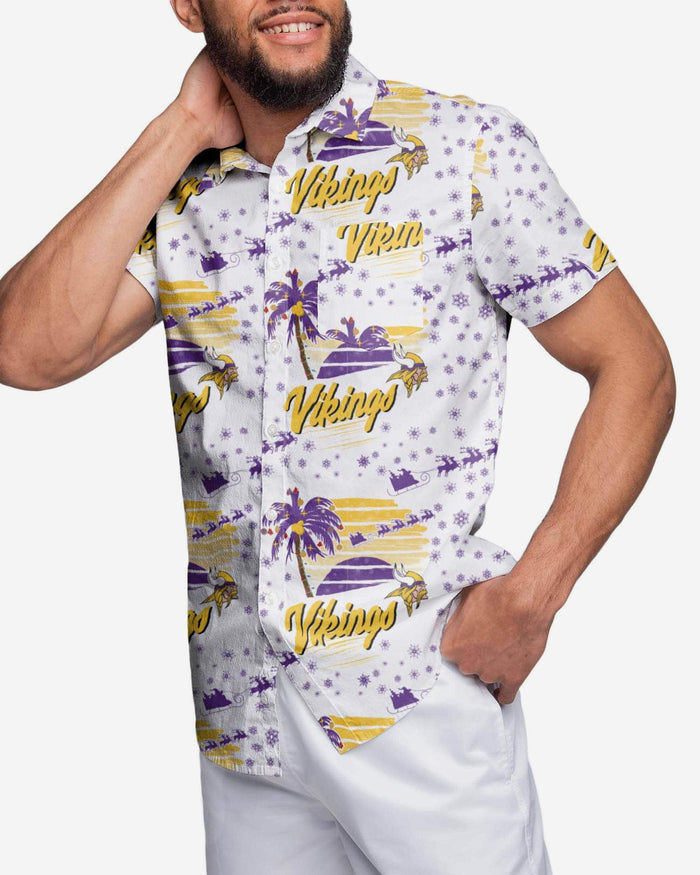 Your ability to balance fashion and fandom is the gift that keeps on giving. Show it off and get ready to be the talk of the holiday party in this Minnesota Vikings Winter Tropical Button Up Shirt.