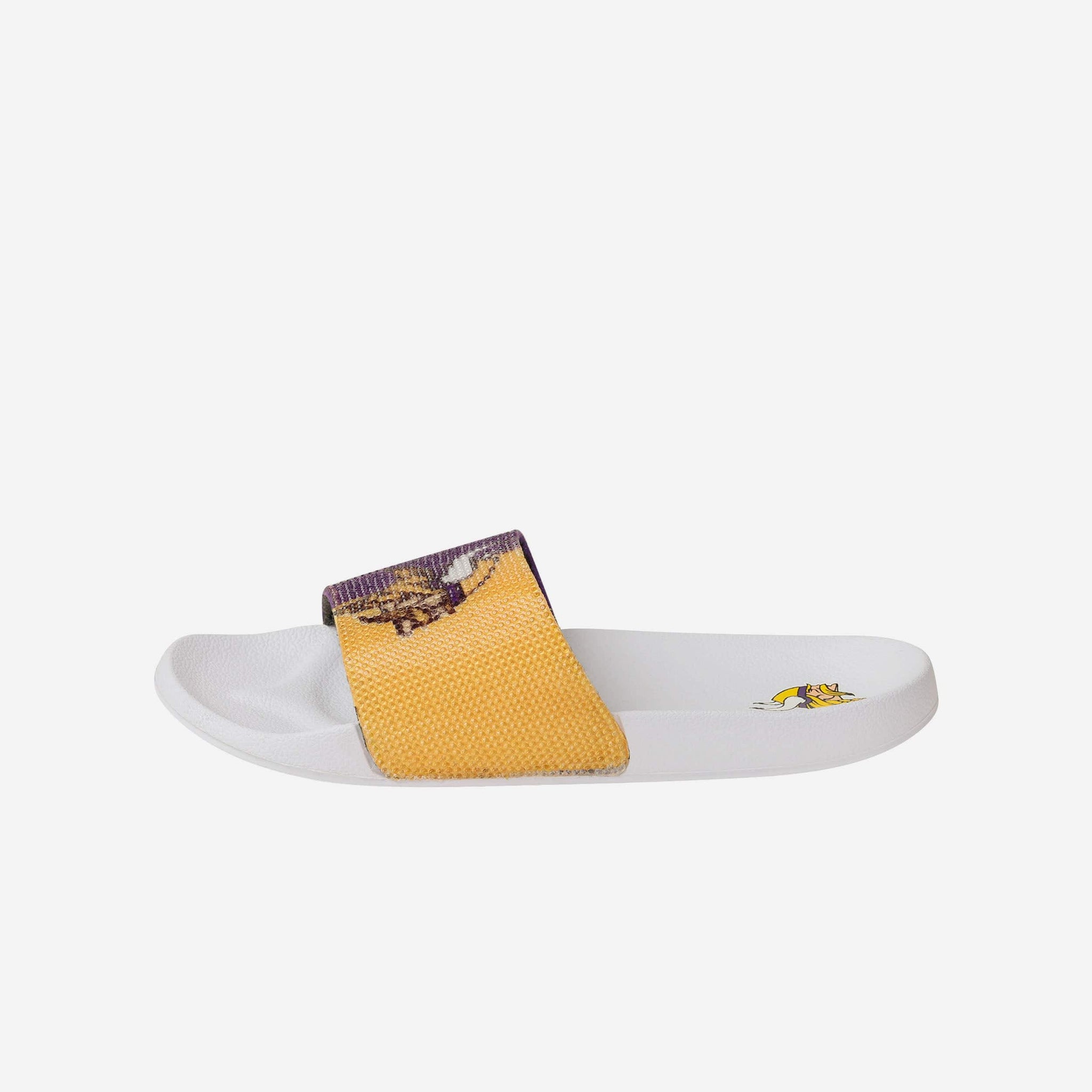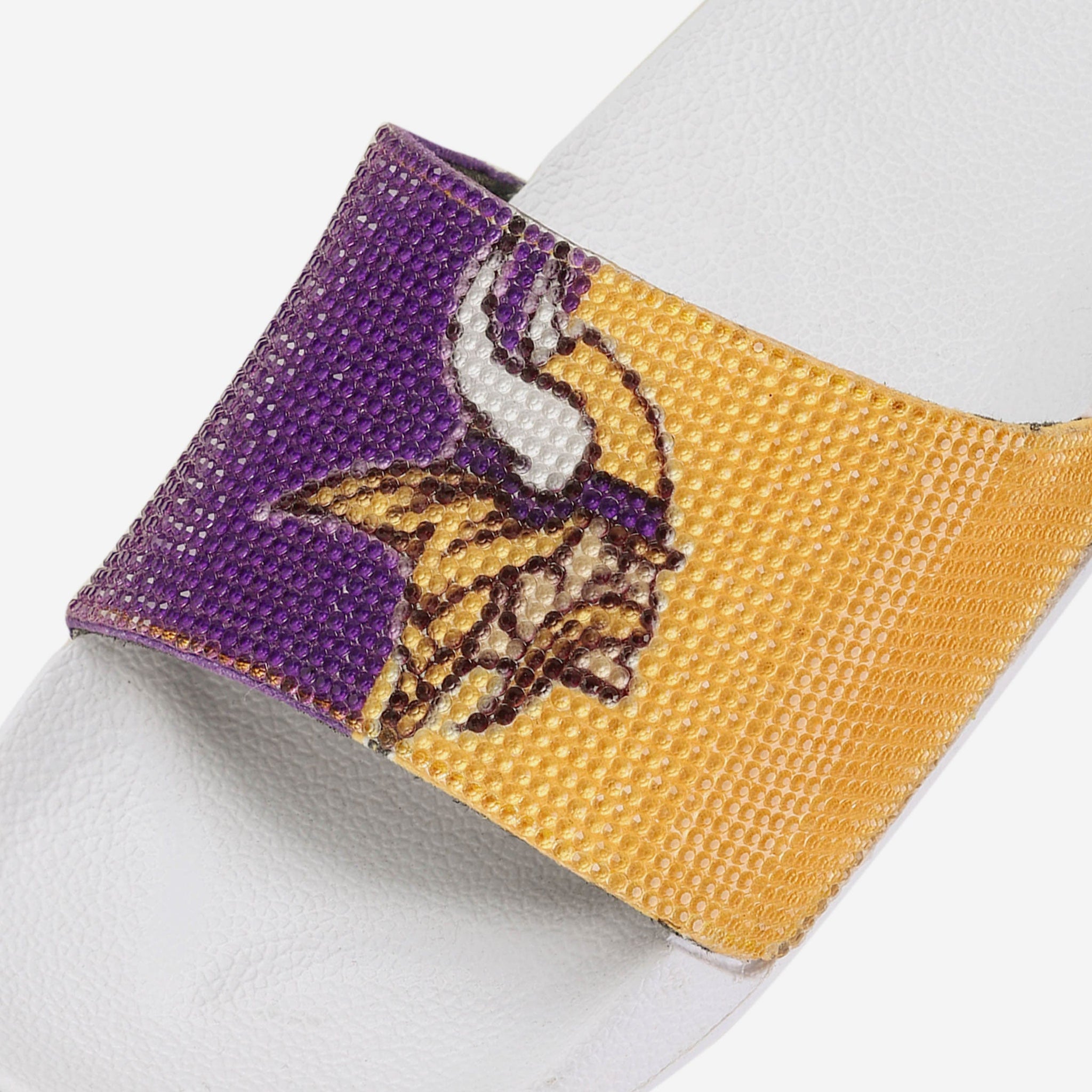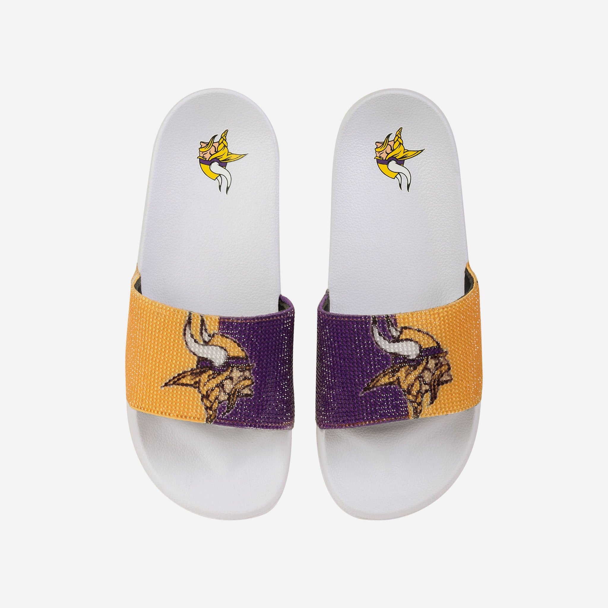 These Minnesota Vikings Women's Big Logo Shimmer Slides are the jewel of fresh fan footwear! Let your team spirit shine like a beacon of awesome!