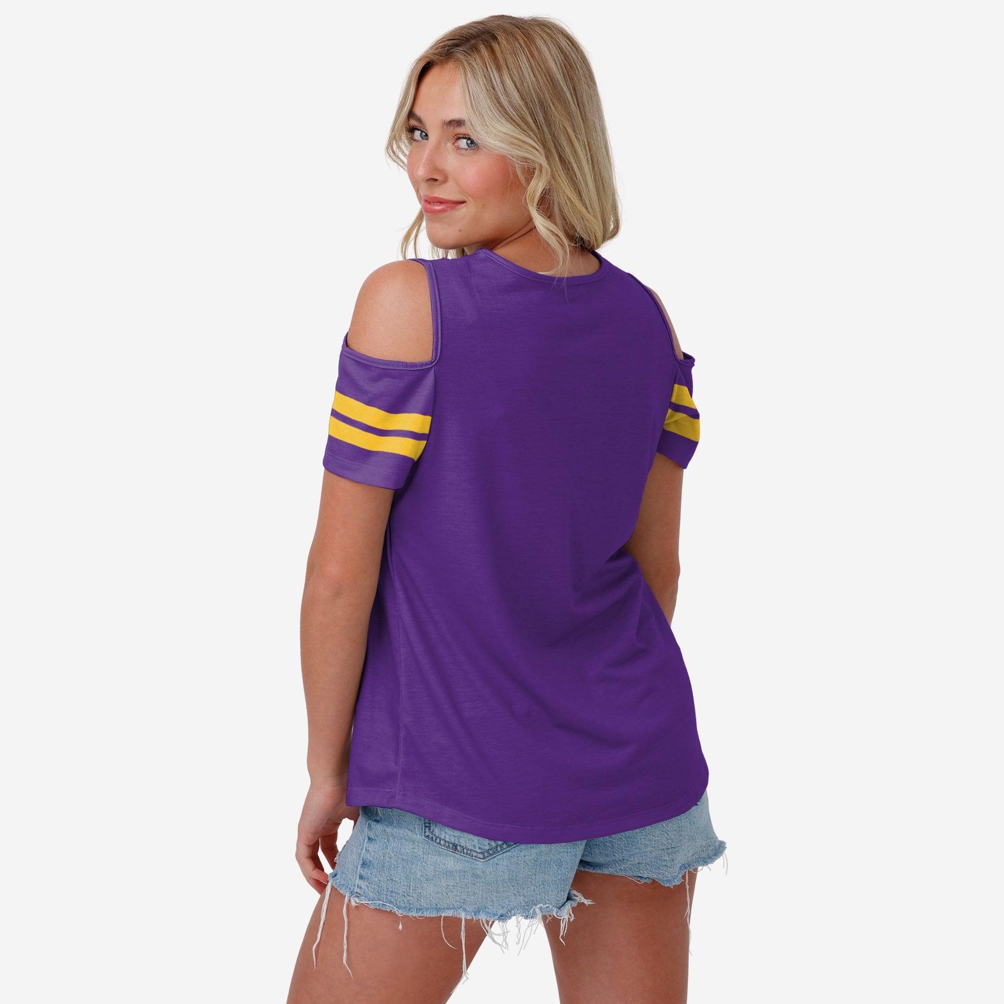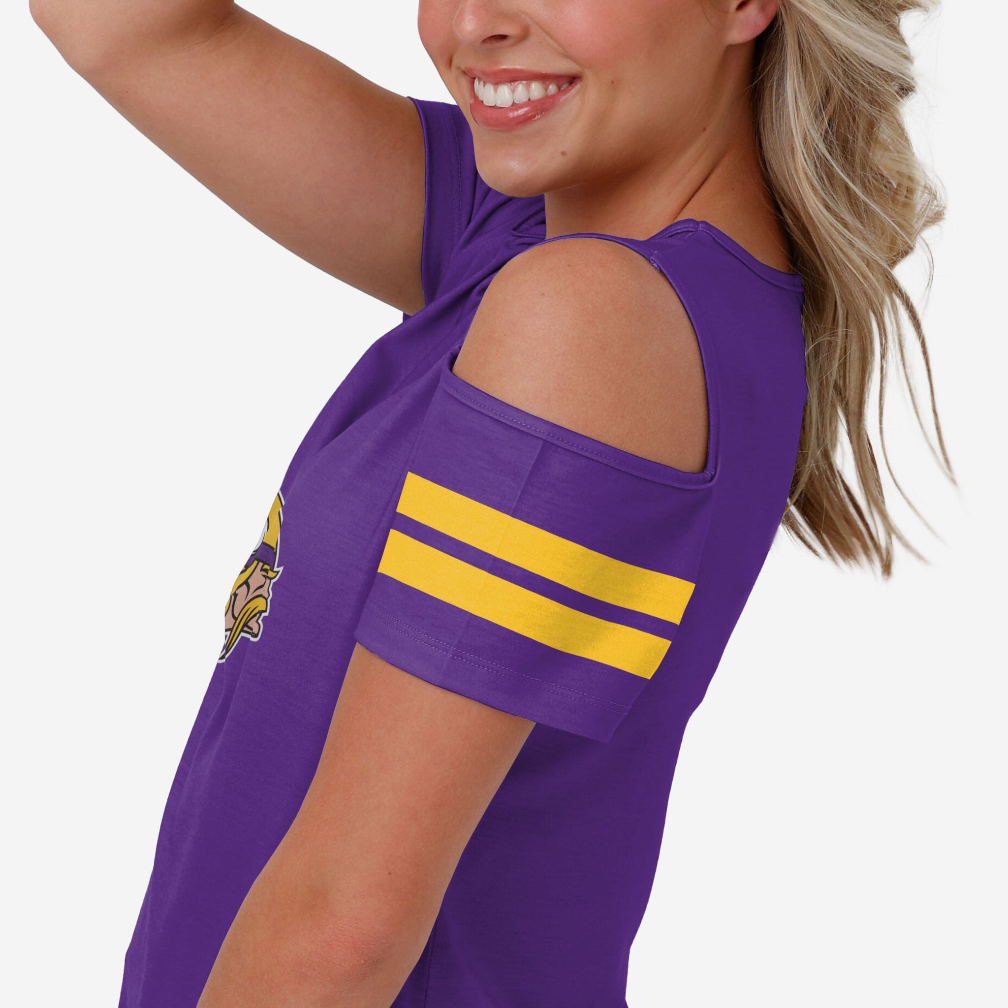 Someone doubting your fandom? Give 'em the cold shoulder by rocking this Minnesota Vikings Women's Cold Shoulder T-Shirt.